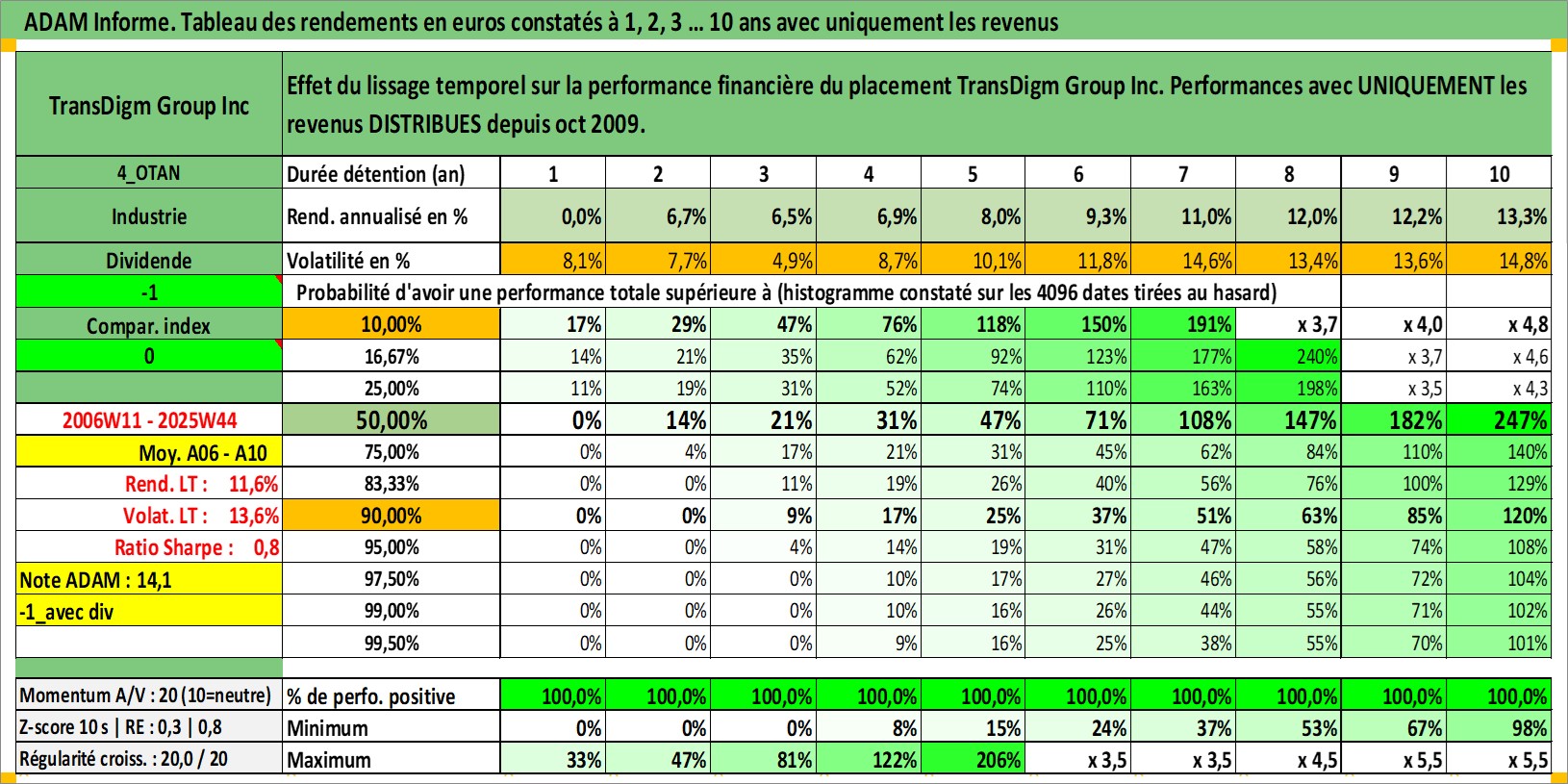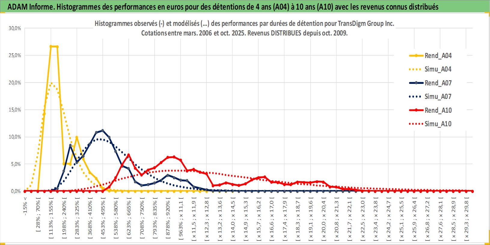 Site dédié aux investisseursPage dédiée sur site financeAnalyse des valorisations hebdomadaires de l'action TransDigm Group Inc. Cet actif est cote en USD. Les valorisations sont en contrevaleur EURO et couvrent les semaines 2006W11 a 2025W44. Les revenus de cet actif financier sont pris en compte depuis la semaine 2009W42. La note globale ESG de cet actif est estimee a 2.0 (apres rebasage entre 0 et 20).