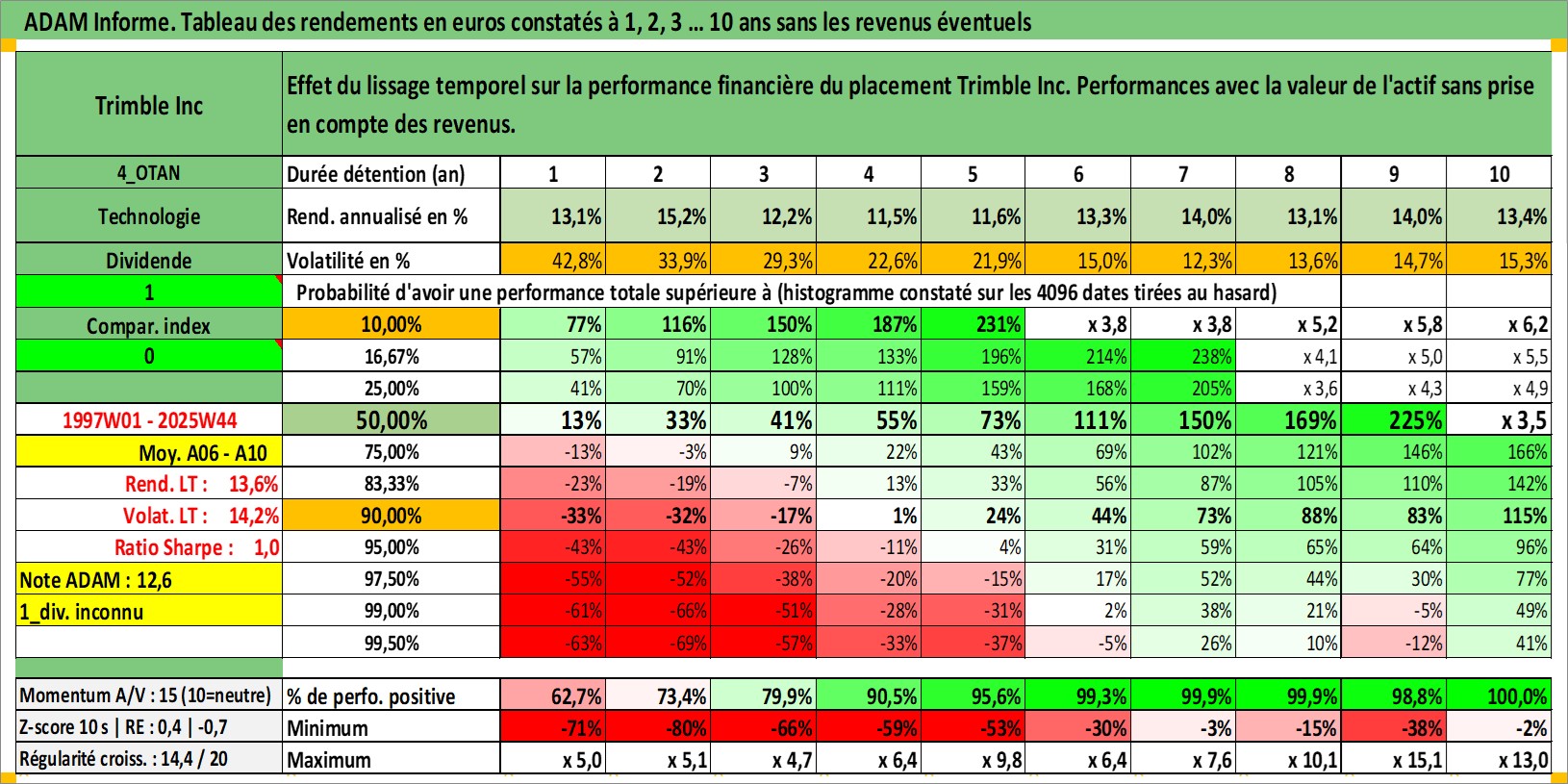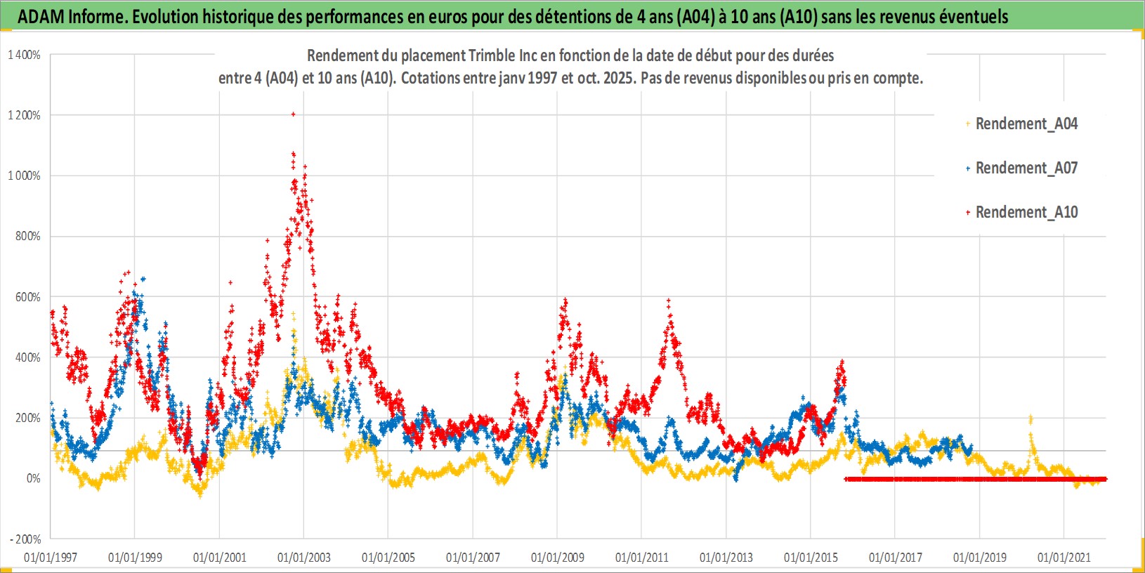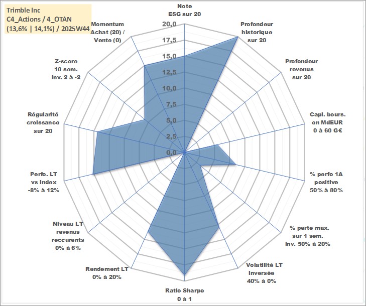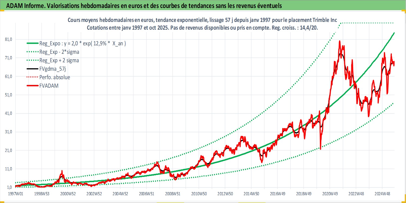 Site dédié aux investisseursPage dédiée sur site financeAnalyse des valorisations hebdomadaires de l'action Trimble Inc. Cet actif est cote en USD. Les valorisations sont en contrevaleur EURO et couvrent les semaines 1997W01 a 2025W44. Les revenus de cet actif financier ne sont pas connus car non existants ou non disponibles sur le site Yahoo Finance. La note globale ESG de cet actif est estimee a 15.0 (apres rebasage entre 0 et 20).