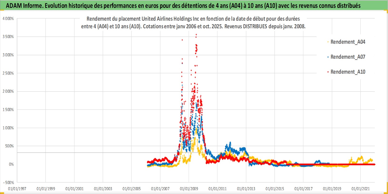 Site dédié aux investisseursPage dédiée sur site financeAnalyse des valorisations hebdomadaires de l'action United Airlines Holdings Inc. Cet actif est cote en USD. Les valorisations sont en contrevaleur EURO et couvrent les semaines 2006W05 a 2025W44. Les revenus de cet actif financier sont pris en compte depuis la semaine 2008W02. La note globale ESG de cet actif est estimee a 6.0 (apres rebasage entre 0 et 20).