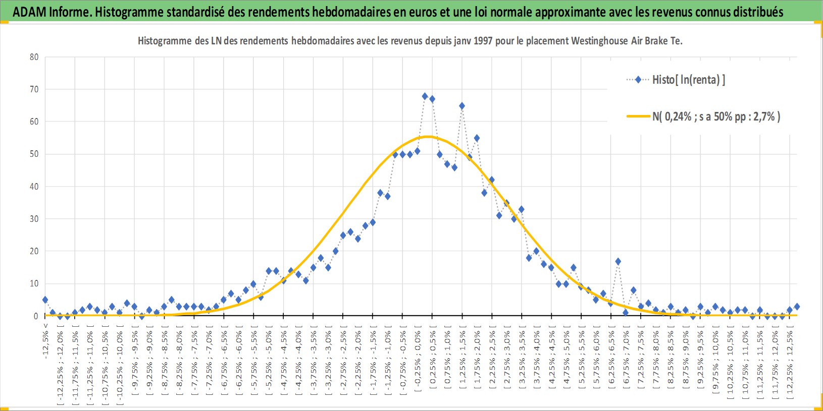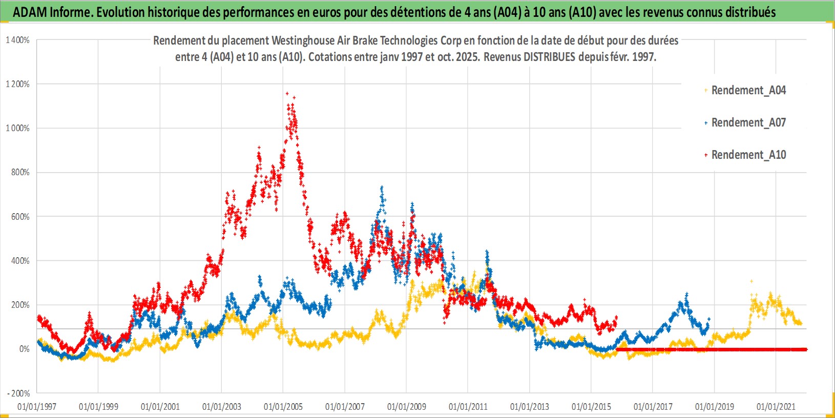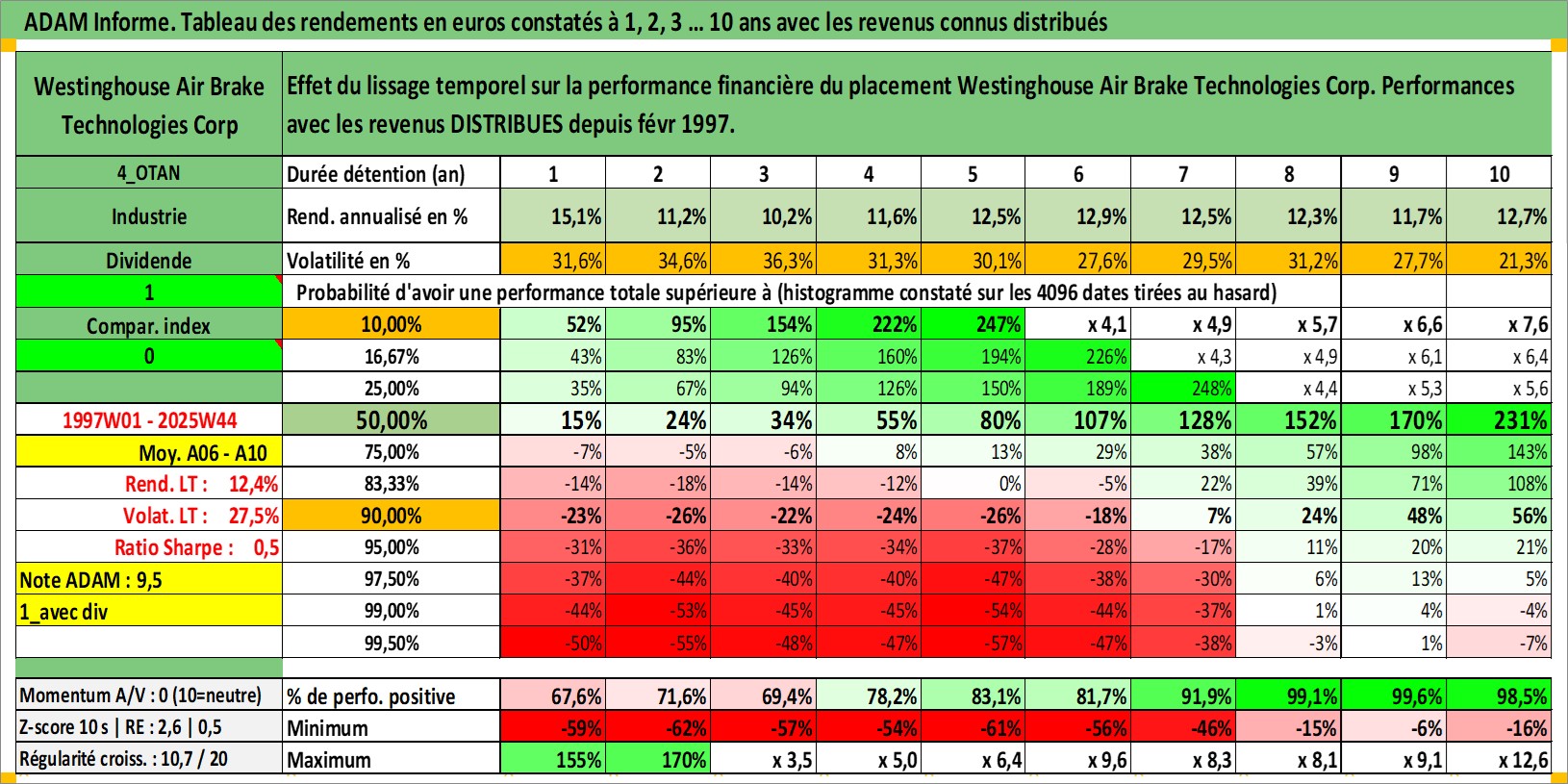 Site dédié aux investisseursPage dédiée sur site financeAnalyse des valorisations hebdomadaires de l'action Westinghouse Air Brake Technologies Corp. Cet actif est cote en USD. Les valorisations sont en contrevaleur EURO et couvrent les semaines 1997W01 a 2025W44. Les revenus de cet actif financier sont pris en compte depuis la semaine 1997W07. La note globale ESG de cet actif est estimee a 9.0 (apres rebasage entre 0 et 20).