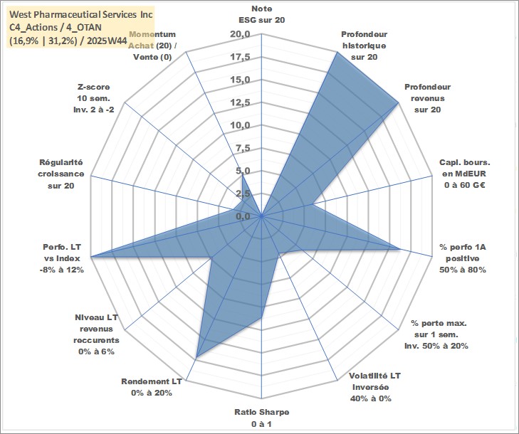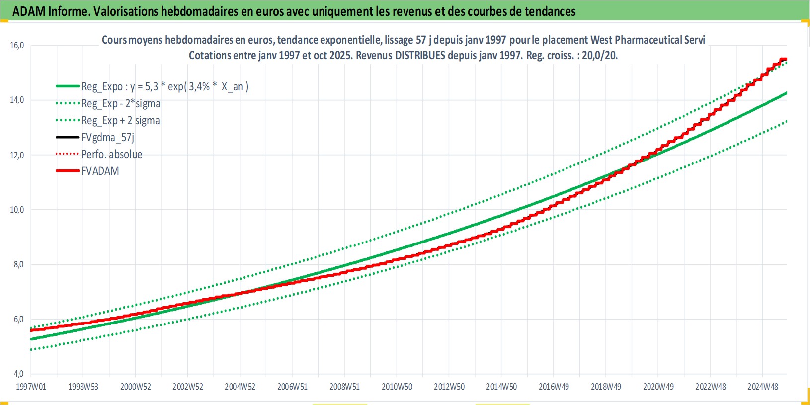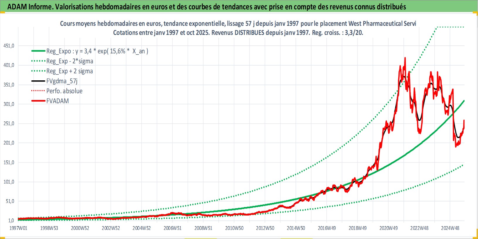 Site dédié aux investisseursPage dédiée sur site financeAnalyse des valorisations hebdomadaires de l'action West Pharmaceutical Services Inc. Cet actif est cote en USD. Les valorisations sont en contrevaleur EURO et couvrent les semaines 1997W01 a 2025W44. Les revenus de cet actif financier sont pris en compte depuis la semaine 1997W03. La note ESG de cet actif n'est pas connue.