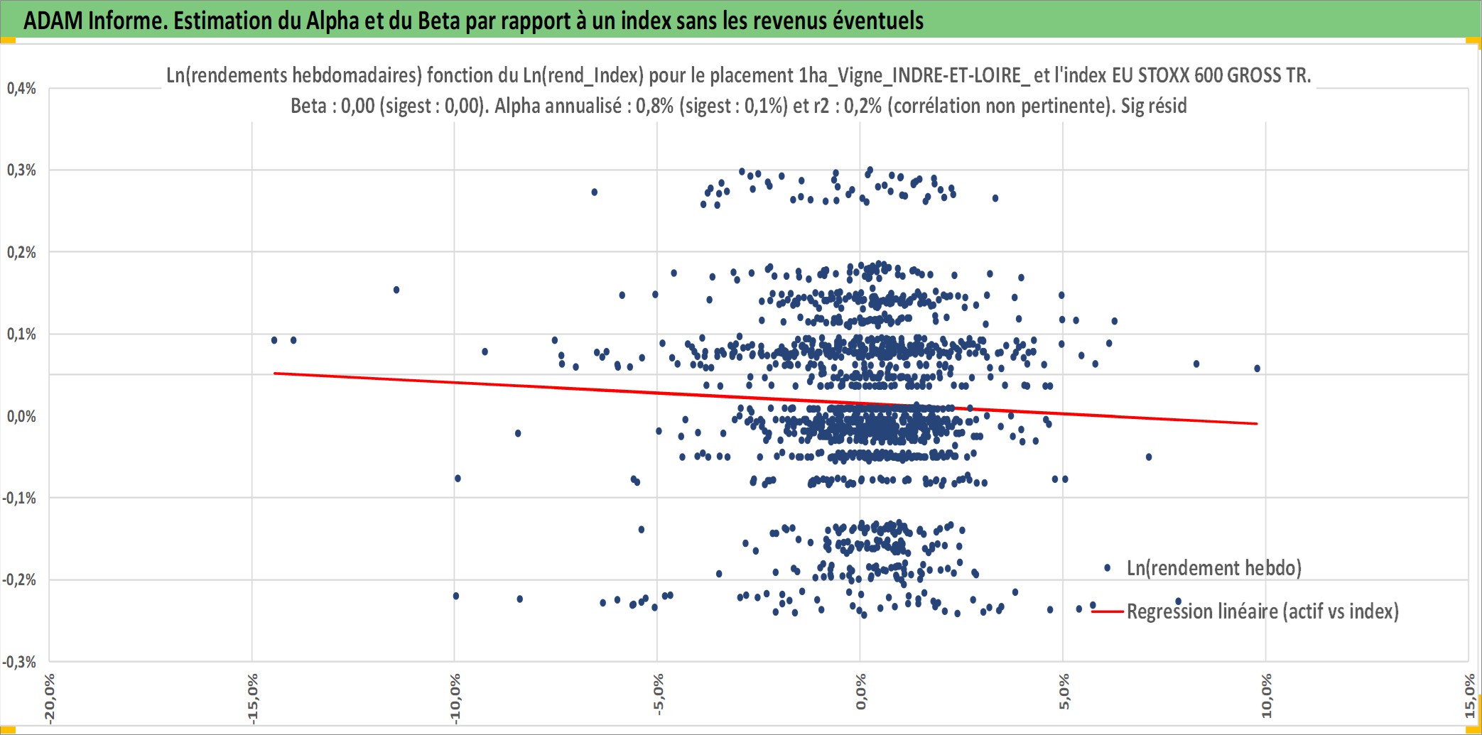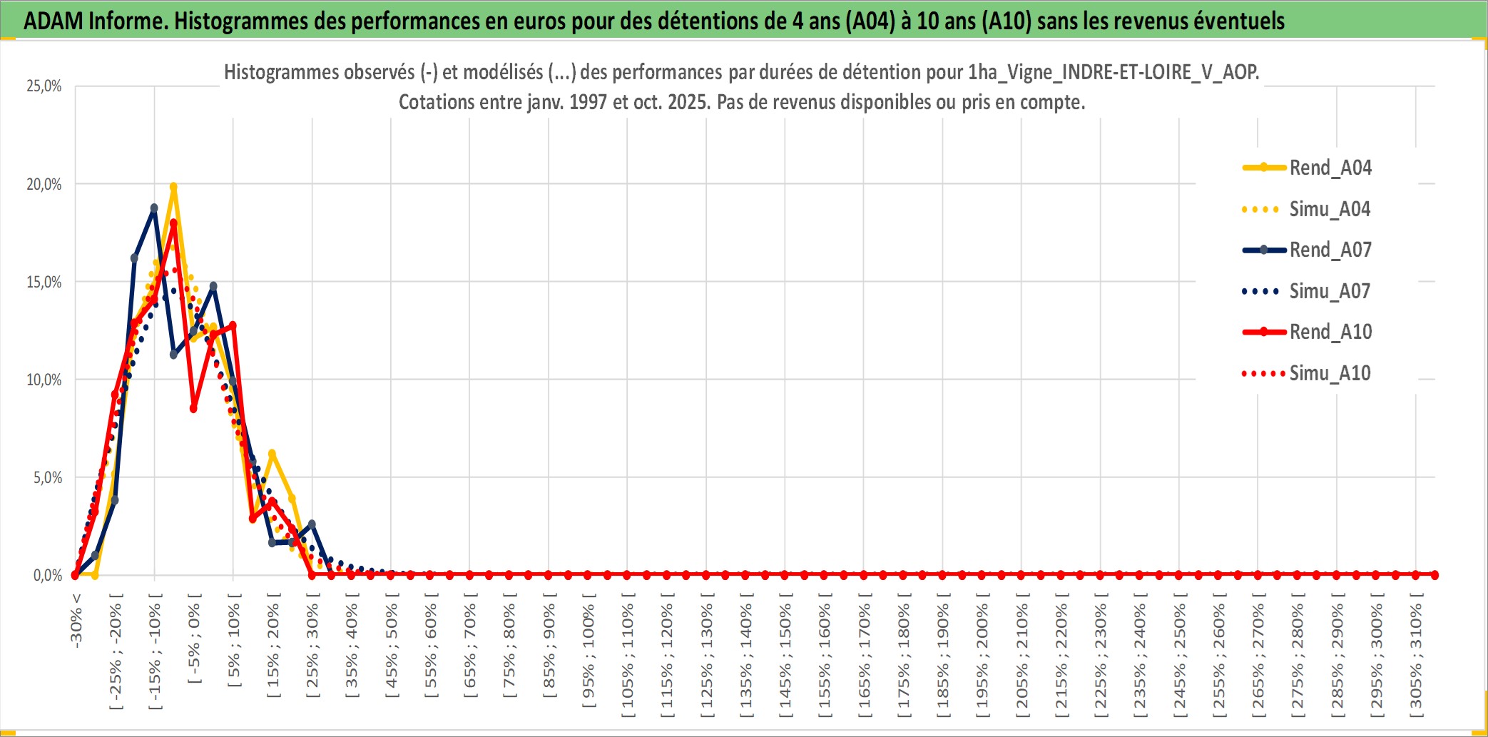 Site dédié aux investisseursPage dédiée sur site financeAnalyse des valorisations hebdomadaires de l'actif 1ha_Vigne_INDRE-ET-LOIRE_V_AOP. Cet actif est cote en EUR. Les valorisations couvrent les semaines 1997W01 a 2025W44. Les fermages de ce bien foncier sont pris egaux a 2,5% annuels de la valeur venale du bien.