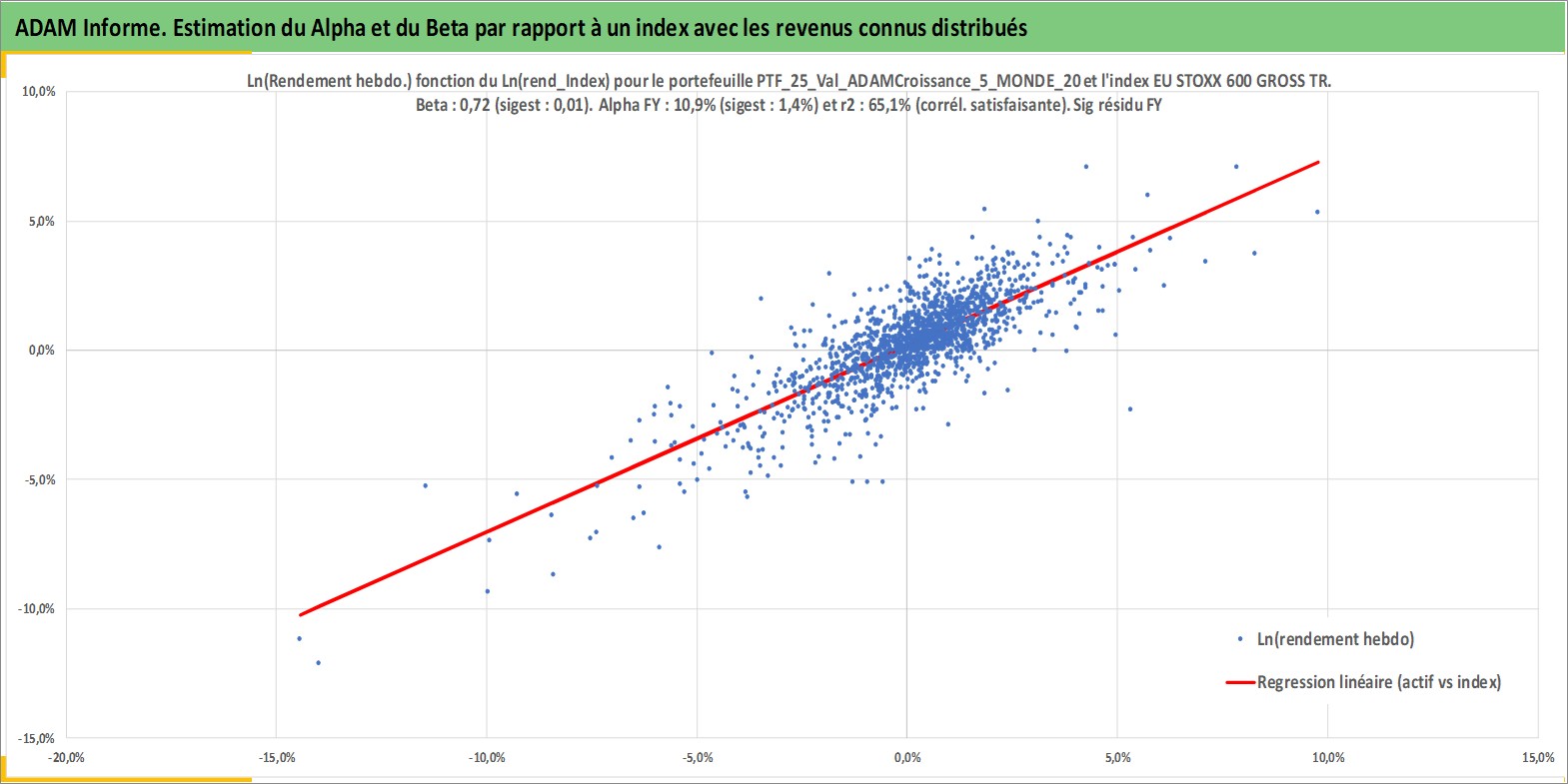 Site dédié aux investisseursPage dédiée sur site financeAnalyse des valorisations hebdomadaires du portefeuille ADAMCroissance_5_MONDE_202504_15_1p4_25actifs avec un profil P6_PurActions. Ce portefeuille est cote en EUR. Les valorisations couvrent les semaines 1997W01 a 2025W48. Les revenus de cet actif financier sont pris en compte depuis la semaine 1997W01. La note globale ESG de cet actif est estimee a 11.7 (apres rebasage entre 0 et 20).