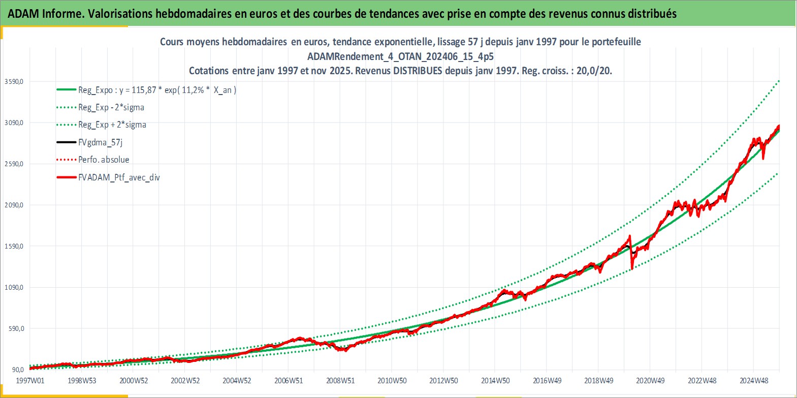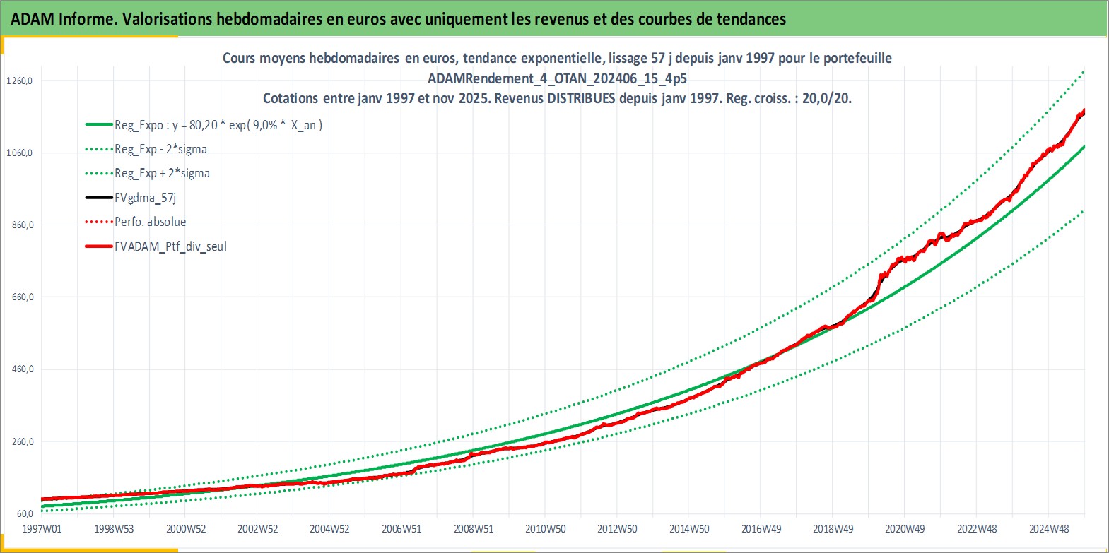 Site dédié aux investisseursPage dédiée sur site financeAnalyse des valorisations hebdomadaires du portefeuille ADAMRendement_4_OTAN_202406_15_4p5_38actifs avec un profil P6_PurActions. Ce portefeuille est cote en EUR. Les valorisations couvrent les semaines 1997W01 a 2025W48. Les revenus de cet actif financier sont pris en compte depuis la semaine 1997W01. La note globale ESG de cet actif est estimee a 10.1 (apres rebasage entre 0 et 20).