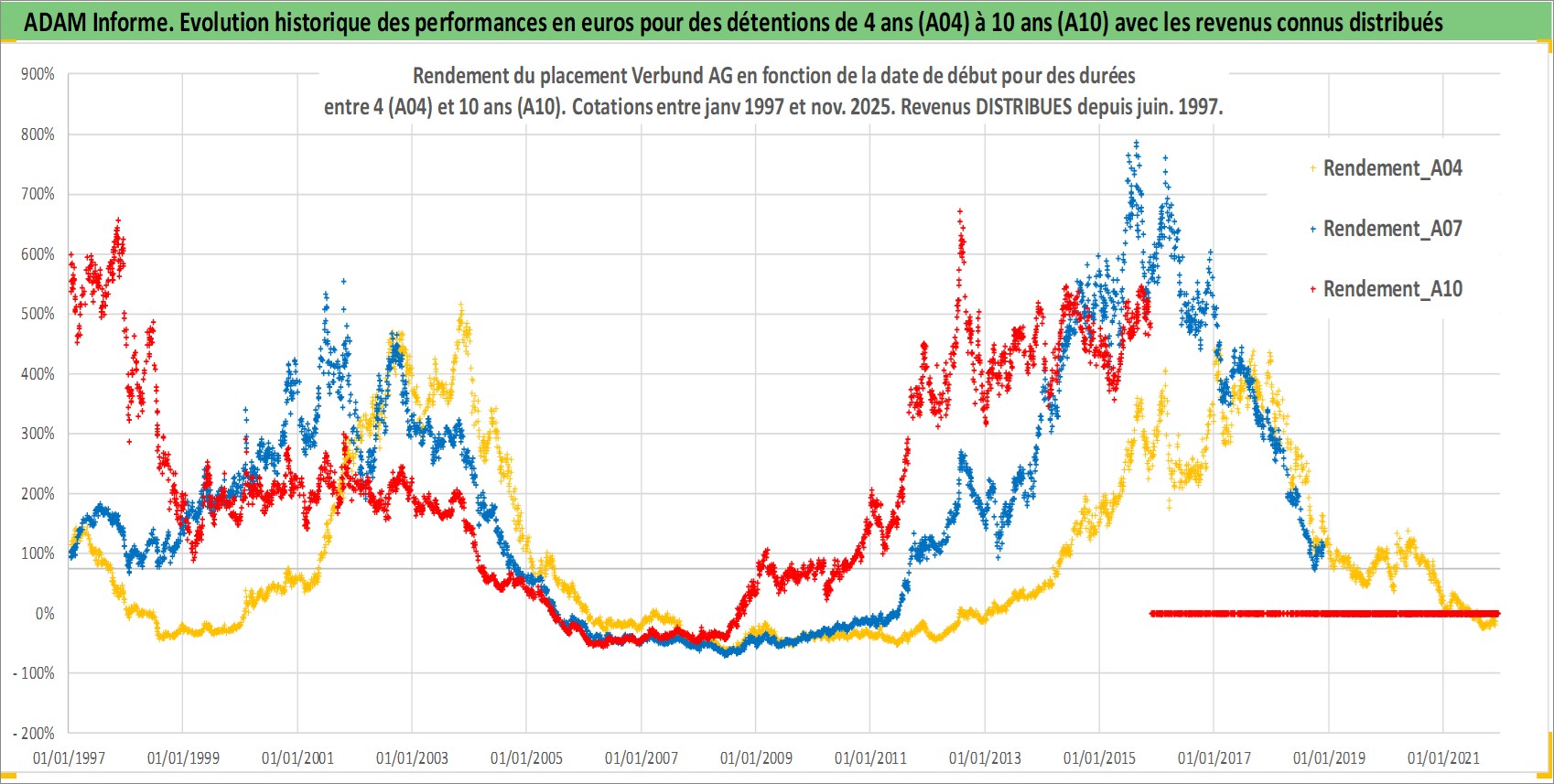 Site dédié aux investisseursPage dédiée sur site financeAnalyse des valorisations hebdomadaires de l'action Verbund AG. Cet actif est cote en EUR. Les valorisations couvrent les semaines 1997W01 a 2025W48. Les revenus de cet actif financier sont pris en compte depuis la semaine 1997W24. La note globale ESG de cet actif est estimee a 11.0 (apres rebasage entre 0 et 20).