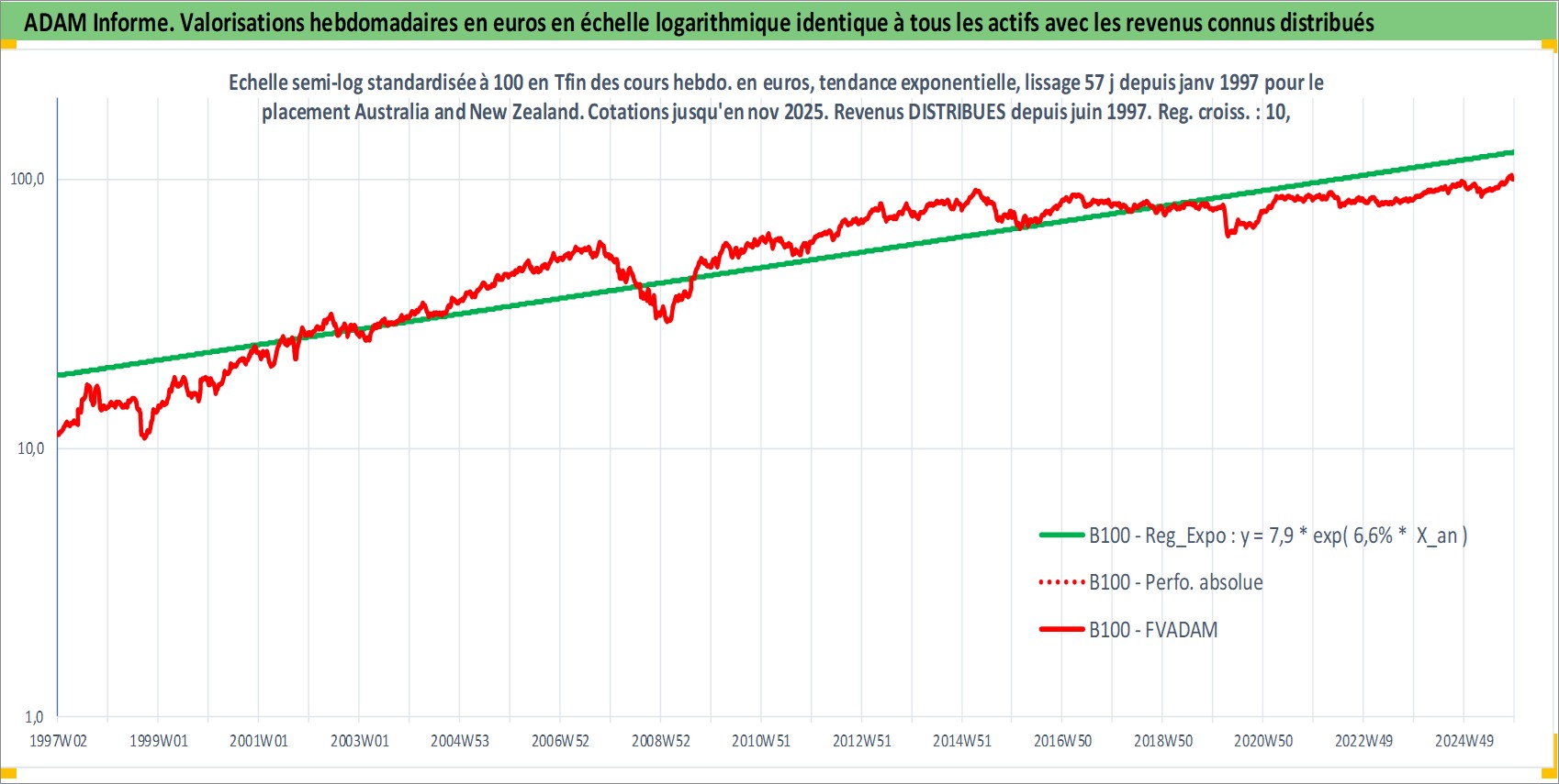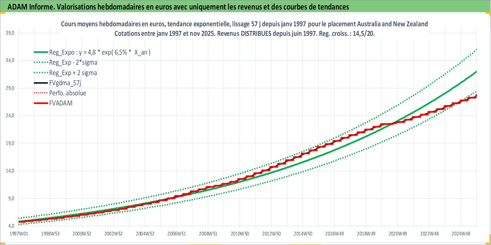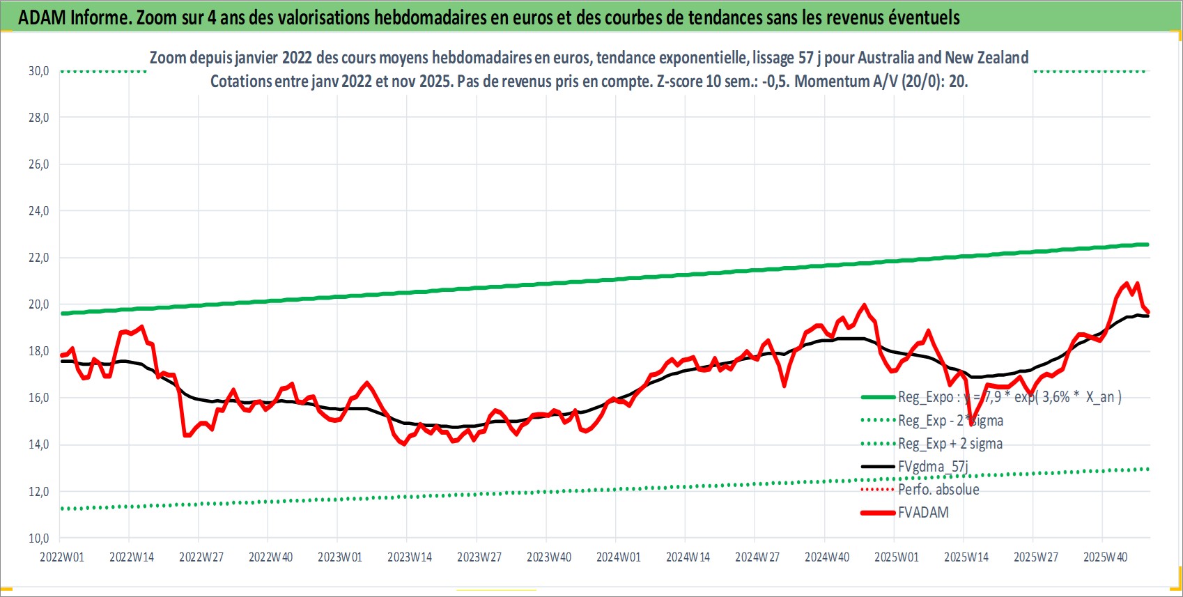 Site dédié aux investisseursPage dédiée sur site financeAnalyse des valorisations hebdomadaires de l'action Australia and New Zealand Banking Group Ltd. Cet actif est cote en AUD. Les valorisations sont en contrevaleur EURO et couvrent les semaines 1997W01 a 2025W48. Les revenus de cet actif financier sont pris en compte depuis la semaine 1997W23. La note globale ESG de cet actif est estimee a 11.0 (apres rebasage entre 0 et 20).