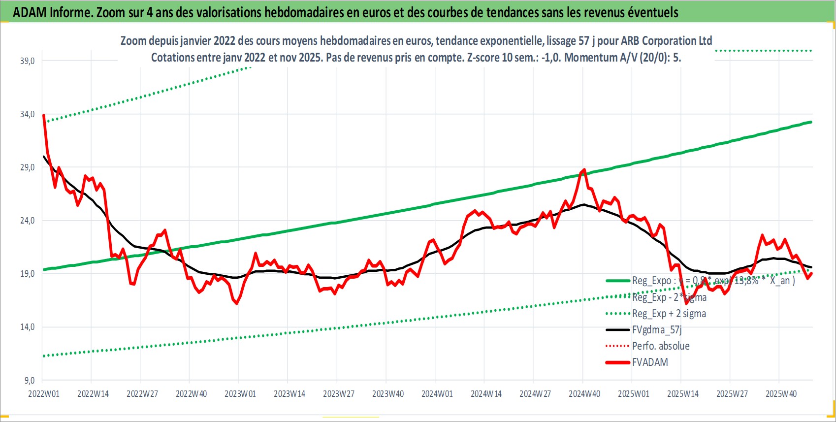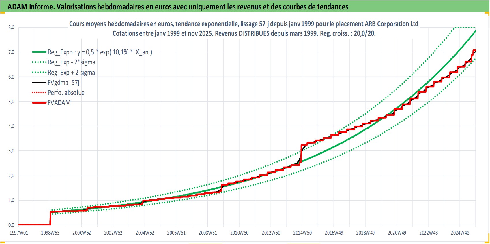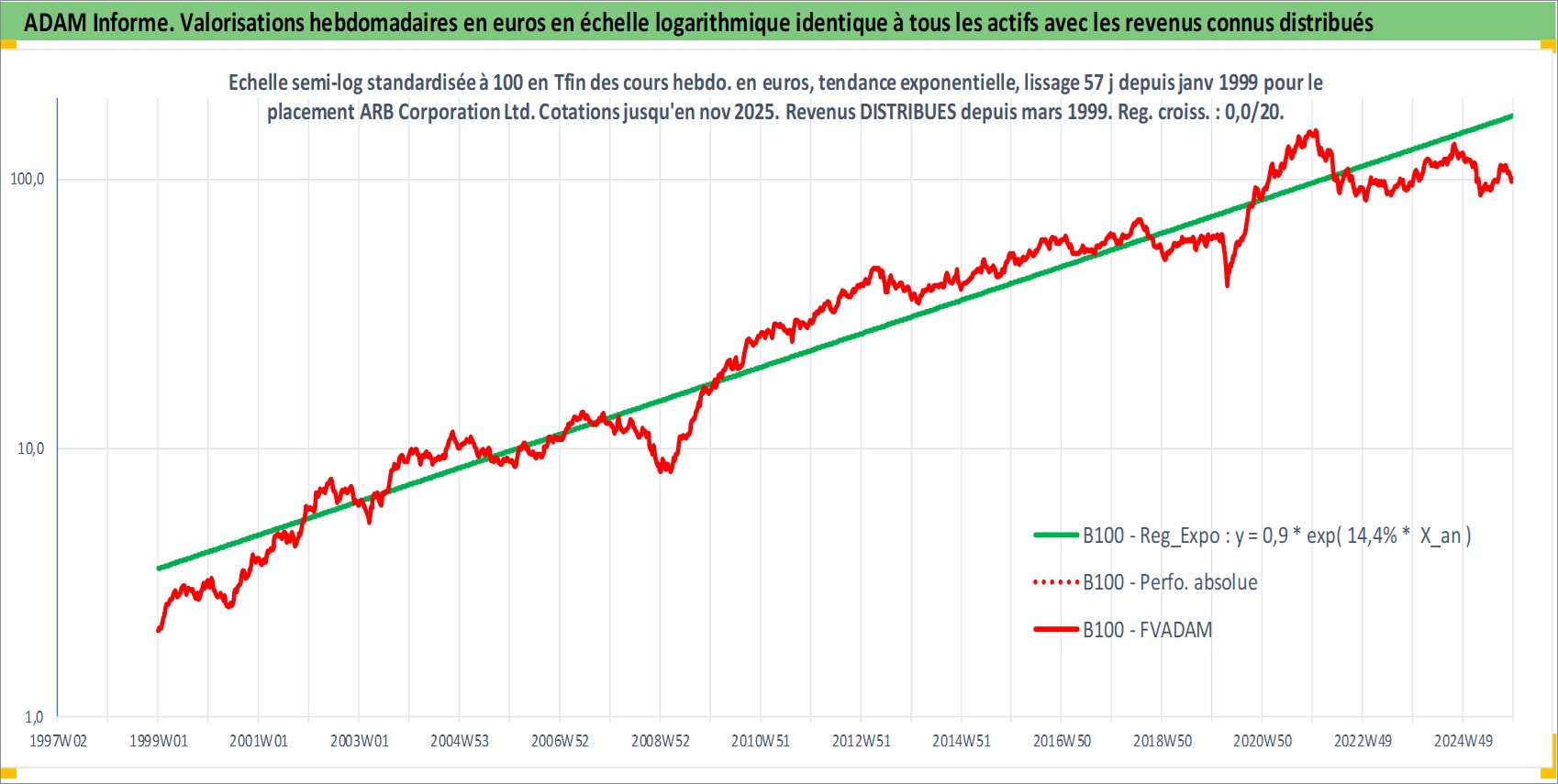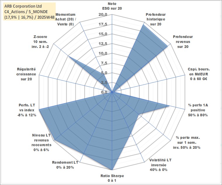 Site dédié aux investisseursPage dédiée sur site financeAnalyse des valorisations hebdomadaires de l'action ARB Corporation Ltd. Cet actif est cote en AUD. Les valorisations sont en contrevaleur EURO et couvrent les semaines 1999W01 a 2025W48. Les revenus de cet actif financier sont pris en compte depuis la semaine 1999W13. La note ESG de cet actif n'est pas connue.