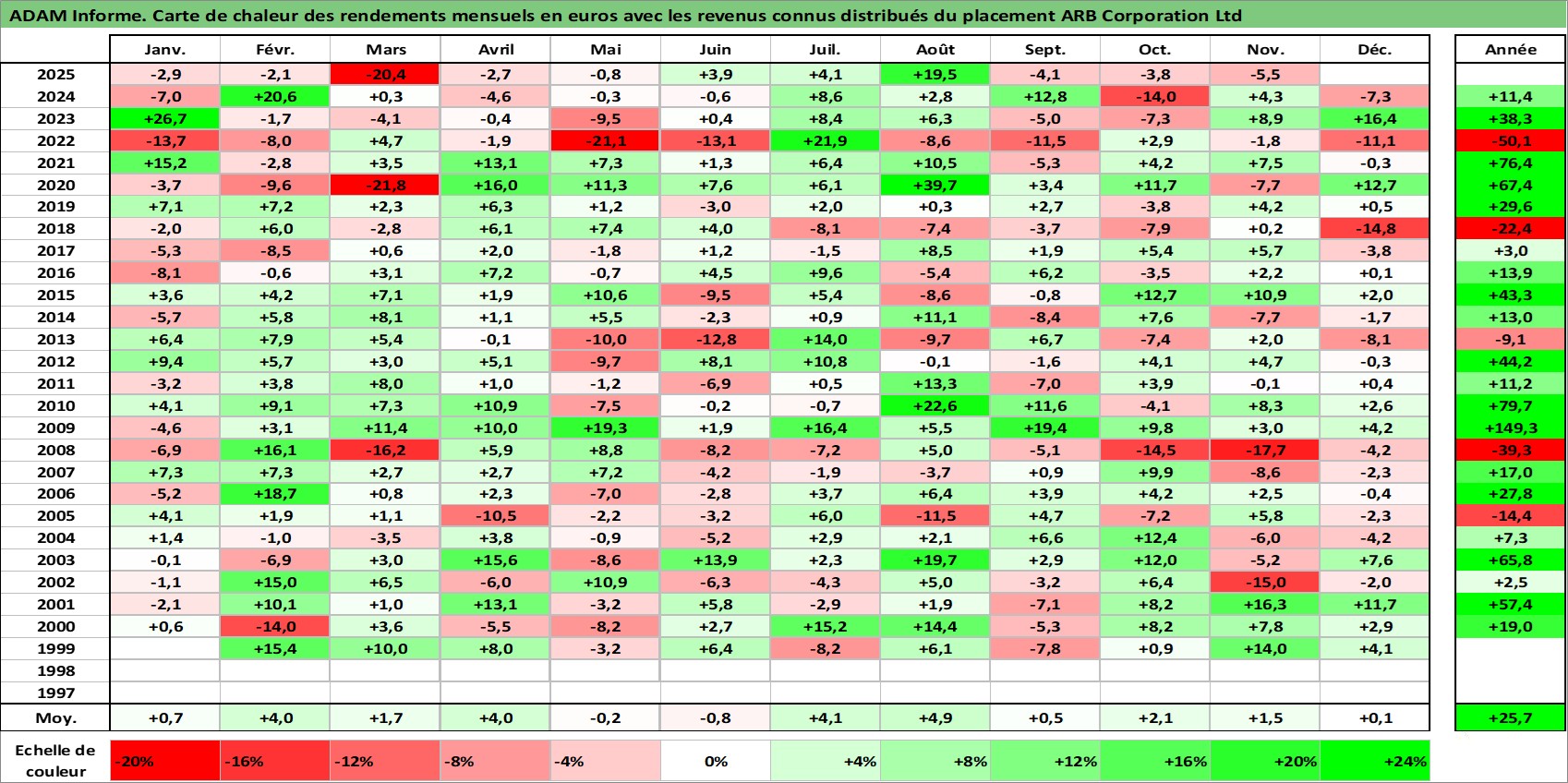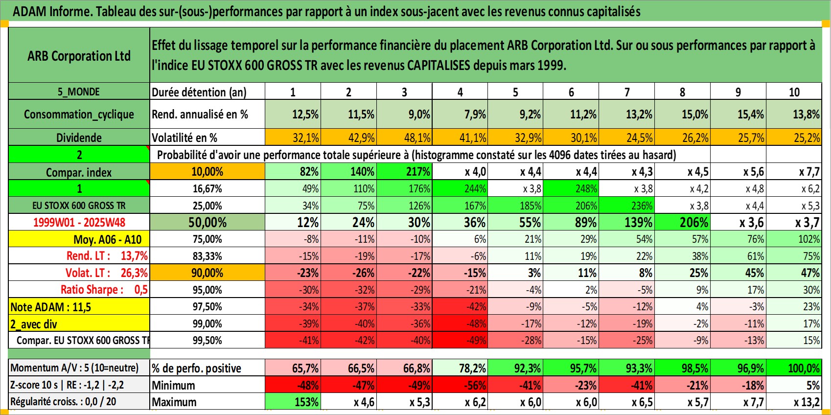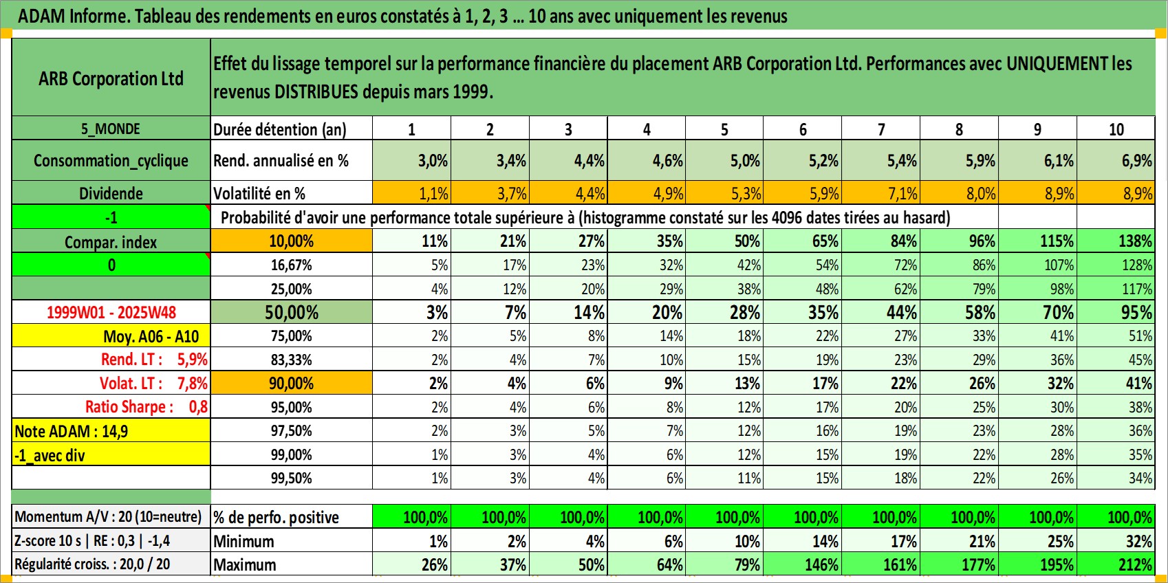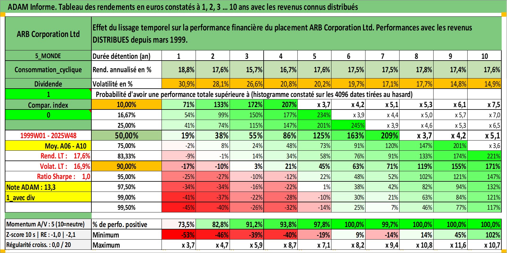 Site dédié aux investisseursPage dédiée sur site financeAnalyse des valorisations hebdomadaires de l'action ARB Corporation Ltd. Cet actif est cote en AUD. Les valorisations sont en contrevaleur EURO et couvrent les semaines 1999W01 a 2025W48. Les revenus de cet actif financier sont pris en compte depuis la semaine 1999W13. La note ESG de cet actif n'est pas connue.