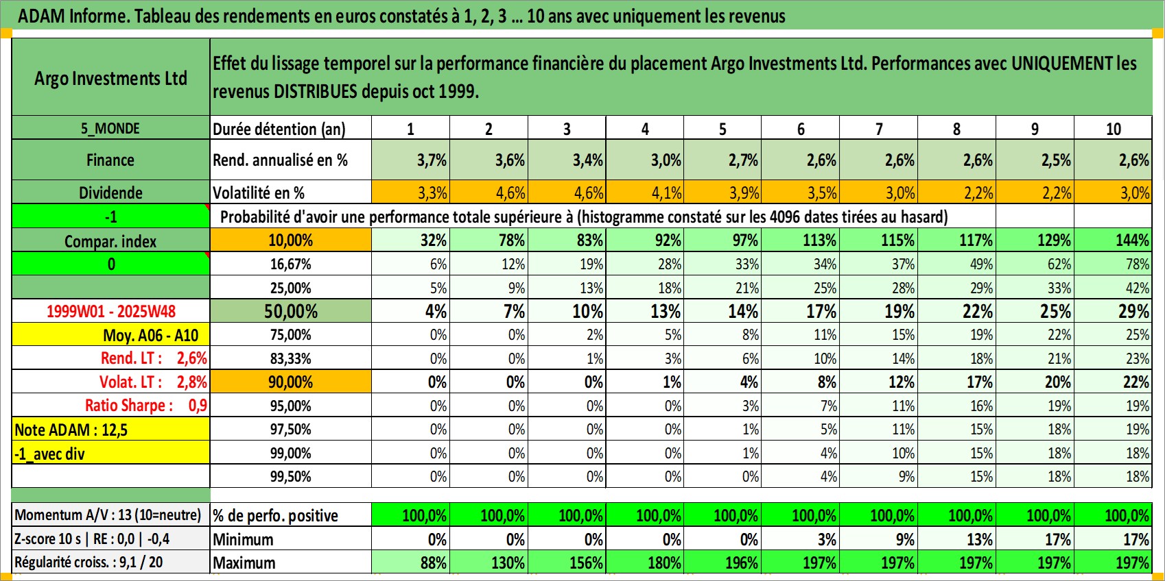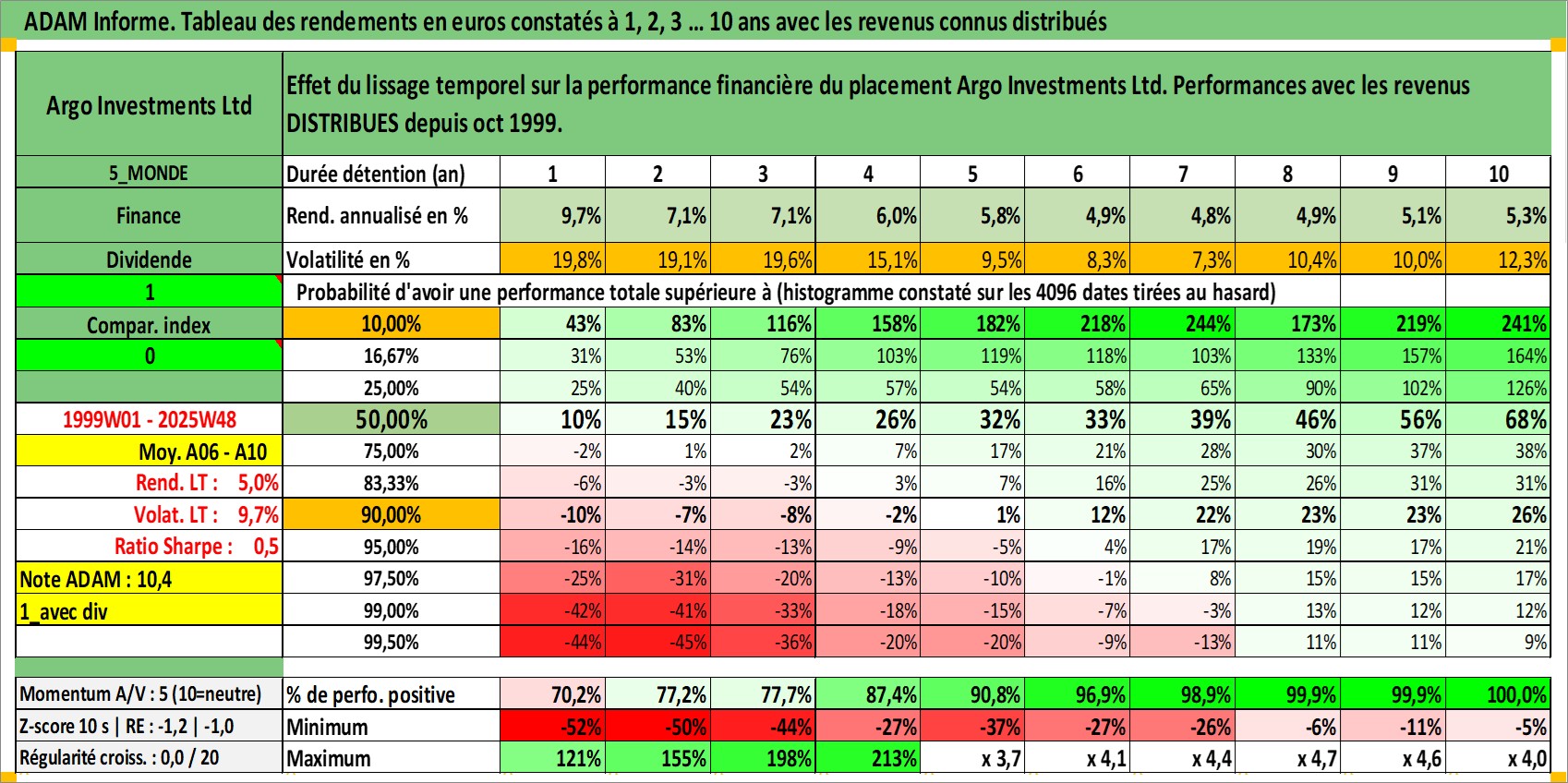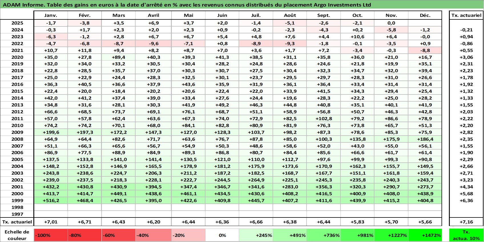 Site dédié aux investisseursPage dédiée sur site financeAnalyse des valorisations hebdomadaires de l'action Argo Investments Ltd. Cet actif est cote en AUD. Les valorisations sont en contrevaleur EURO et couvrent les semaines 1999W01 a 2025W48. Les revenus de cet actif financier sont pris en compte depuis la semaine 1999W42. La note ESG de cet actif n'est pas connue.