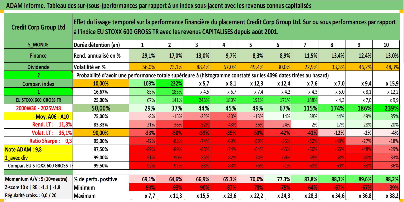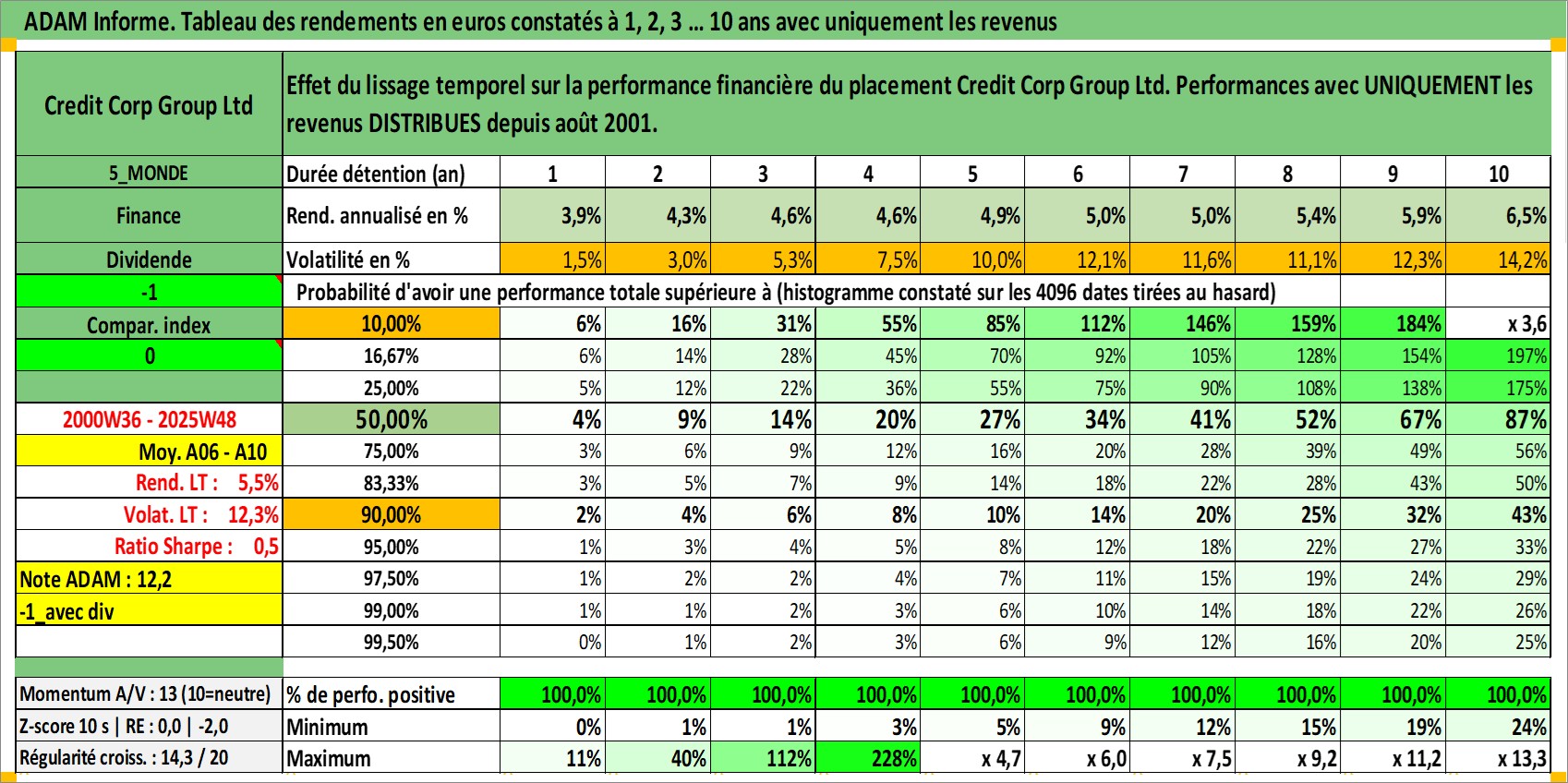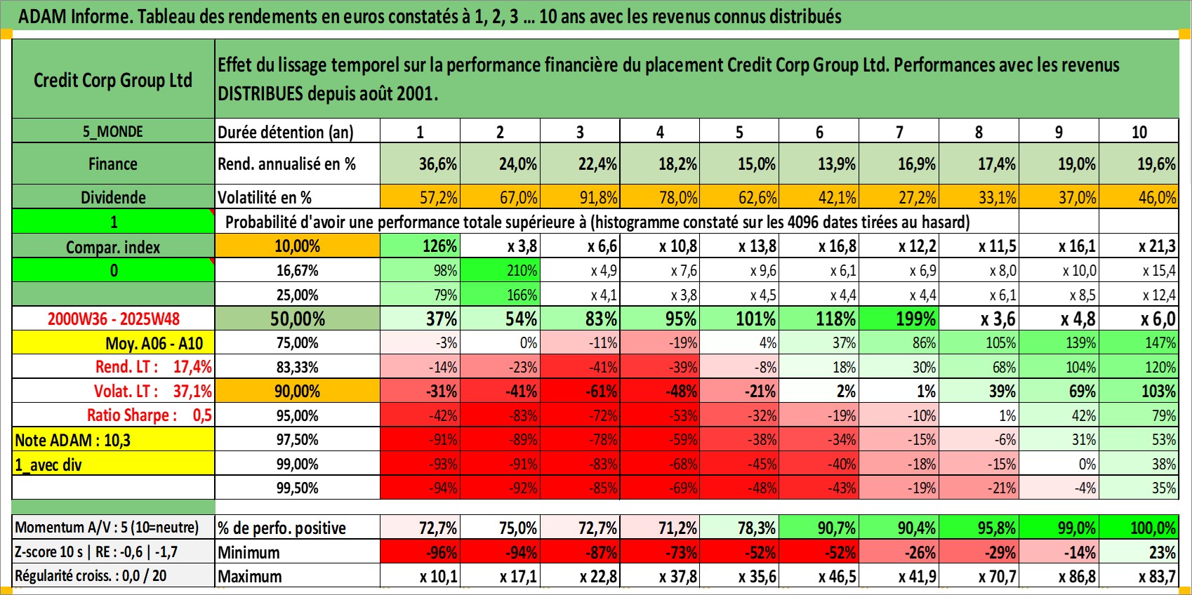 Dernière perfo 10 ans en %
