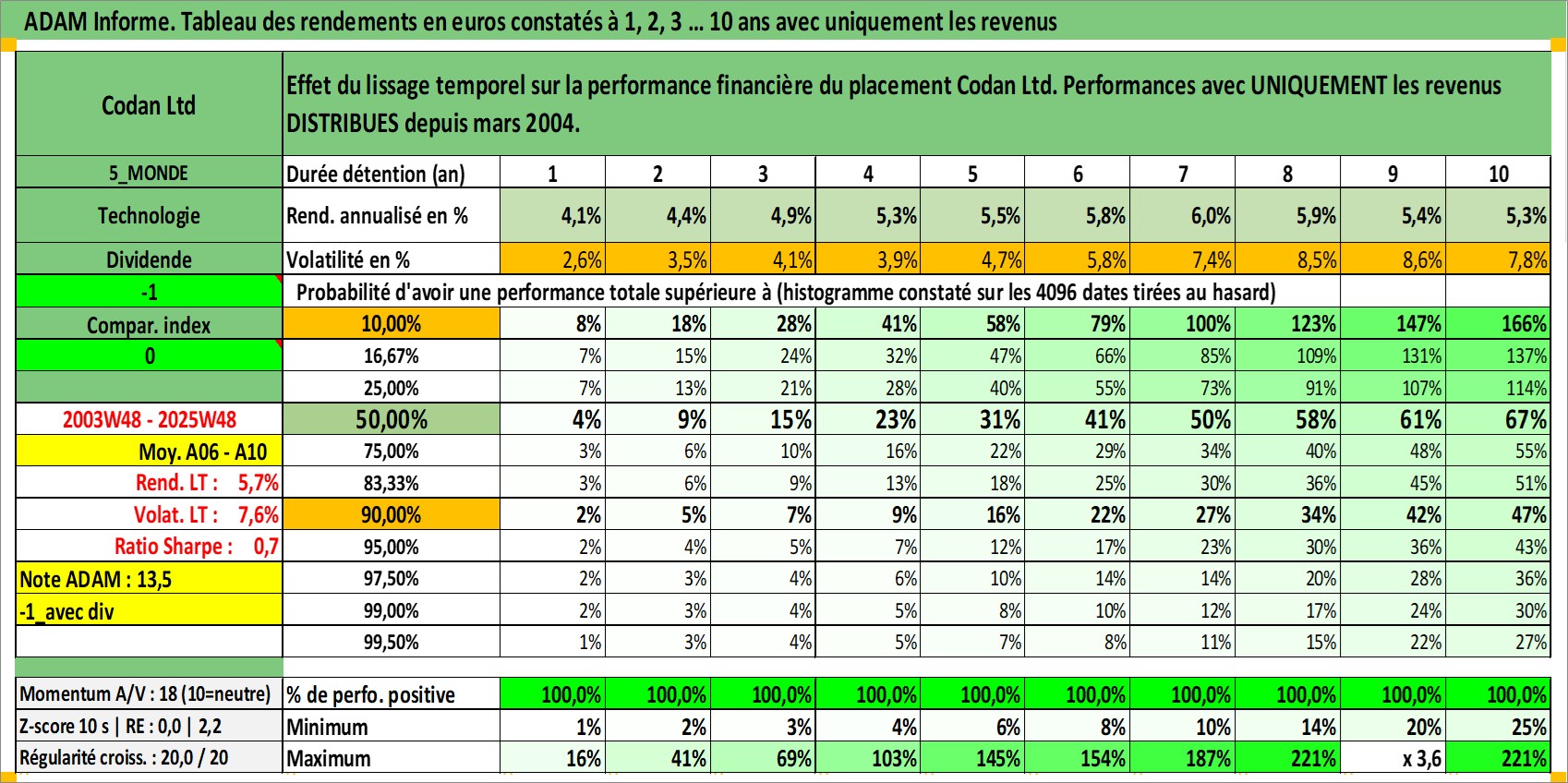 Dernière perfo 10 ans en %