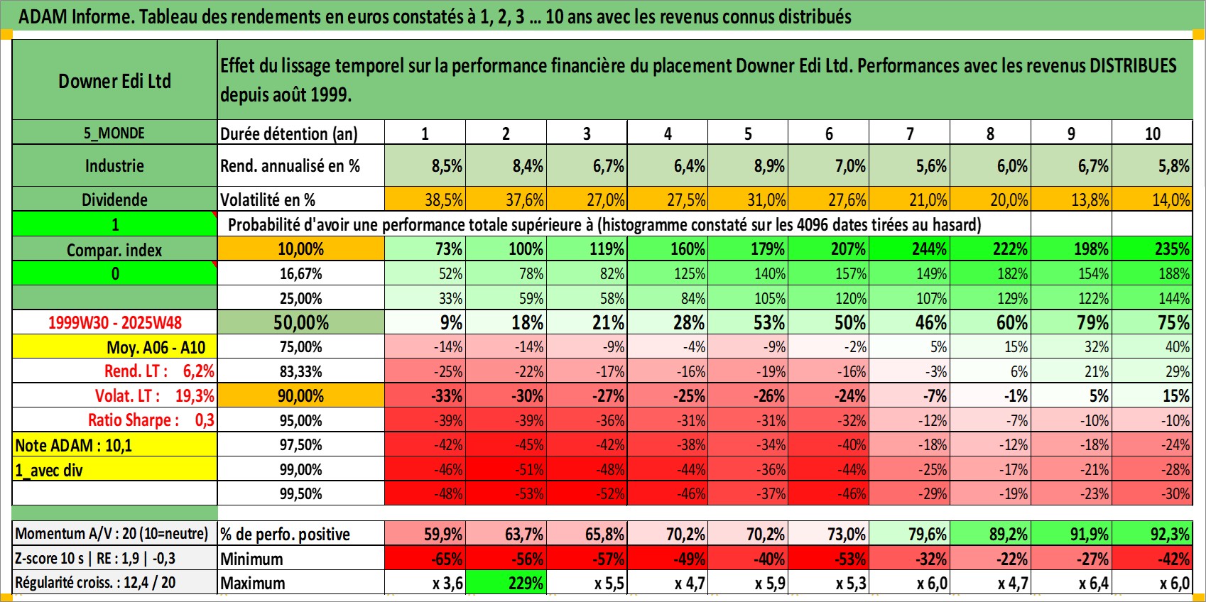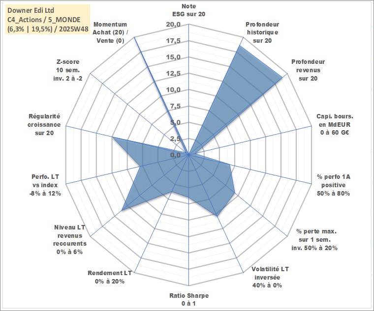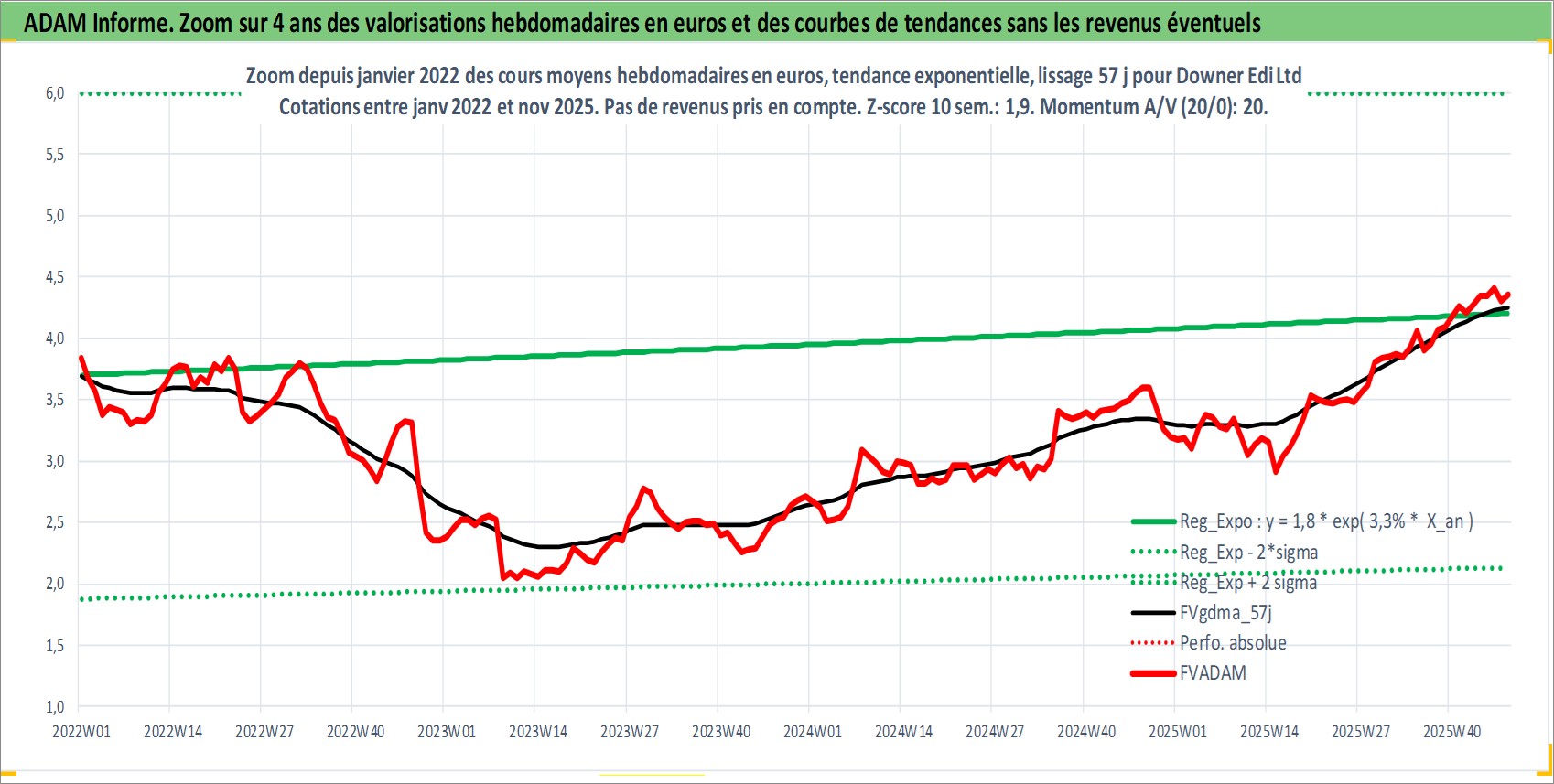 Site dédié aux investisseursPage dédiée sur site financeAnalyse des valorisations hebdomadaires de l'action Downer Edi Ltd. Cet actif est cote en AUD. Les valorisations sont en contrevaleur EURO et couvrent les semaines 1999W30 a 2025W48. Les revenus de cet actif financier sont pris en compte depuis la semaine 1999W34. La note ESG de cet actif n'est pas connue.