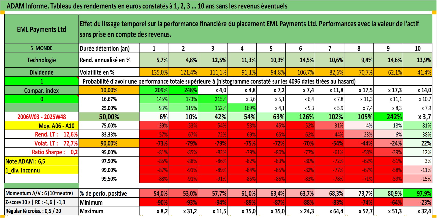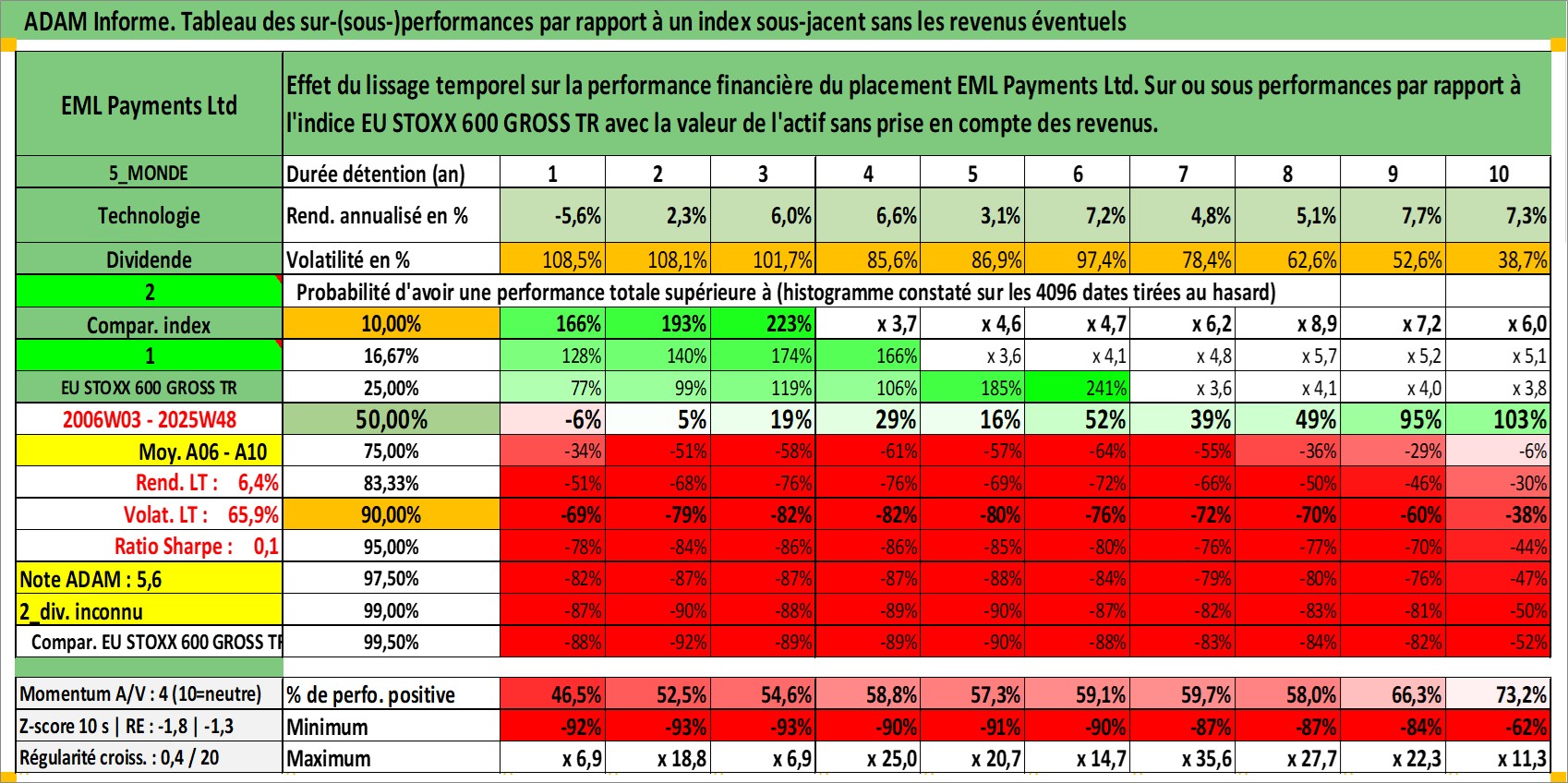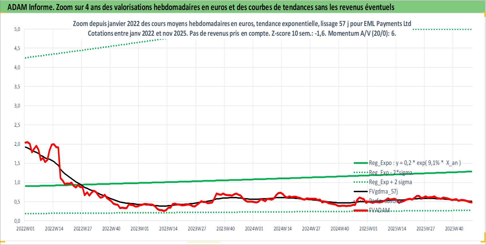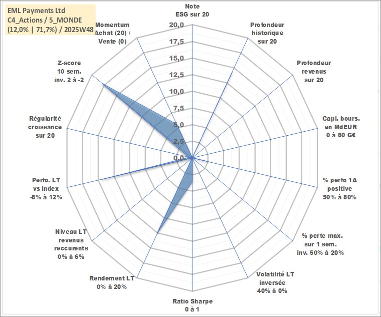 Site dédié aux investisseursPage dédiée sur site financeAnalyse des valorisations hebdomadaires de l'action EML Payments Ltd. Cet actif est cote en AUD. Les valorisations sont en contrevaleur EURO et couvrent les semaines 2006W03 a 2025W48. Les revenus de cet actif financier ne sont pas connus car non existants ou non disponibles sur le site Yahoo Finance. La note ESG de cet actif n'est pas connue.