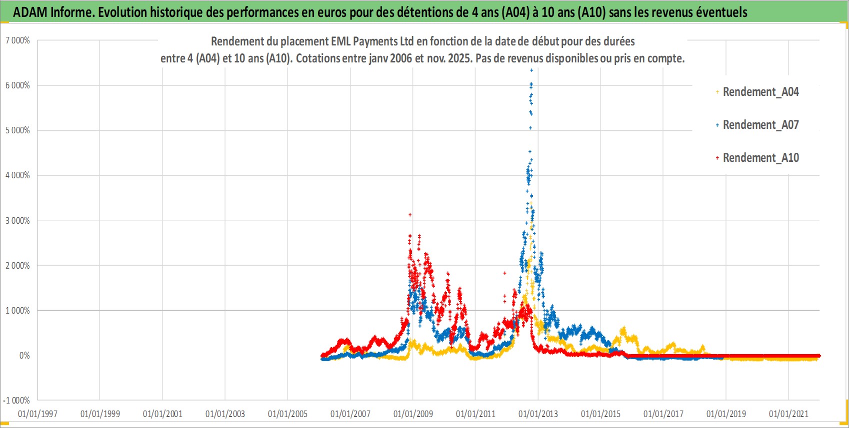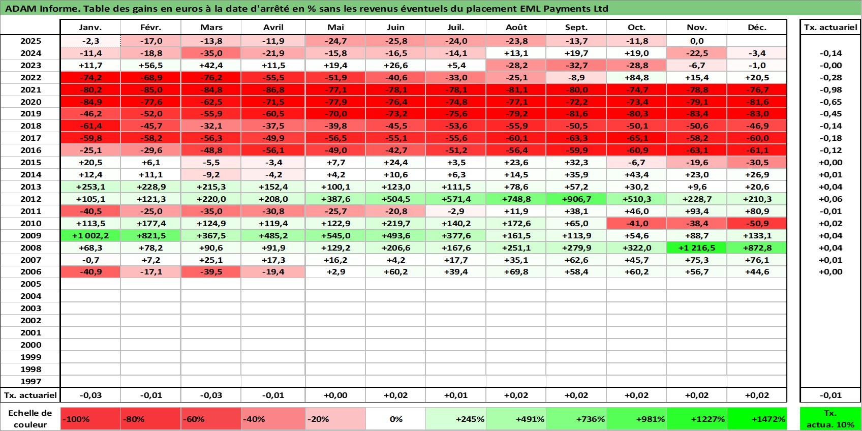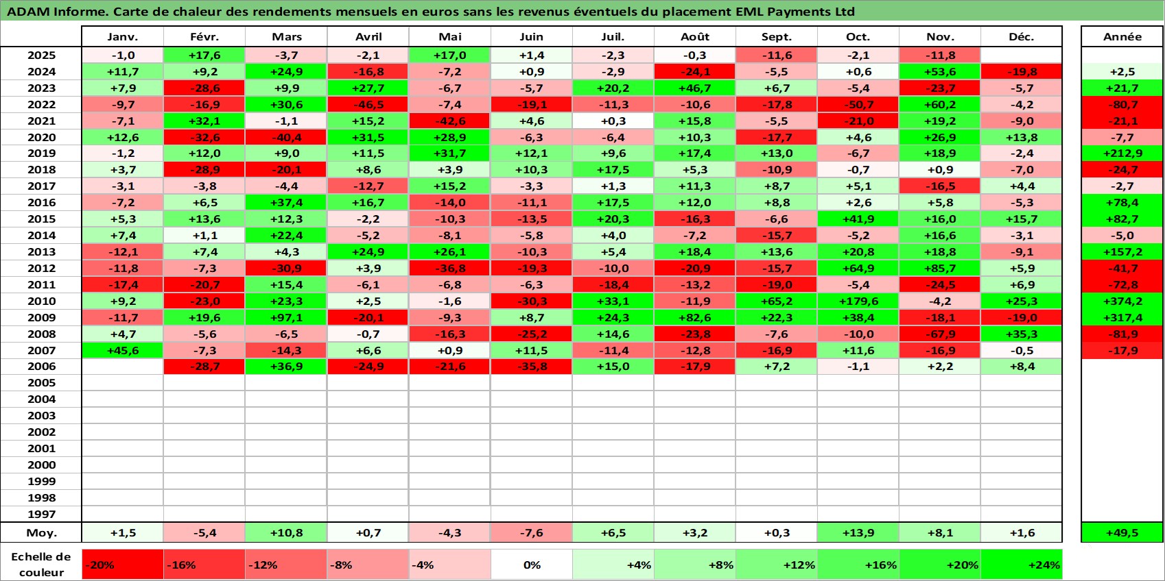 Site dédié aux investisseursPage dédiée sur site financeAnalyse des valorisations hebdomadaires de l'action EML Payments Ltd. Cet actif est cote en AUD. Les valorisations sont en contrevaleur EURO et couvrent les semaines 2006W03 a 2025W48. Les revenus de cet actif financier ne sont pas connus car non existants ou non disponibles sur le site Yahoo Finance. La note ESG de cet actif n'est pas connue.