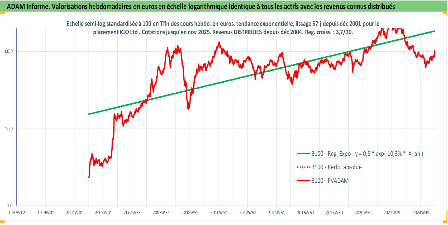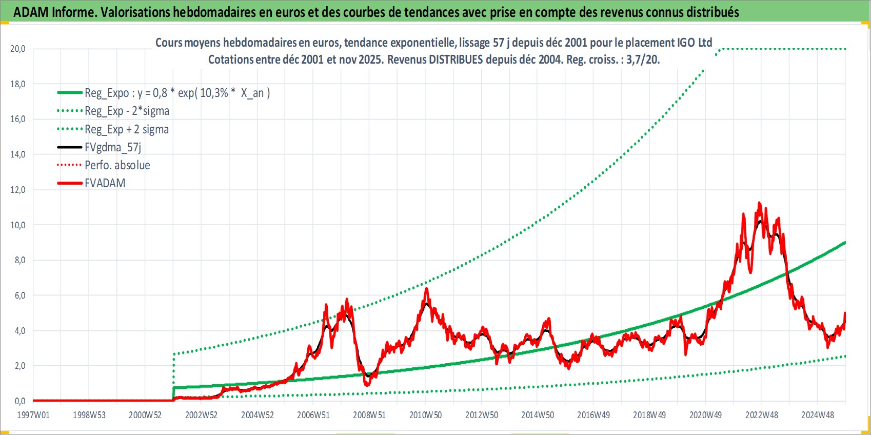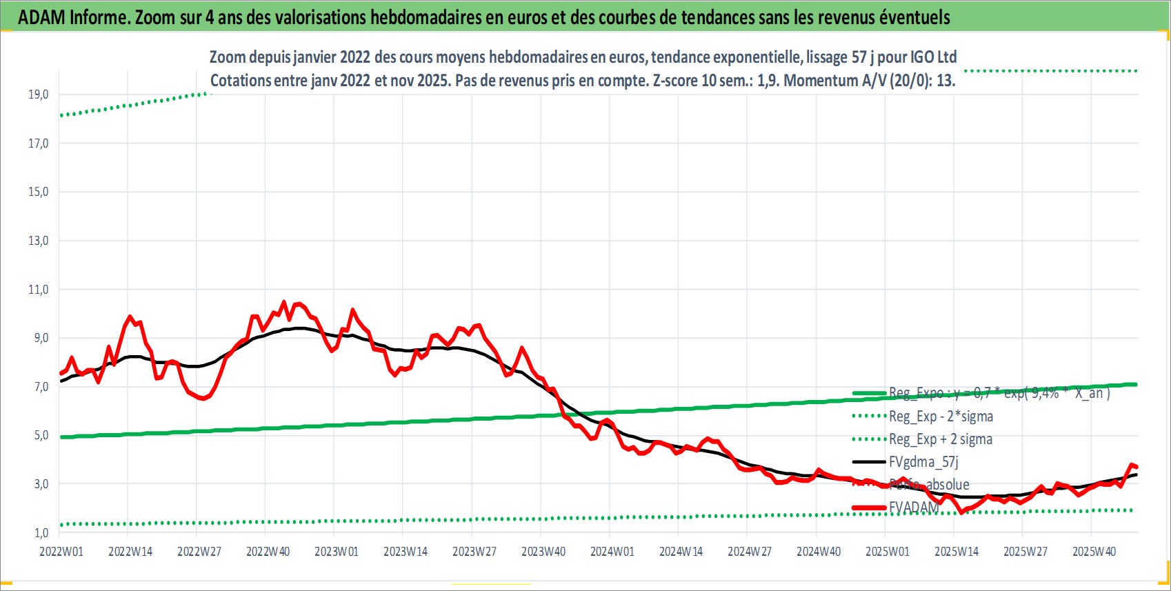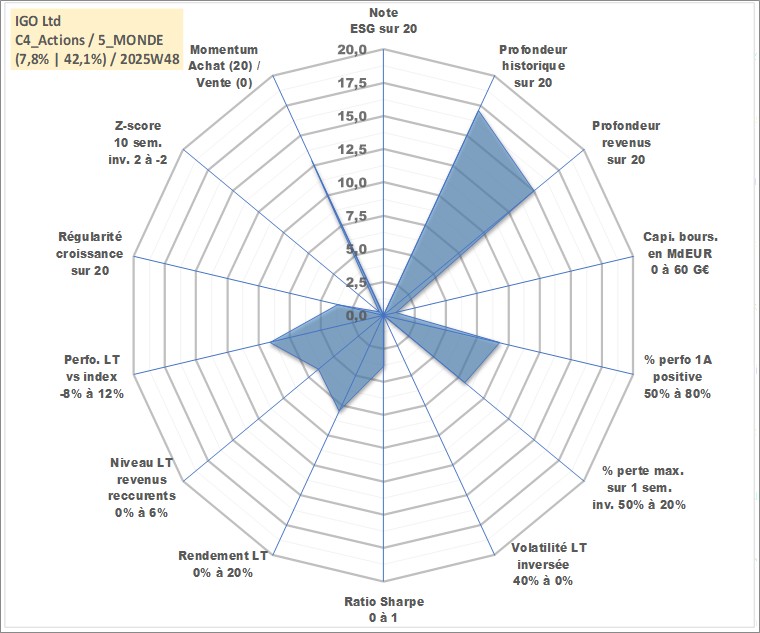 Site dédié aux investisseursPage dédiée sur site financeAnalyse des valorisations hebdomadaires de l'action IGO Ltd . Cet actif est cote en AUD. Les valorisations sont en contrevaleur EURO et couvrent les semaines 2002W01 a 2025W48. Les revenus de cet actif financier sont pris en compte depuis la semaine 2004W50. La note ESG de cet actif n'est pas connue.