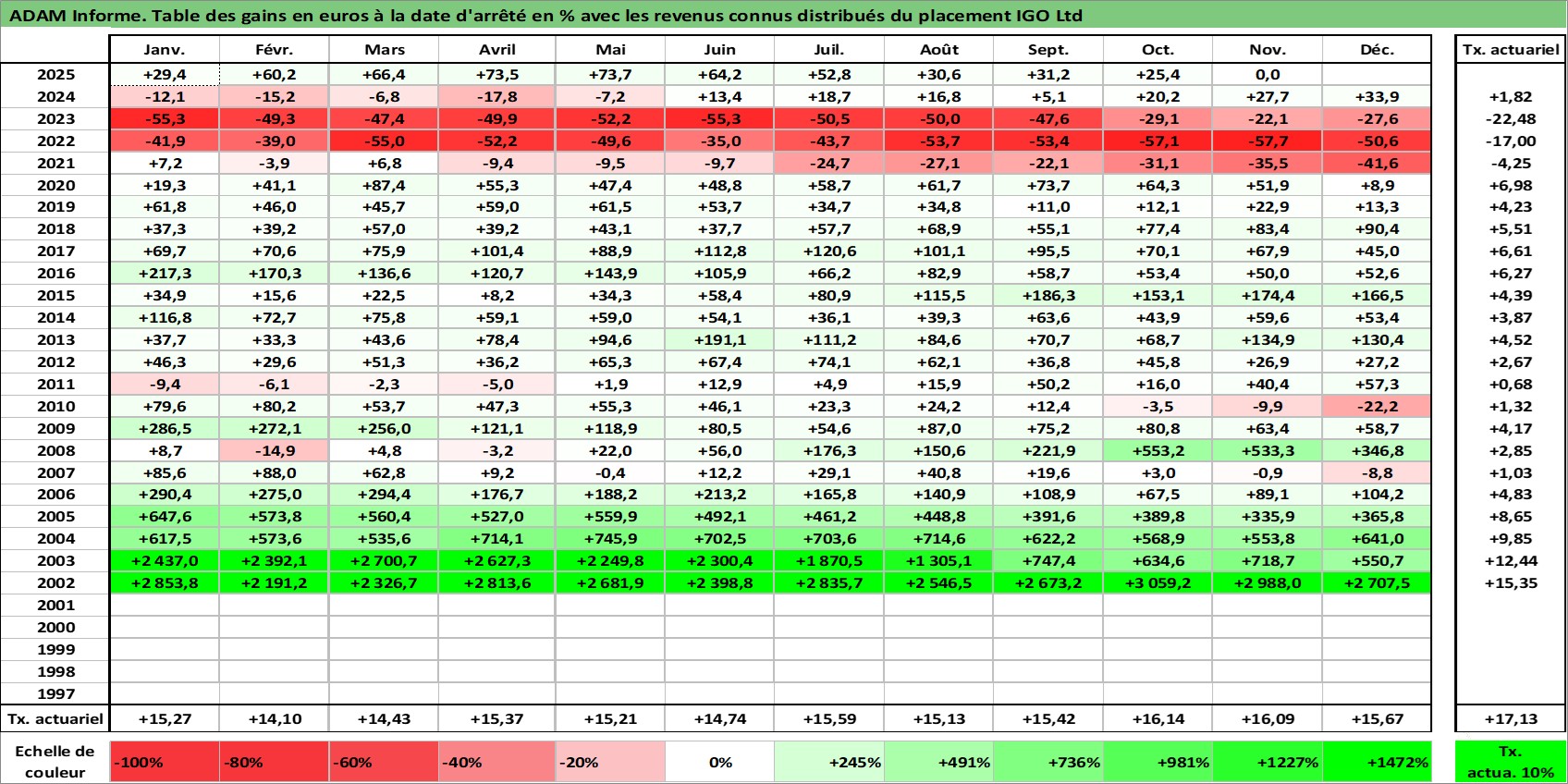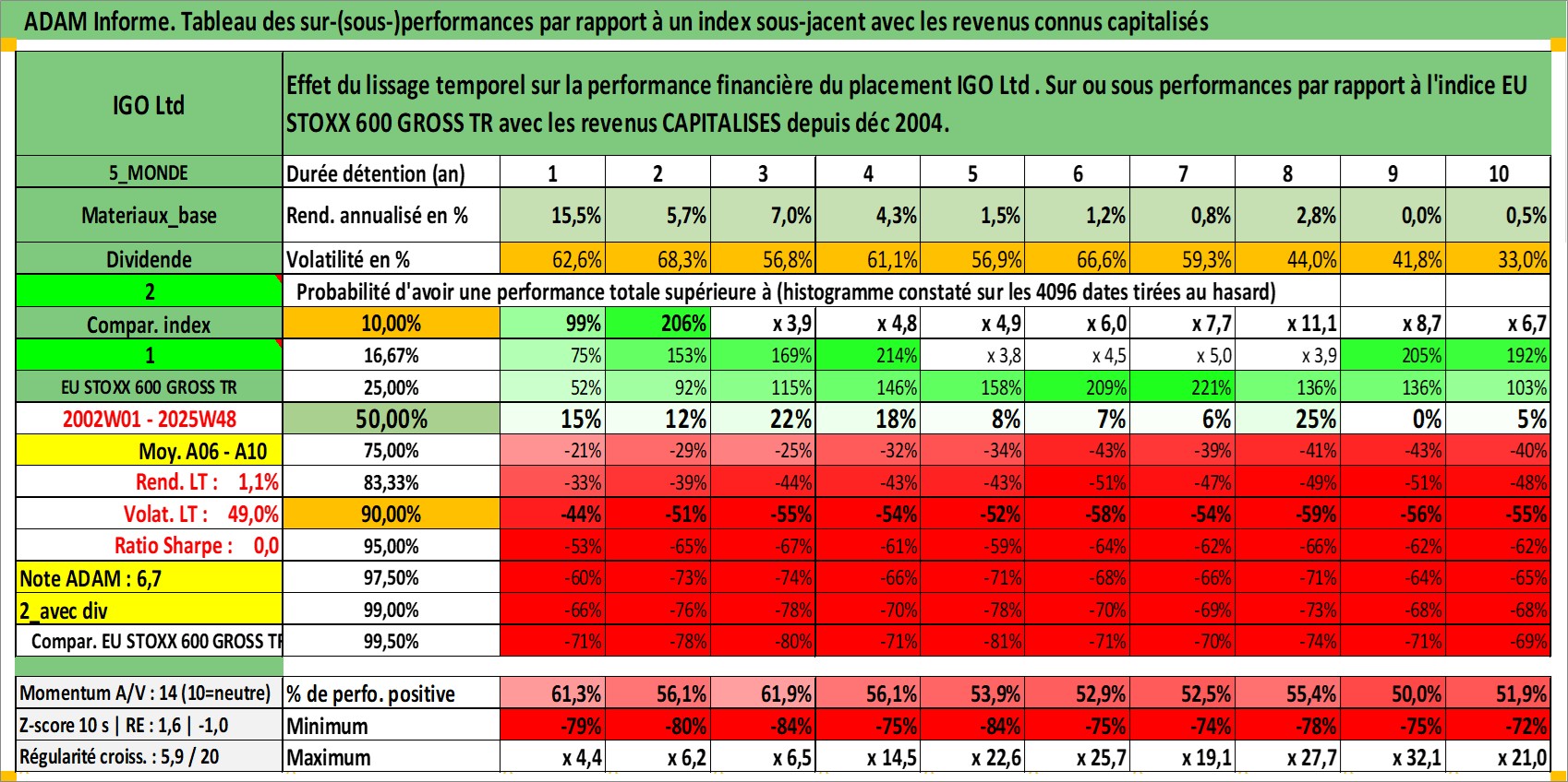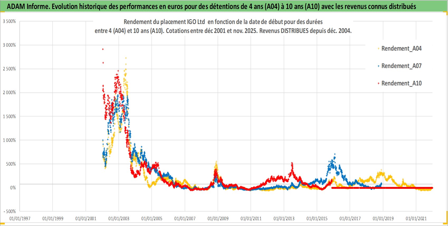 Site dédié aux investisseursPage dédiée sur site financeAnalyse des valorisations hebdomadaires de l'action IGO Ltd . Cet actif est cote en AUD. Les valorisations sont en contrevaleur EURO et couvrent les semaines 2002W01 a 2025W48. Les revenus de cet actif financier sont pris en compte depuis la semaine 2004W50. La note ESG de cet actif n'est pas connue.