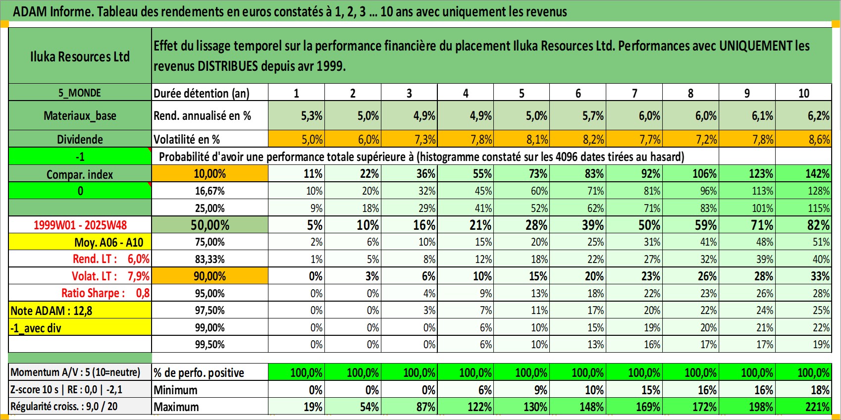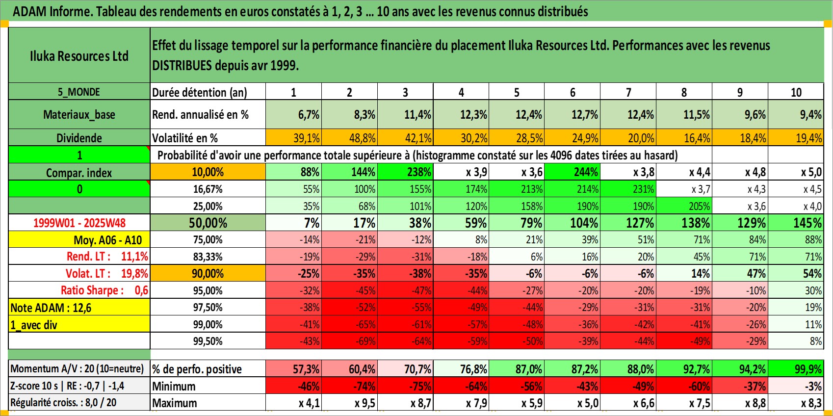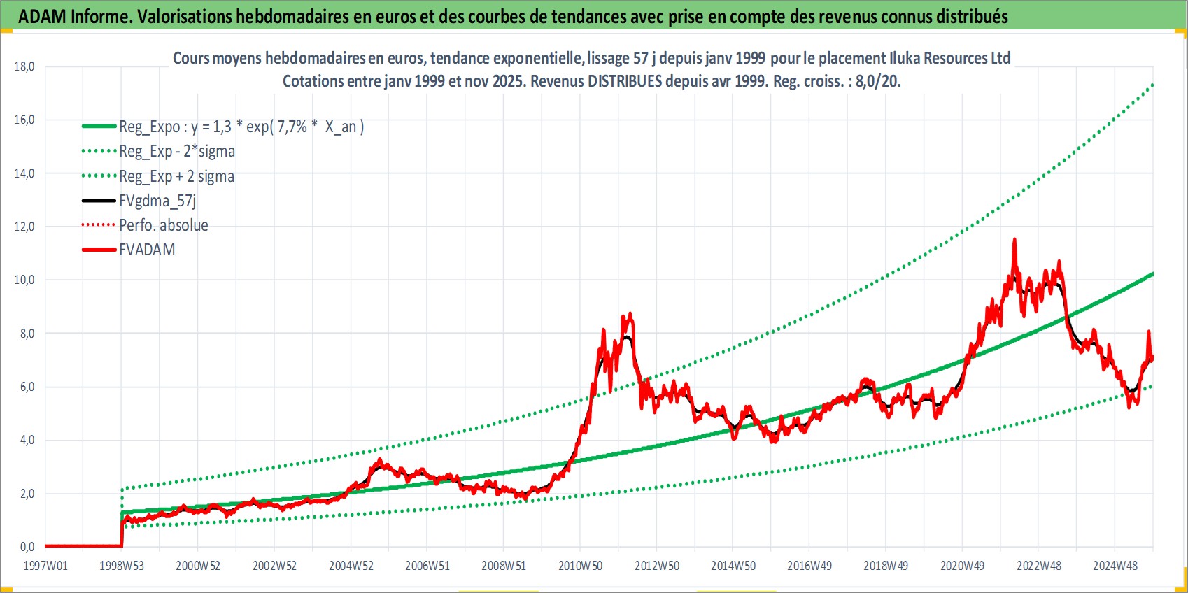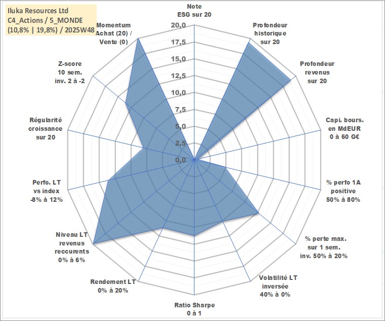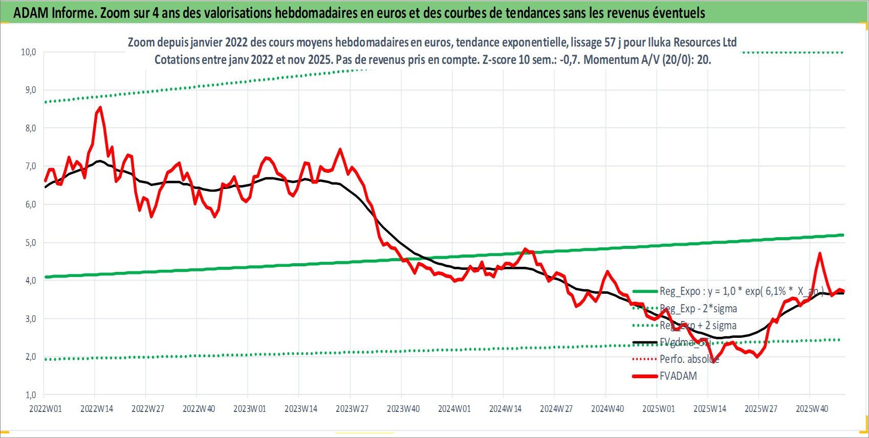 Site dédié aux investisseursPage dédiée sur site financeAnalyse des valorisations hebdomadaires de l'action Iluka Resources Ltd. Cet actif est cote en AUD. Les valorisations sont en contrevaleur EURO et couvrent les semaines 1999W01 a 2025W48. Les revenus de cet actif financier sont pris en compte depuis la semaine 1999W17. La note ESG de cet actif n'est pas connue.