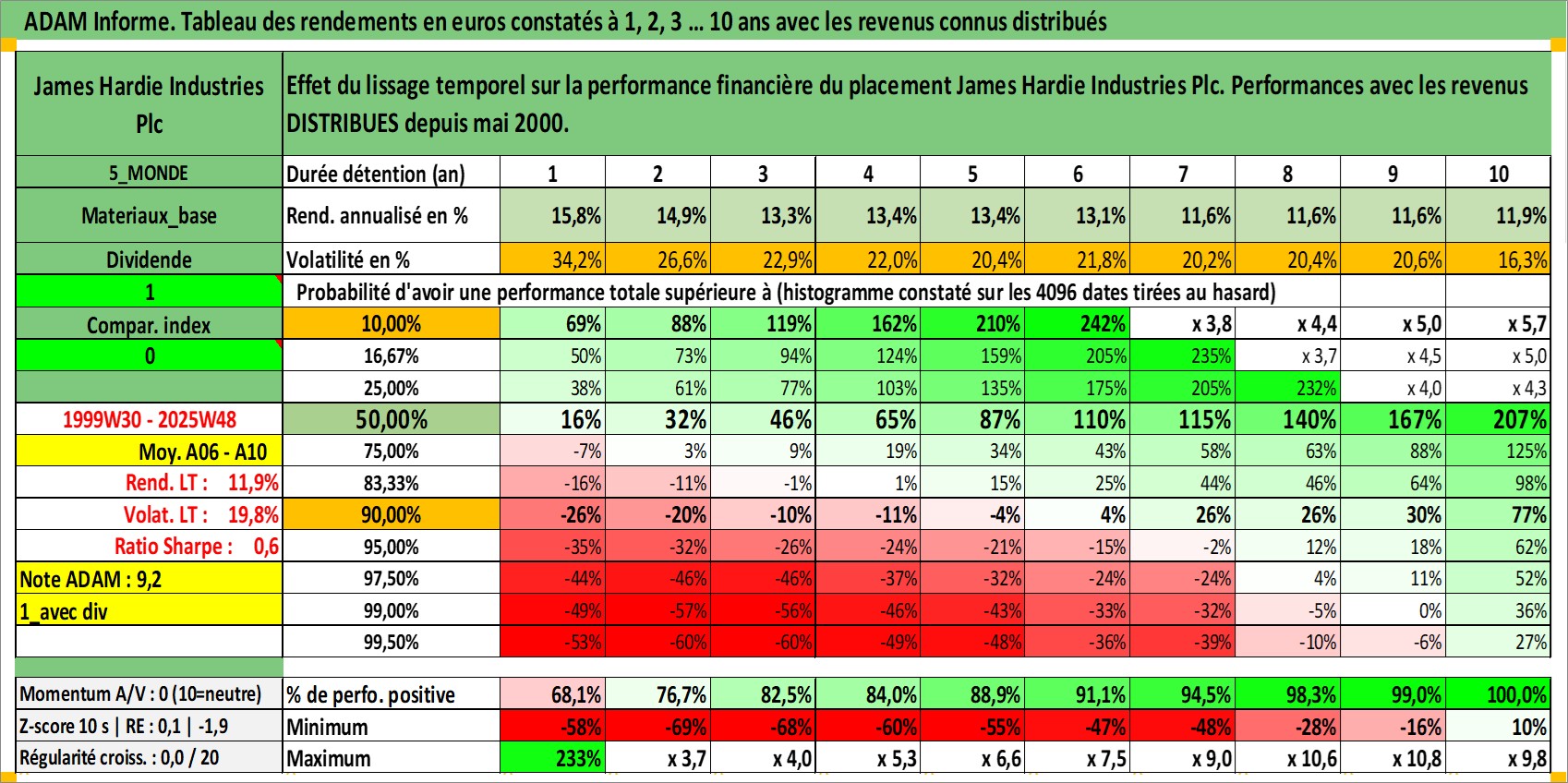 Dernière perfo 10 ans en %
