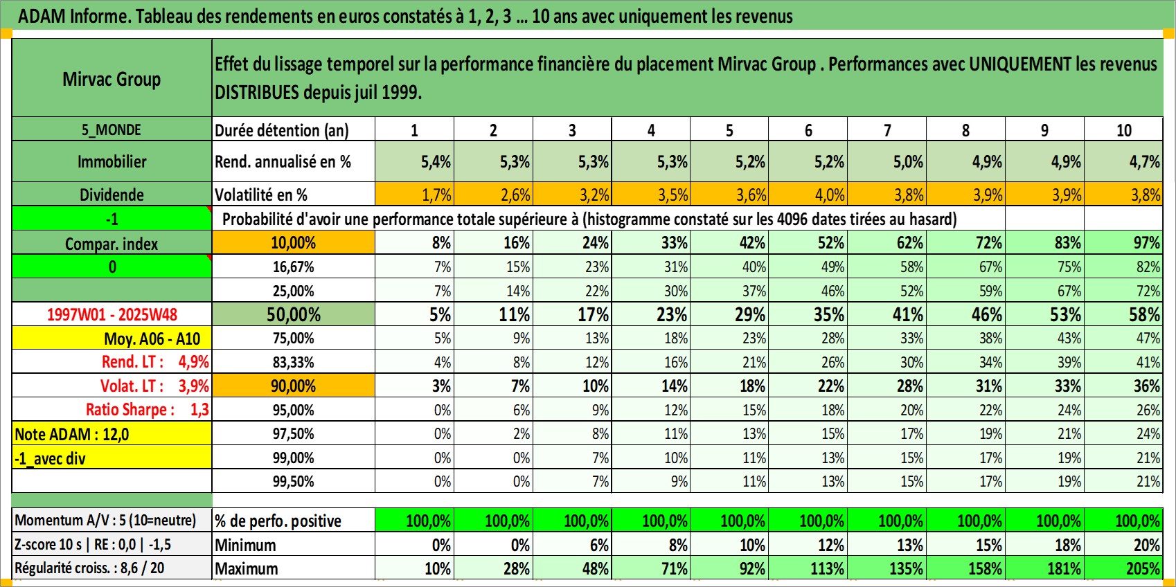 Dernière perfo 10 ans en %