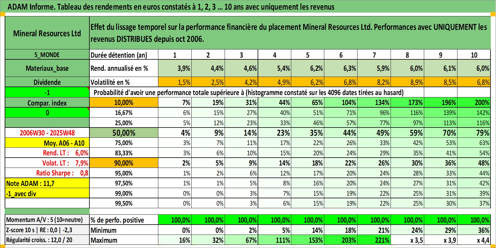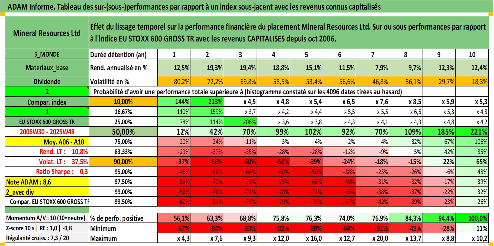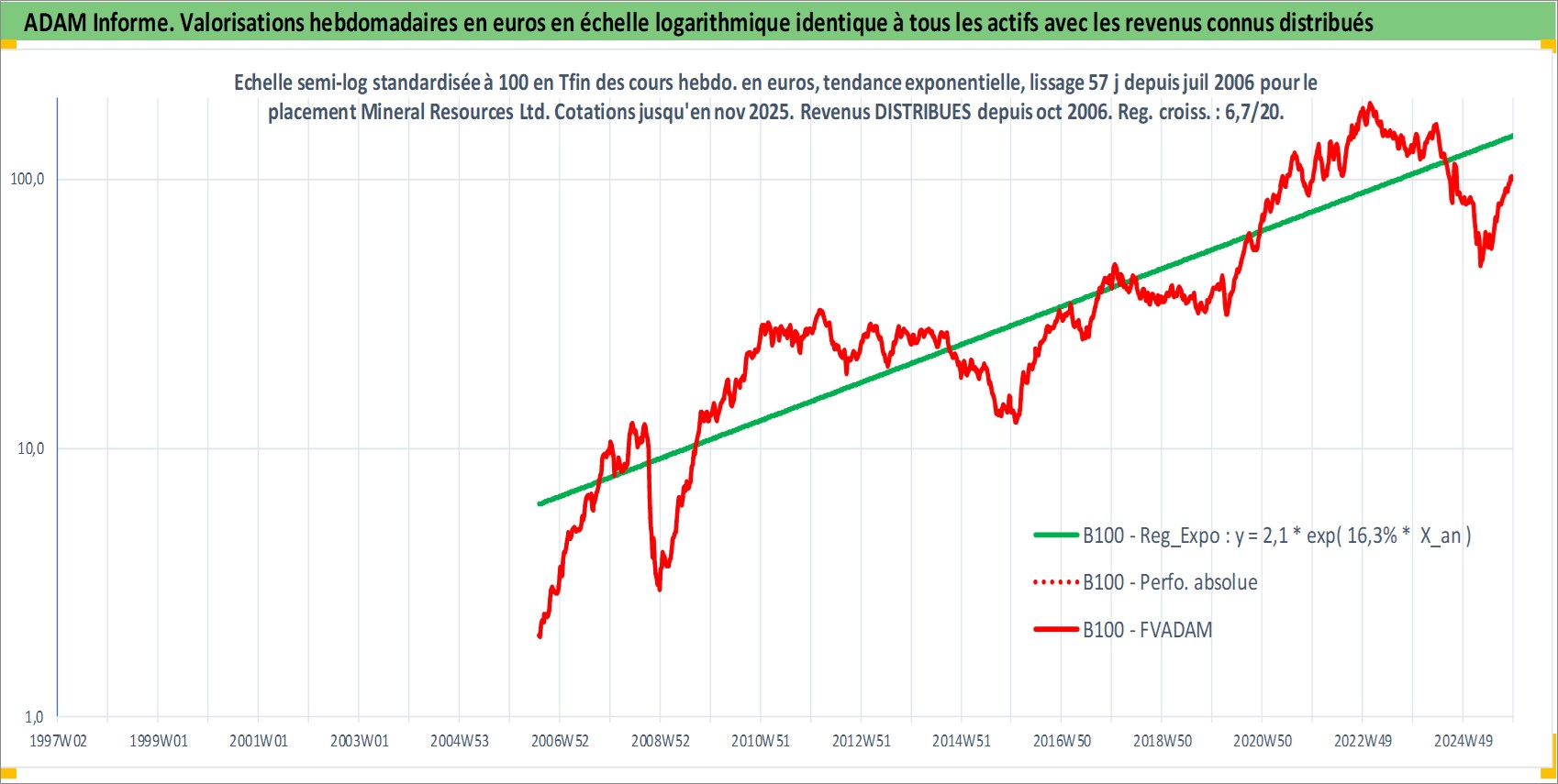 Site dédié aux investisseursPage dédiée sur site financeAnalyse des valorisations hebdomadaires de l'action Mineral Resources Ltd. Cet actif est cote en AUD. Les valorisations sont en contrevaleur EURO et couvrent les semaines 2006W30 a 2025W48. Les revenus de cet actif financier sont pris en compte depuis la semaine 2006W41. La note ESG de cet actif n'est pas connue.