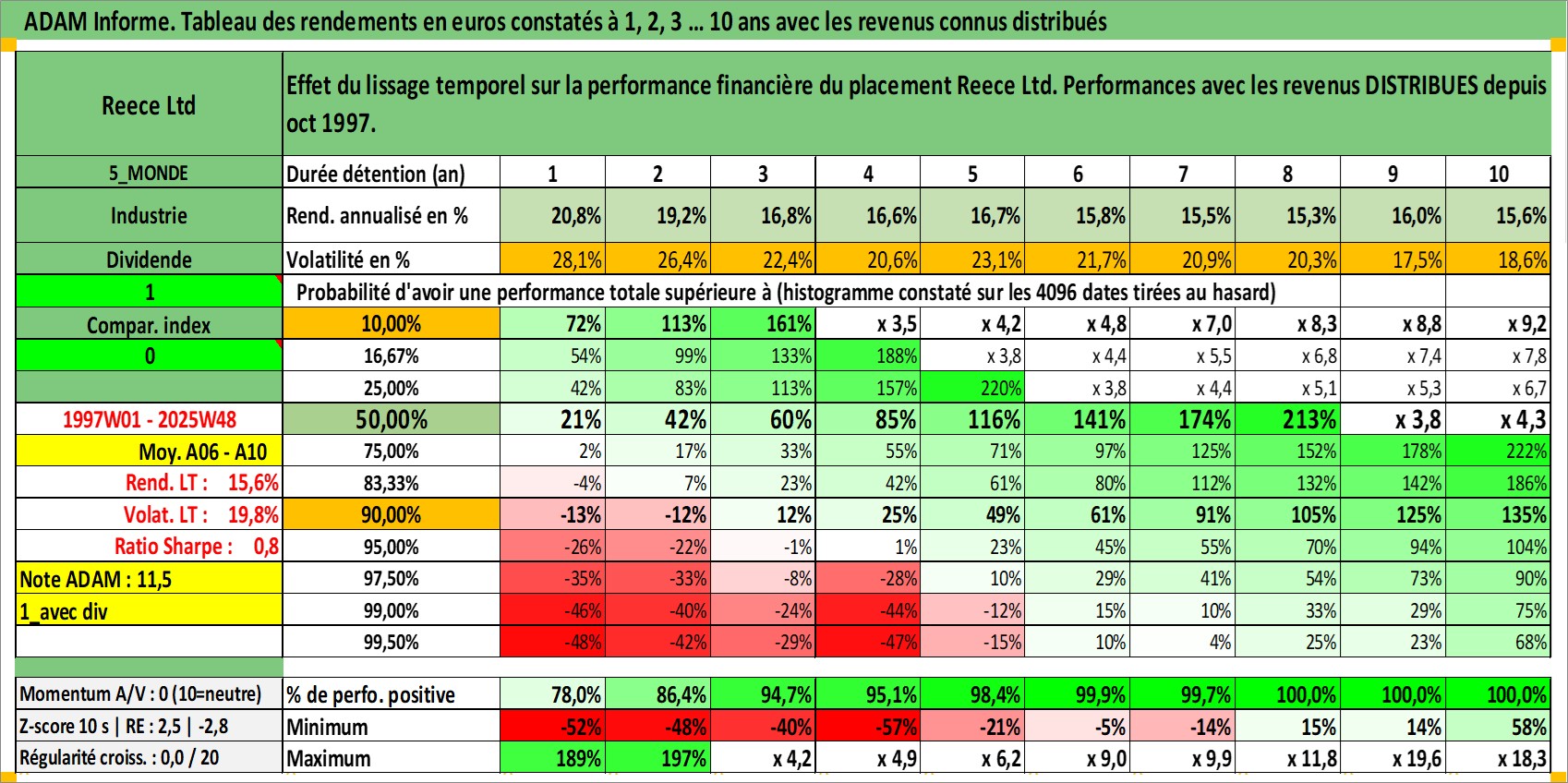 Dernière perfo 10 ans en %