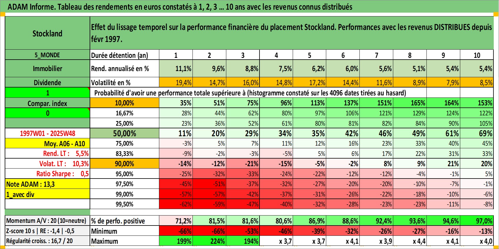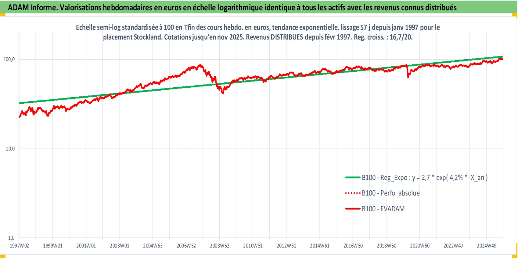 Site dédié aux investisseursPage dédiée sur site financeAnalyse des valorisations hebdomadaires de l'action Stockland. Cet actif est cote en AUD. Les valorisations sont en contrevaleur EURO et couvrent les semaines 1997W01 a 2025W48. Les revenus de cet actif financier sont pris en compte depuis la semaine 1997W07. La note globale ESG de cet actif est estimee a 18.0 (apres rebasage entre 0 et 20).