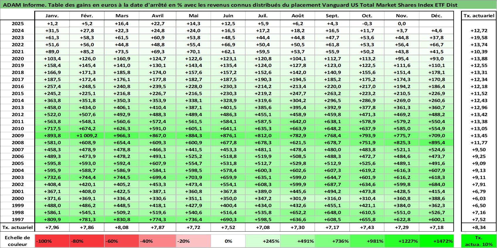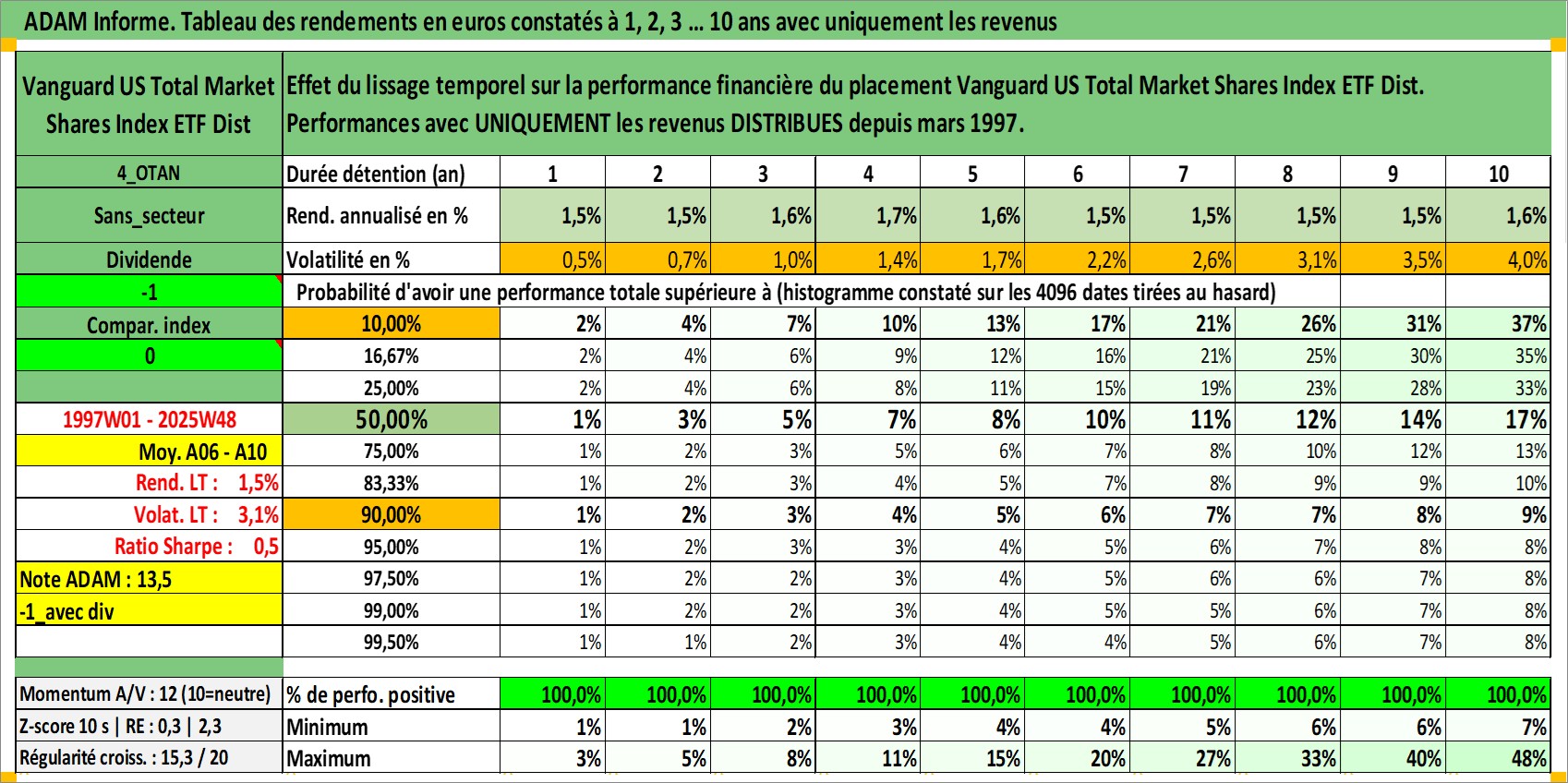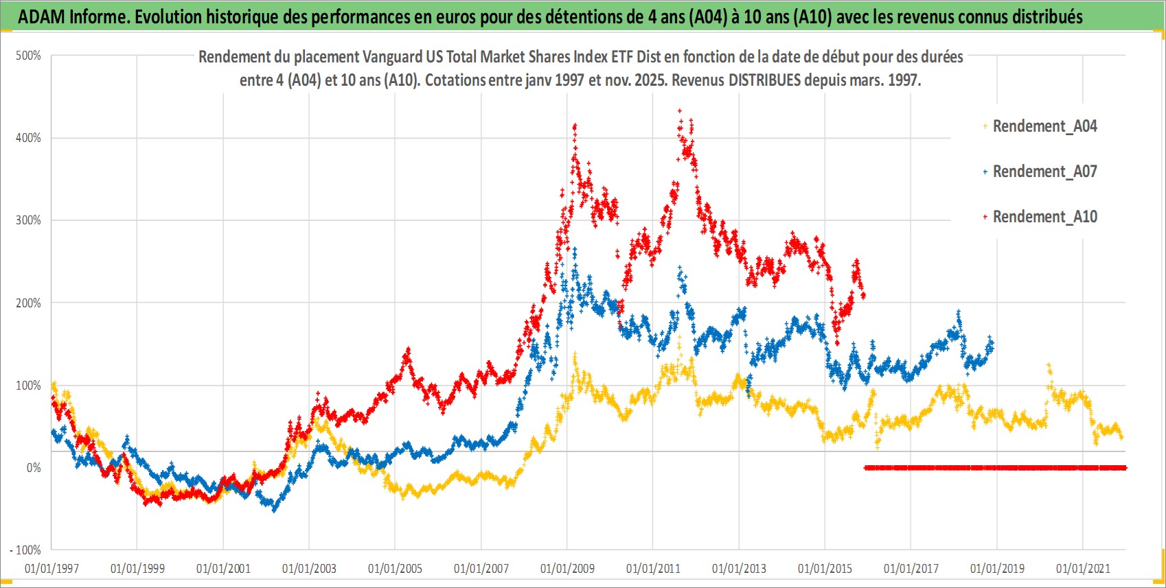Site dédié aux investisseursPage dédiée sur site financeAnalyse des valorisations hebdomadaires du fonds Vanguard US Total Market Shares Index ETF Dist. Cet actif est cote en AUD. Les valorisations sont en contrevaleur EURO et couvrent les semaines 1997W01 a 2025W48. Les revenus de cet actif financier sont pris en compte depuis la semaine 1997W12. La note ESG de cet actif n'est pas connue.