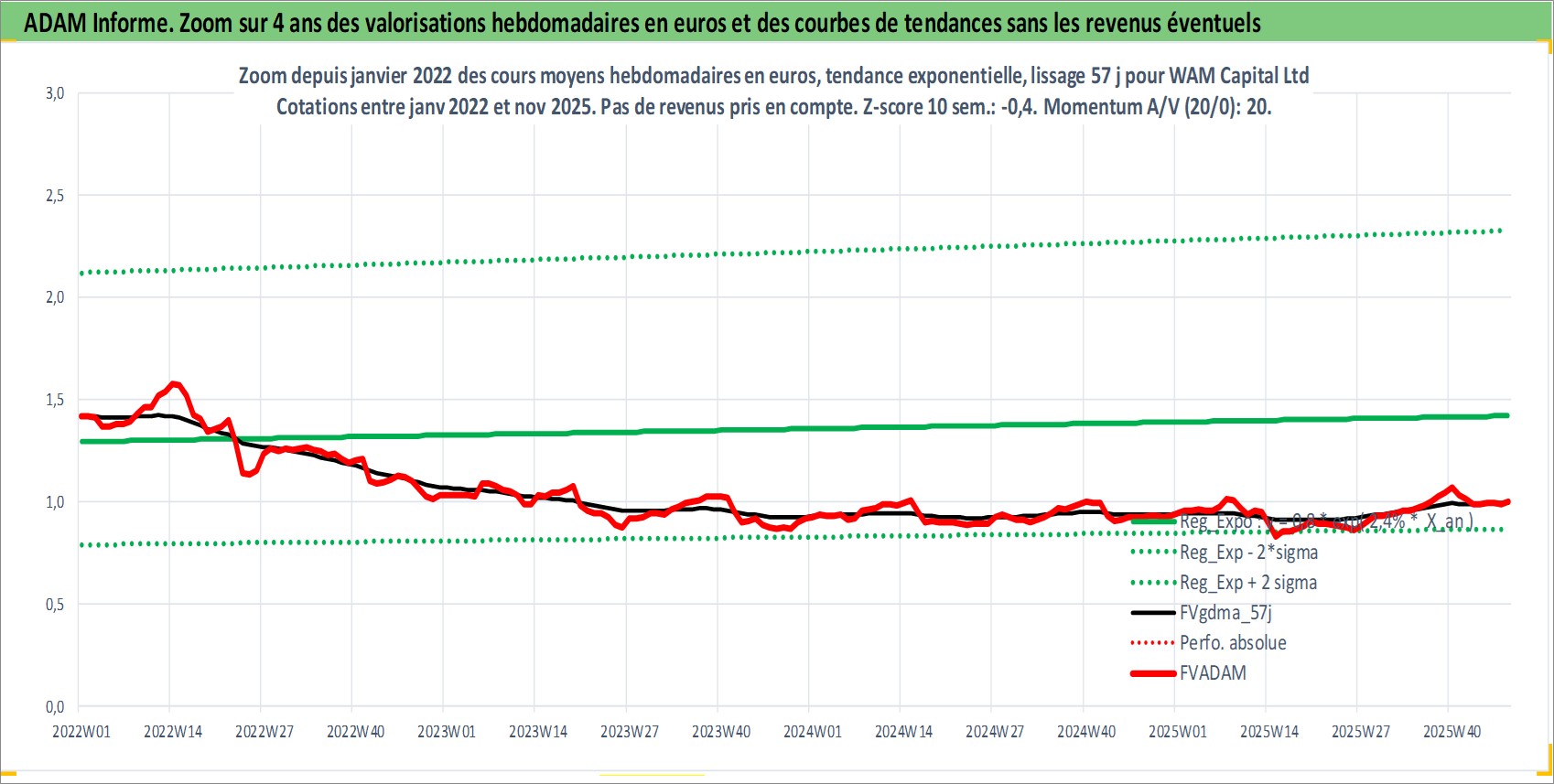 Site dédié aux investisseursPage dédiée sur site financeAnalyse des valorisations hebdomadaires de l'action WAM Capital Ltd. Cet actif est cote en AUD. Les valorisations sont en contrevaleur EURO et couvrent les semaines 1999W32 a 2025W48. Les revenus de cet actif financier sont pris en compte depuis la semaine 2000W11. La note ESG de cet actif n'est pas connue.