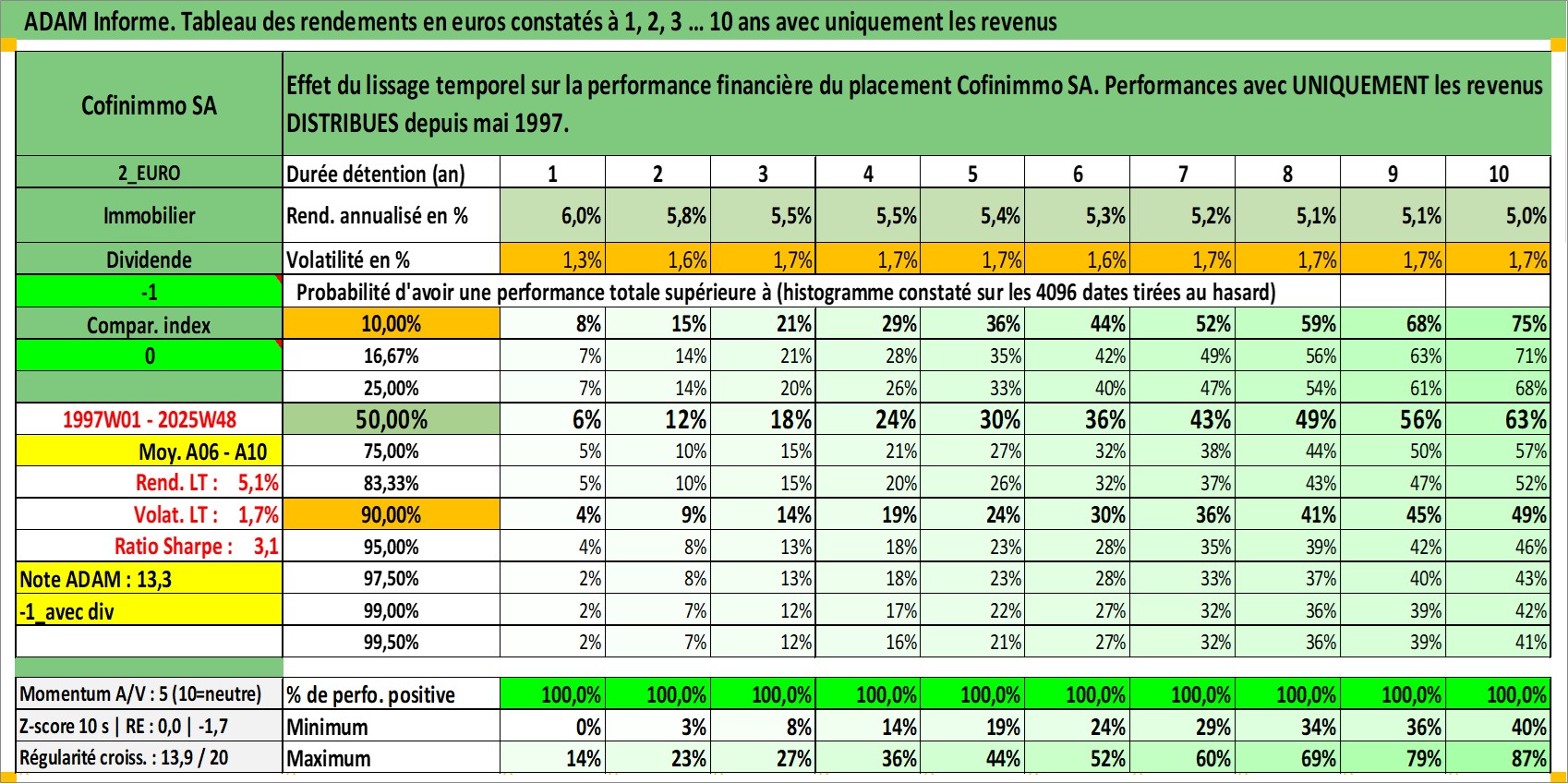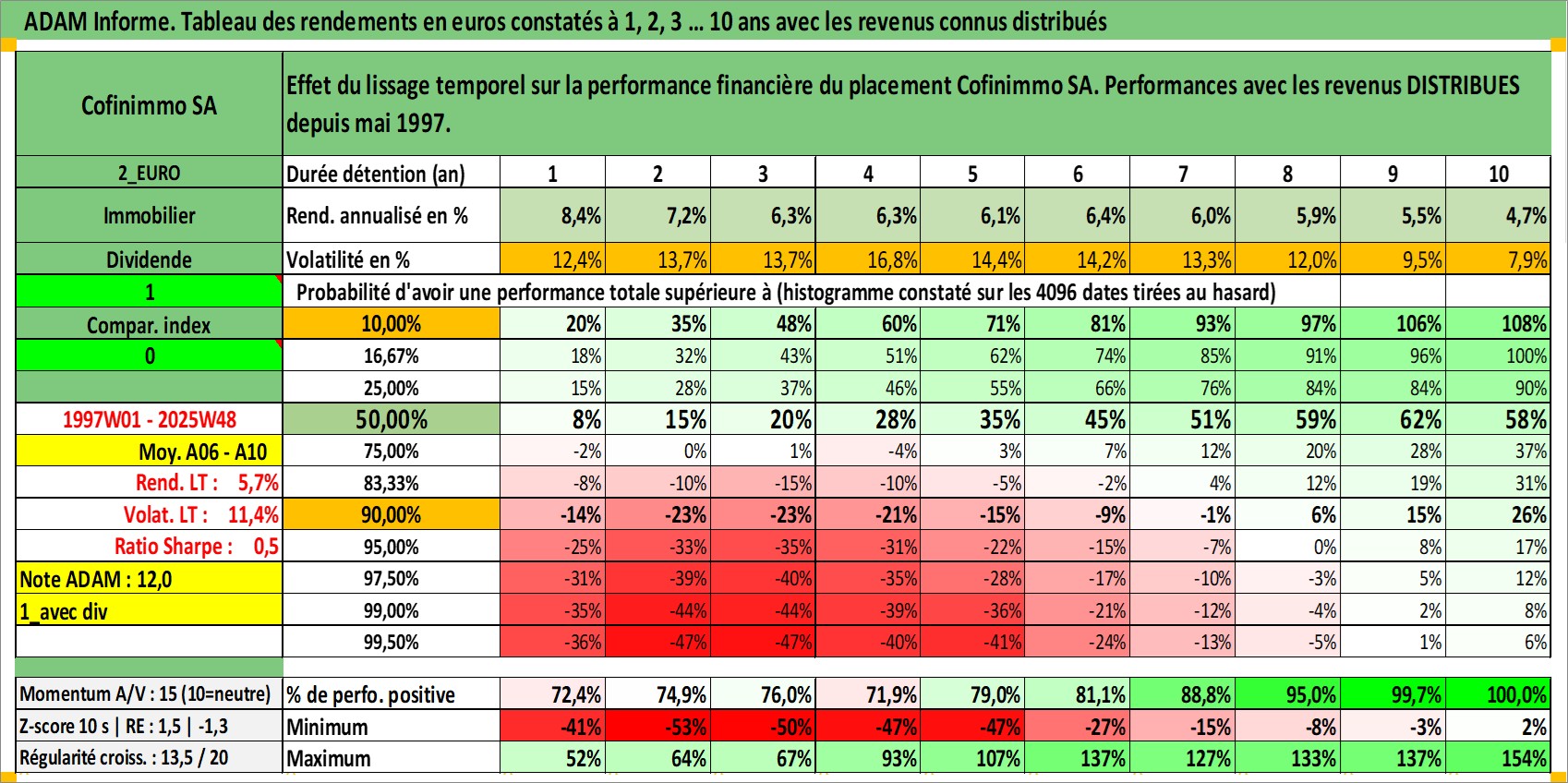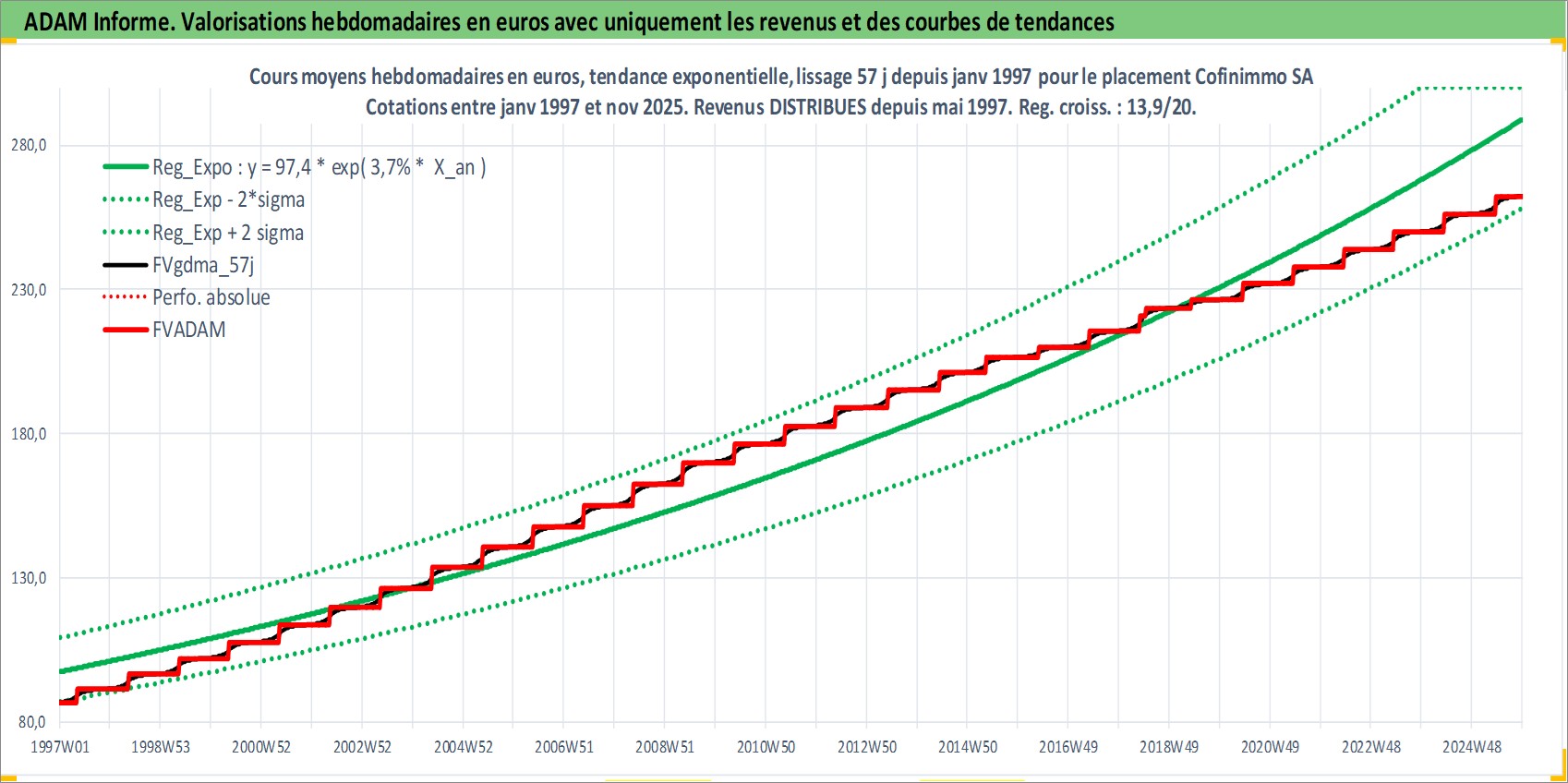 Site dédié aux investisseursPage dédiée sur site financeAnalyse des valorisations hebdomadaires de l'action Cofinimmo SA. Cet actif est cote en EUR. Les valorisations couvrent les semaines 1997W01 a 2025W48. Les revenus de cet actif financier sont pris en compte depuis la semaine 1997W19. La note ESG de cet actif n'est pas connue.