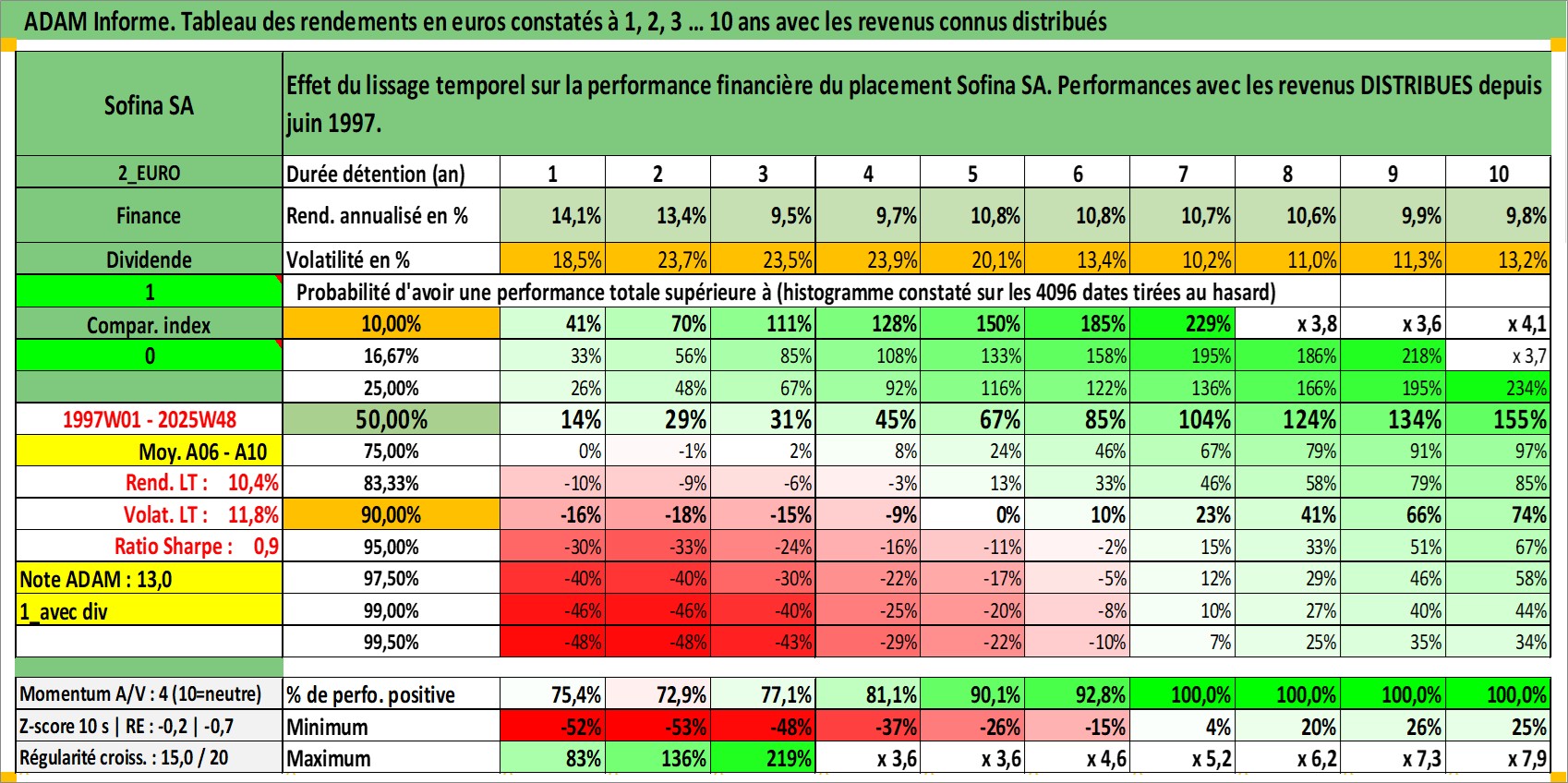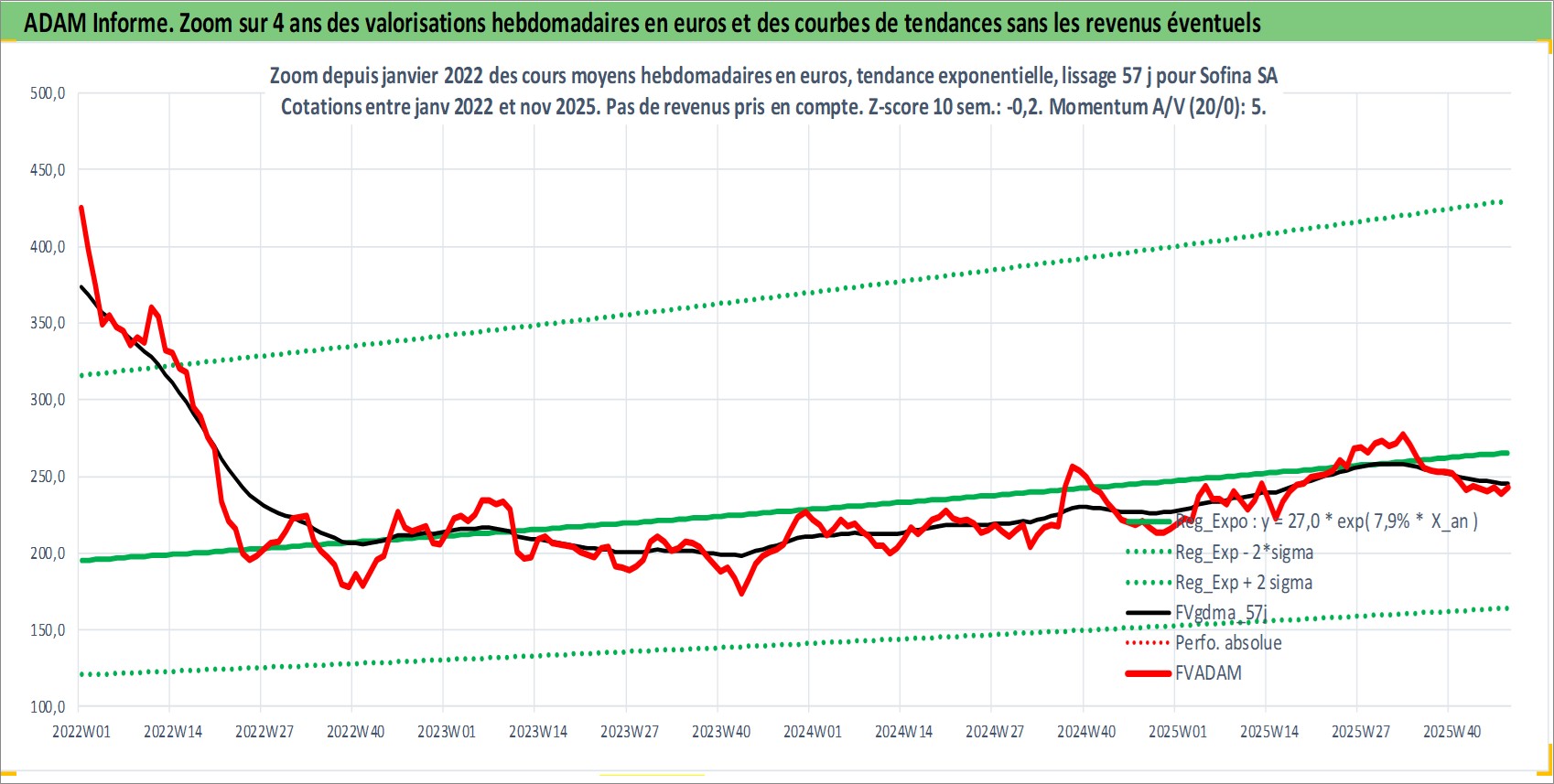 Site dédié aux investisseursPage dédiée sur site financeAnalyse des valorisations hebdomadaires de l'action Sofina SA. Cet actif est cote en EUR. Les valorisations couvrent les semaines 1997W01 a 2025W48. Les revenus de cet actif financier sont pris en compte depuis la semaine 1997W26. La note ESG de cet actif n'est pas connue.