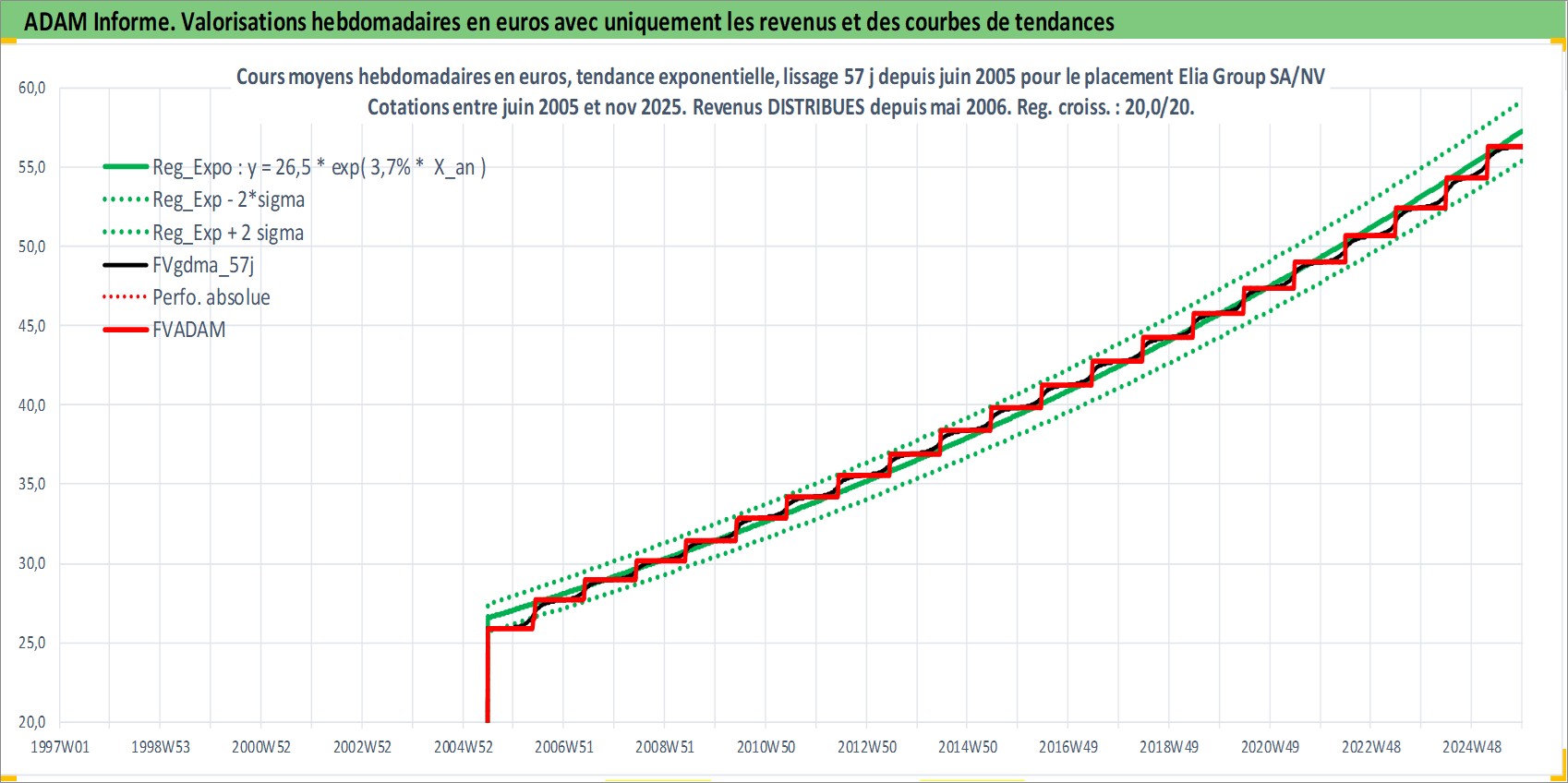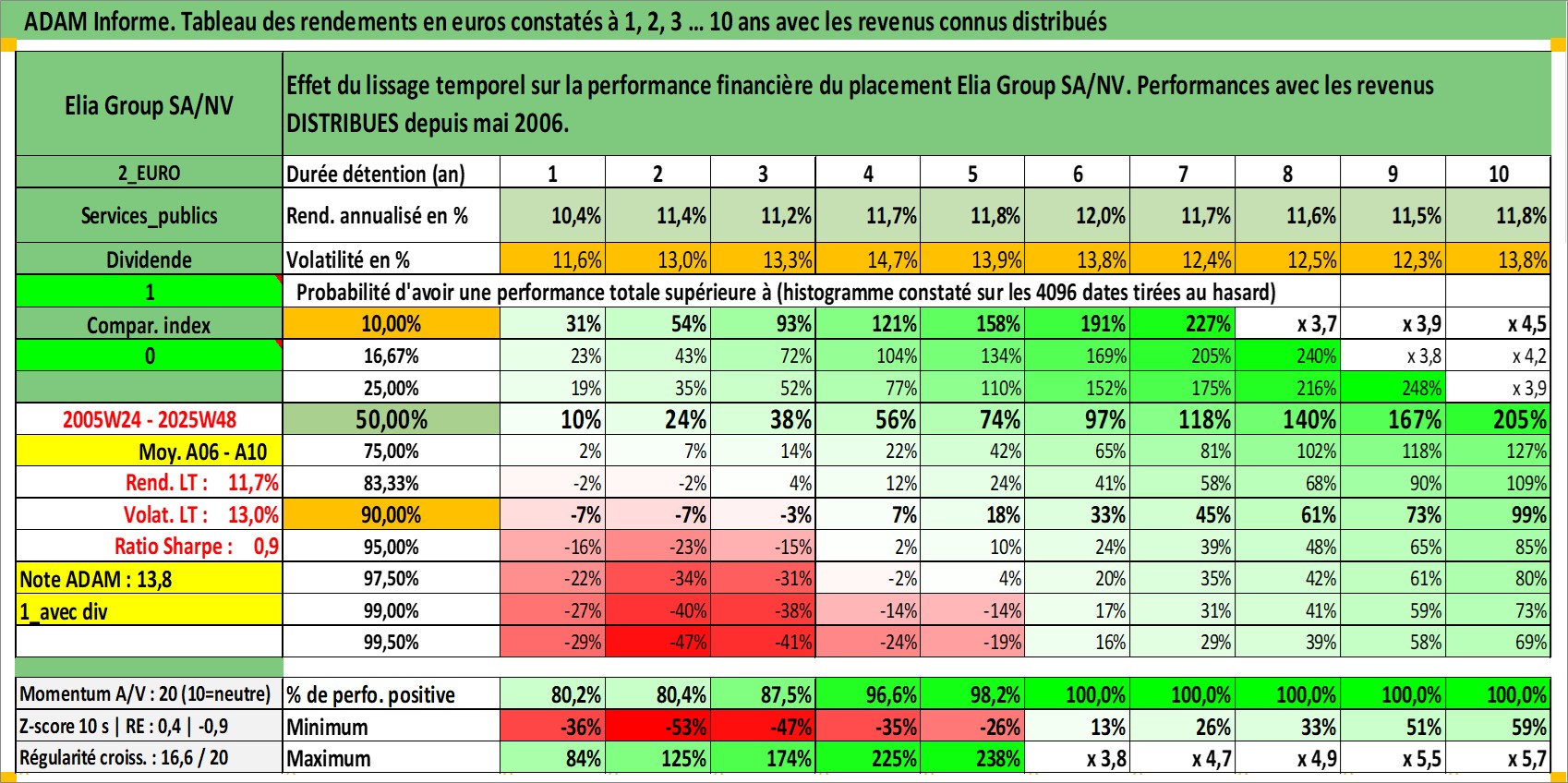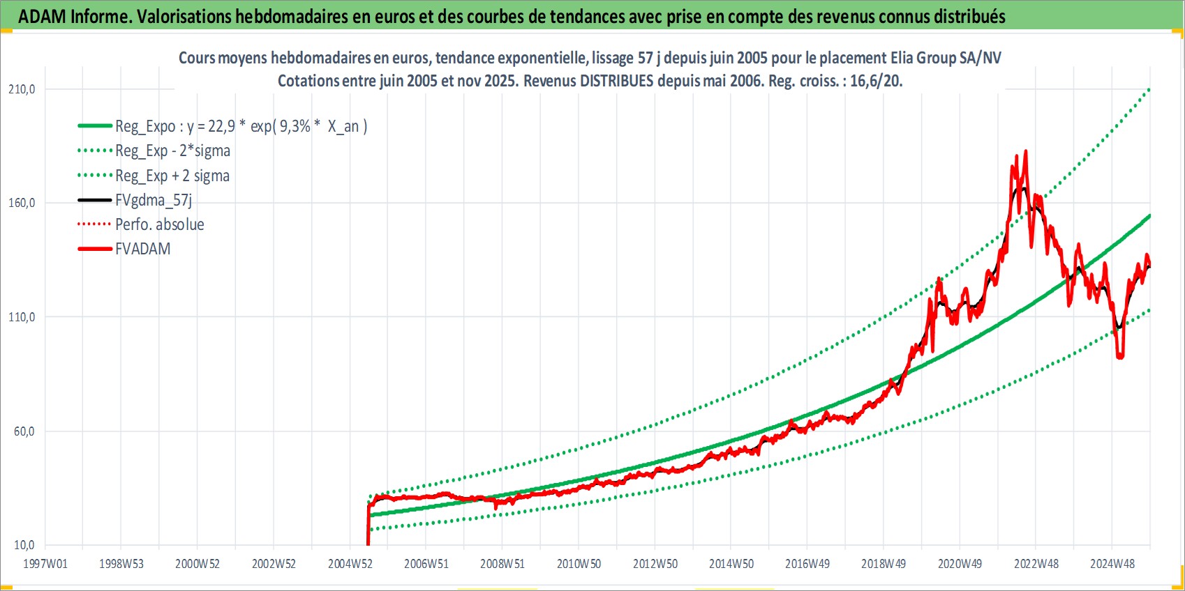 Site dédié aux investisseursPage dédiée sur site financeAnalyse des valorisations hebdomadaires de l'action Elia Group SA/NV. Cet actif est cote en EUR. Les valorisations couvrent les semaines 2005W24 a 2025W48. Les revenus de cet actif financier sont pris en compte depuis la semaine 2006W19. La note ESG de cet actif n'est pas connue.