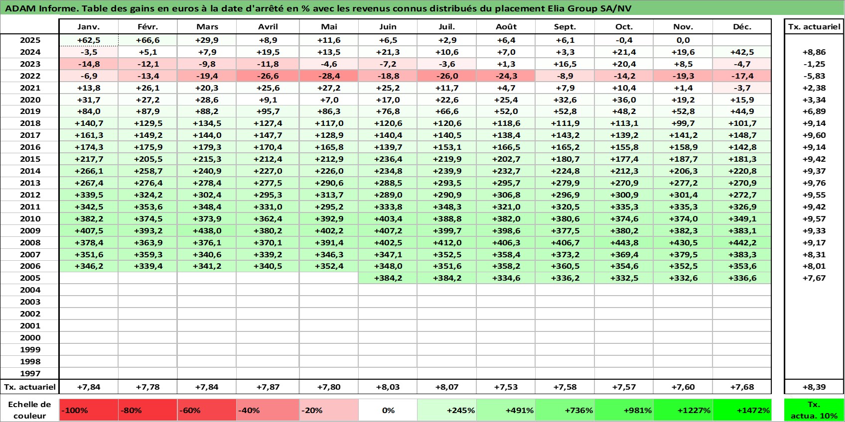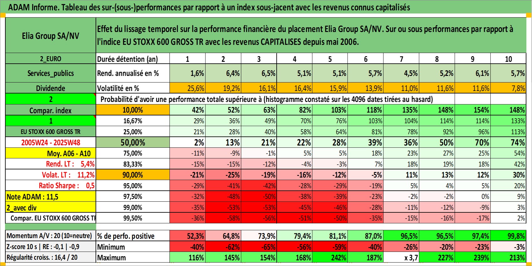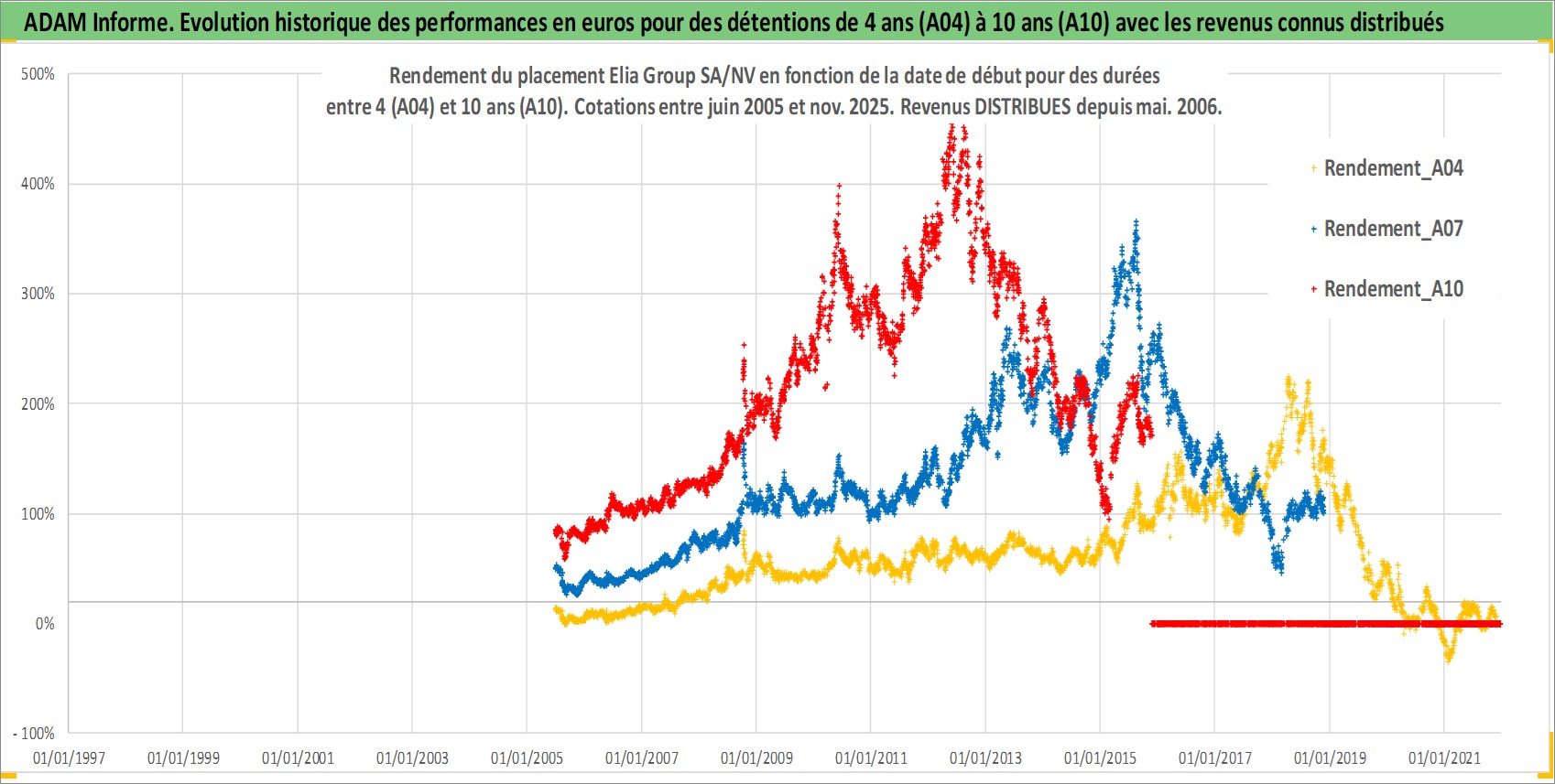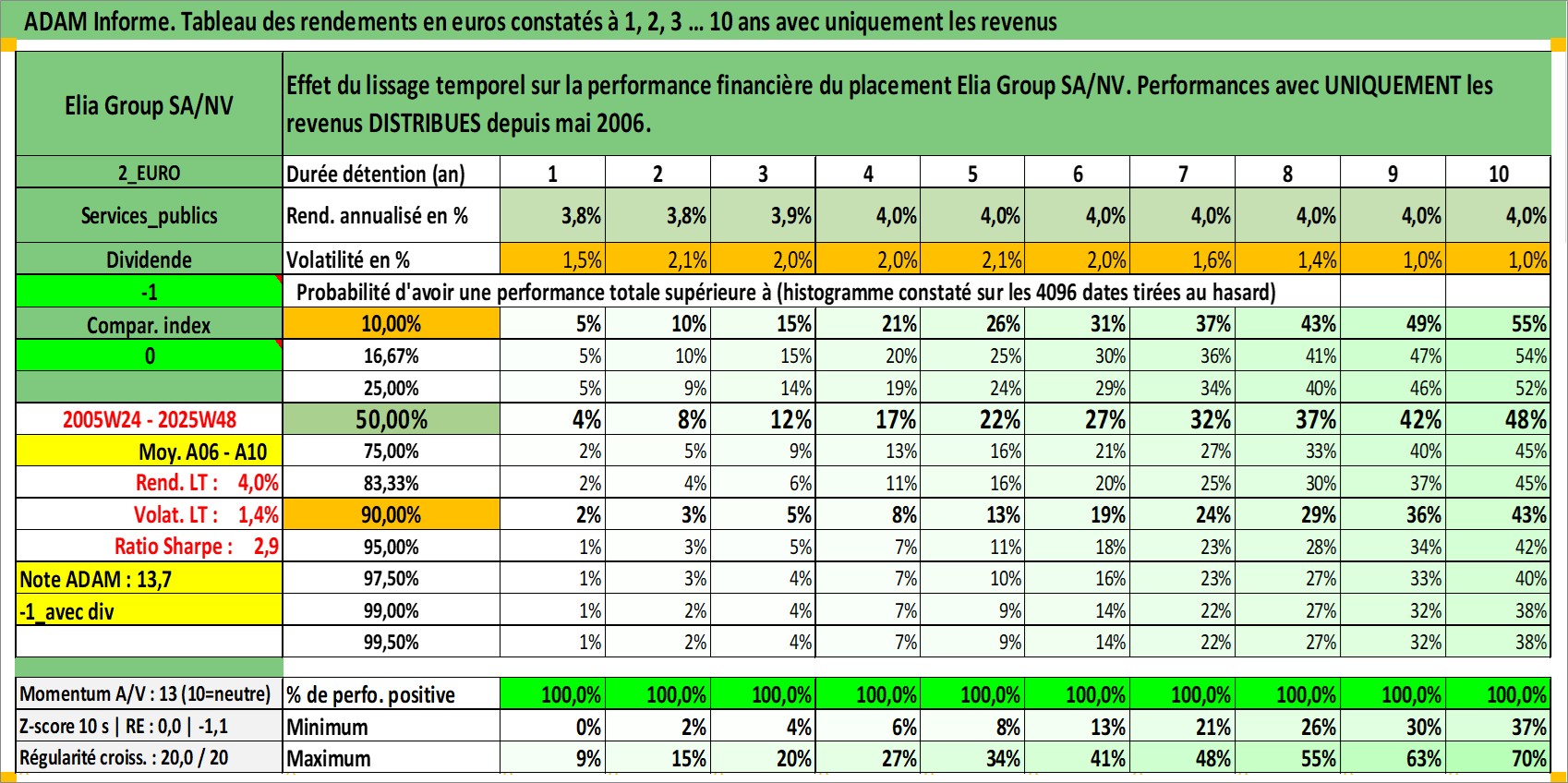 Site dédié aux investisseursPage dédiée sur site financeAnalyse des valorisations hebdomadaires de l'action Elia Group SA/NV. Cet actif est cote en EUR. Les valorisations couvrent les semaines 2005W24 a 2025W48. Les revenus de cet actif financier sont pris en compte depuis la semaine 2006W19. La note ESG de cet actif n'est pas connue.