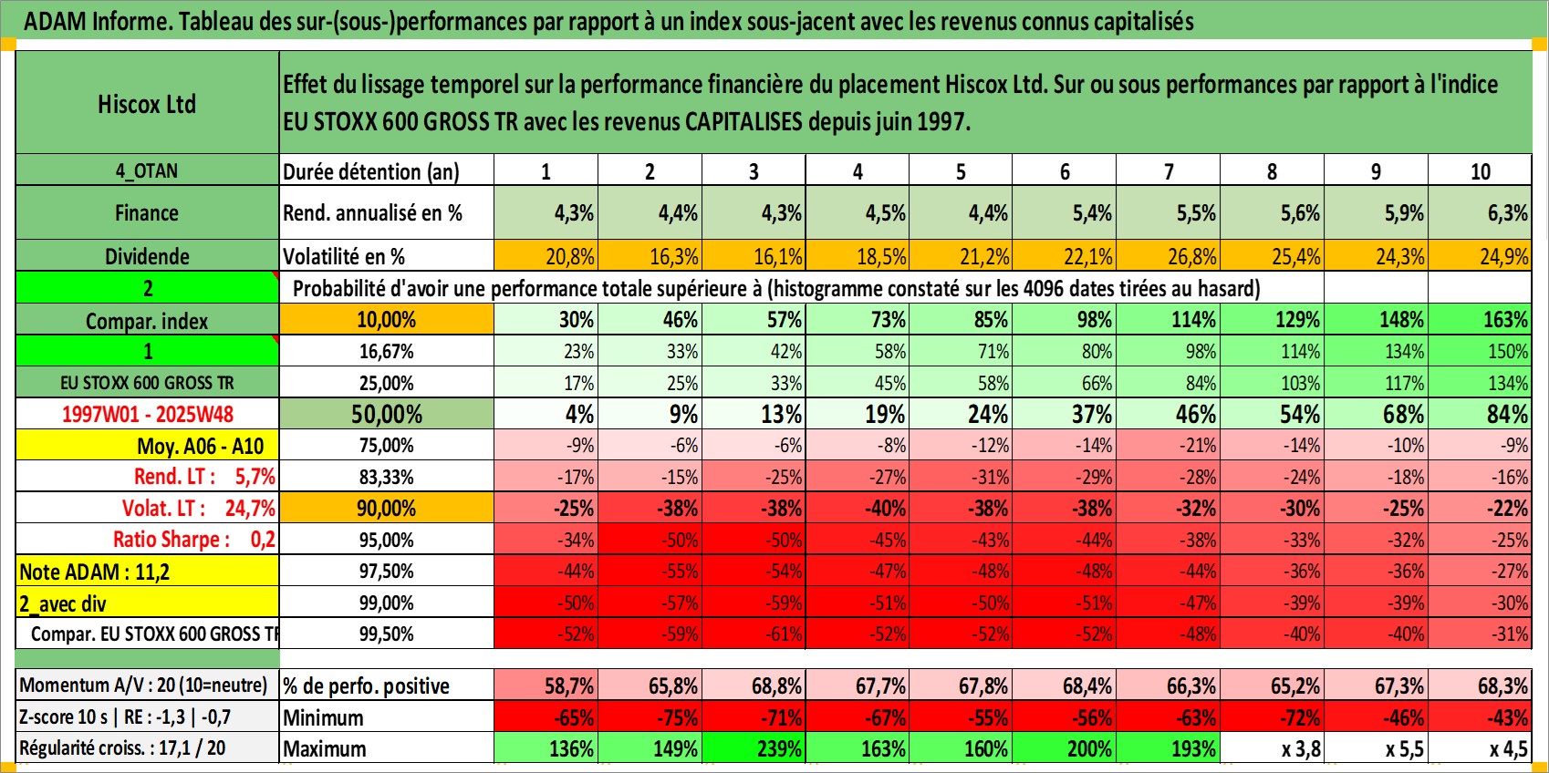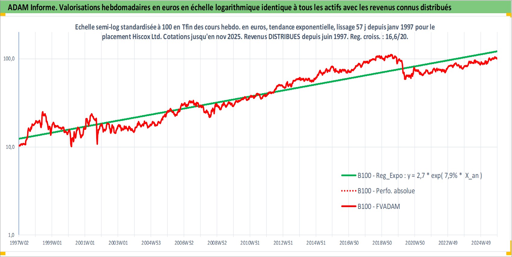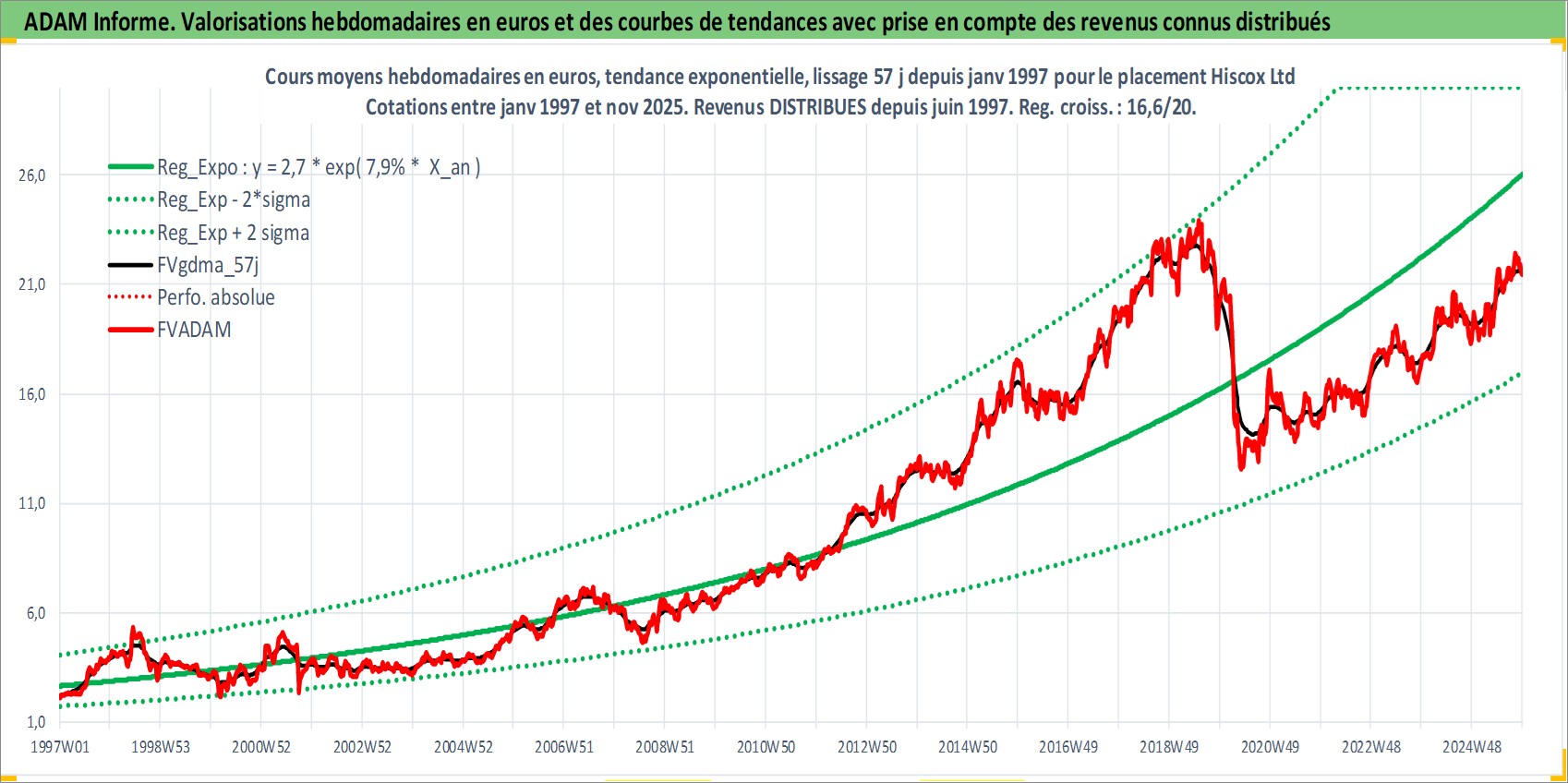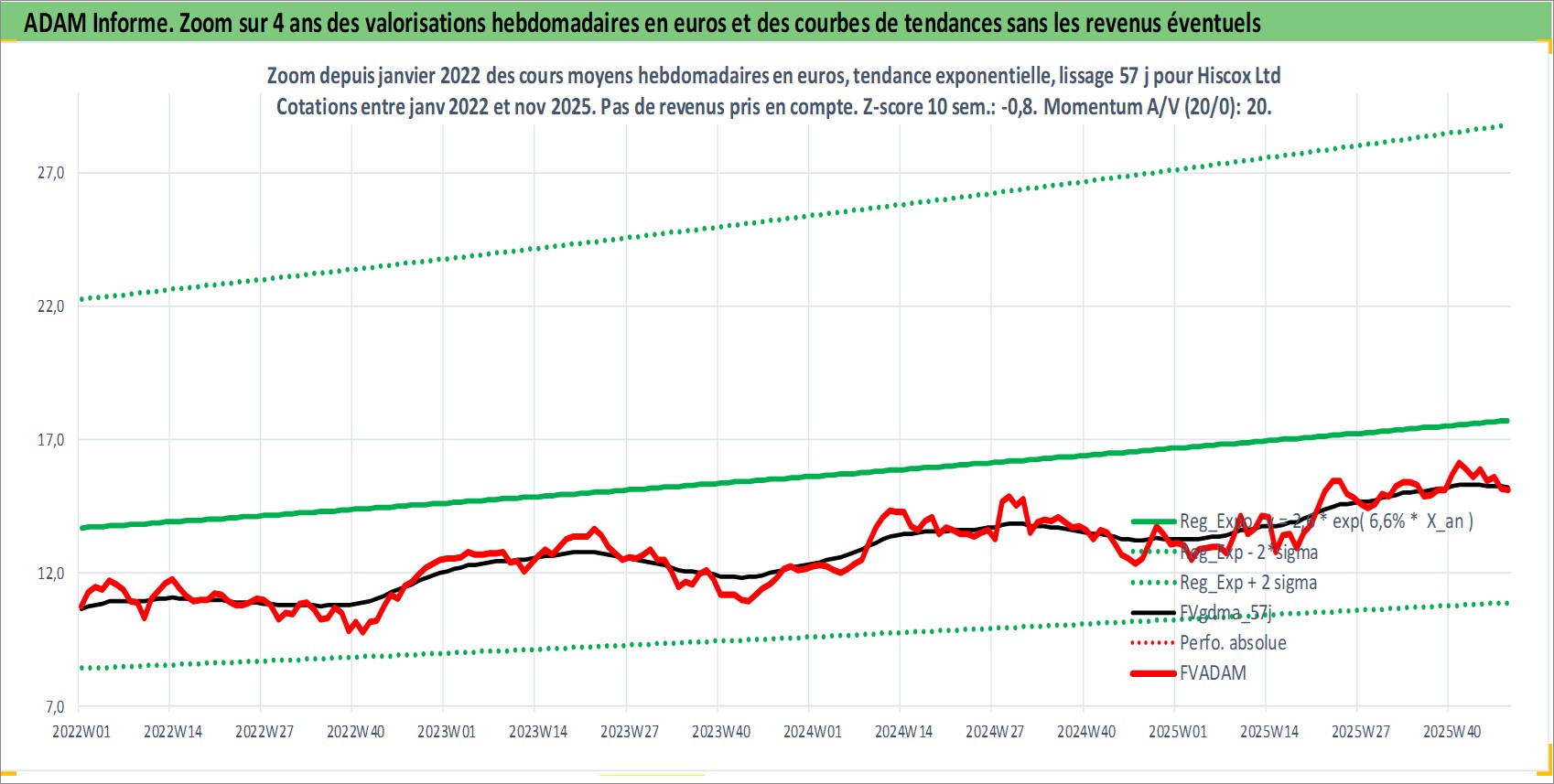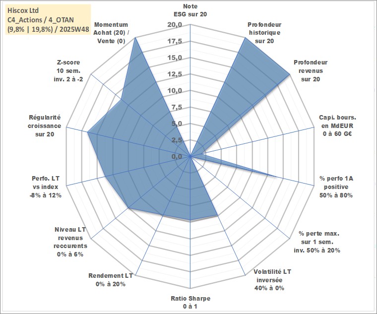 Site dédié aux investisseursPage dédiée sur site financeAnalyse des valorisations hebdomadaires de l'action Hiscox Ltd. Cet actif est cote en GBX. Les valorisations sont en contrevaleur EURO et couvrent les semaines 1997W01 a 2025W48. Les revenus de cet actif financier sont pris en compte depuis la semaine 1997W24. La note ESG de cet actif n'est pas connue.