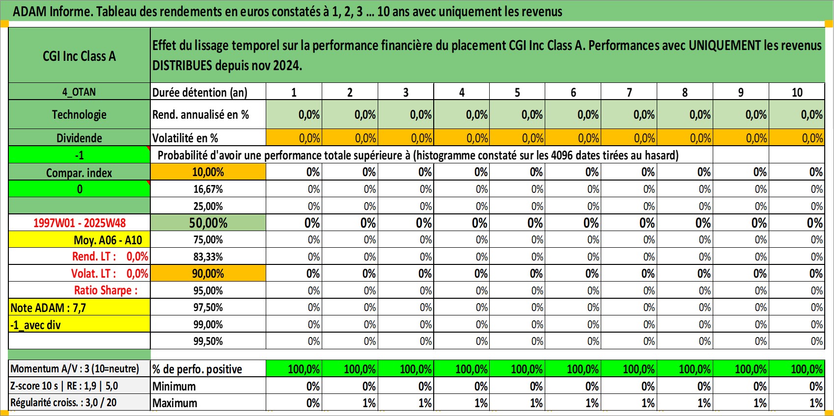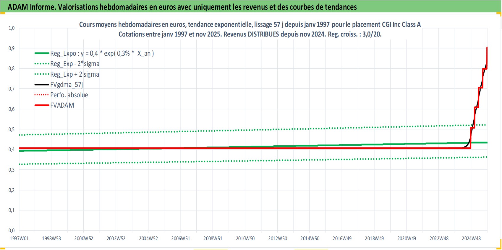 Site dédié aux investisseursPage dédiée sur site financeAnalyse des valorisations hebdomadaires de l'action CGI Inc Class A. Cet actif est cote en CAD. Les valorisations sont en contrevaleur EURO et couvrent les semaines 1997W01 a 2025W48. Les revenus de cet actif financier sont pris en compte depuis la semaine 2024W47. La note globale ESG de cet actif est estimee a 13.0 (apres rebasage entre 0 et 20).