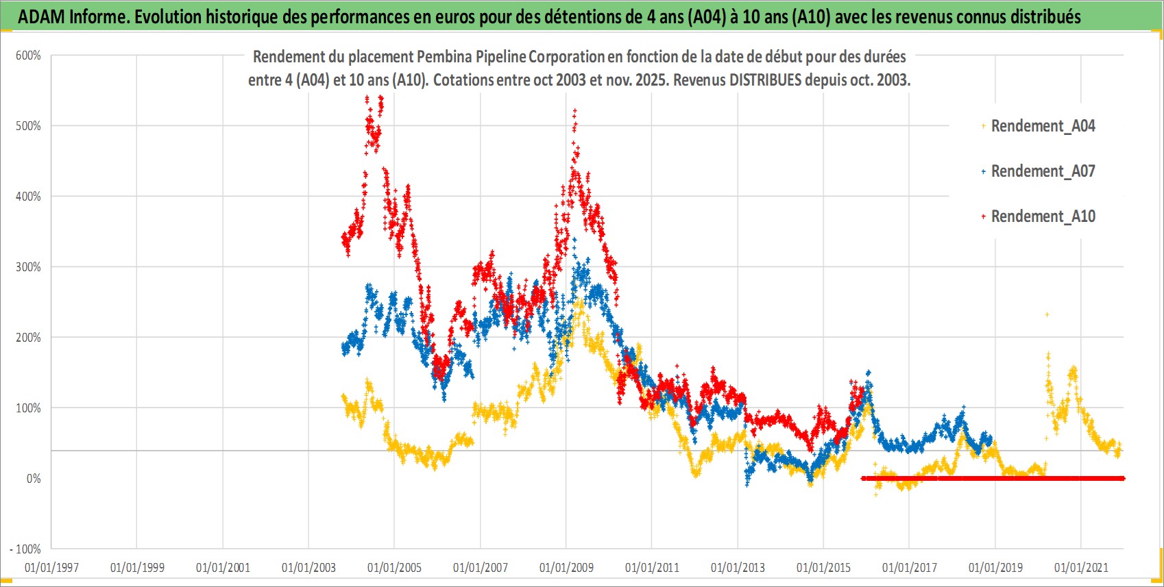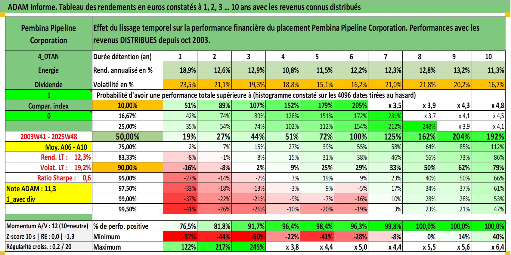Site dédié aux investisseursPage dédiée sur site financeAnalyse des valorisations hebdomadaires de l'action Pembina Pipeline Corporation. Cet actif est cote en CAD. Les valorisations sont en contrevaleur EURO et couvrent les semaines 2003W41 a 2025W48. Les revenus de cet actif financier sont pris en compte depuis la semaine 2003W44. La note globale ESG de cet actif est estimee a 10.0 (apres rebasage entre 0 et 20).