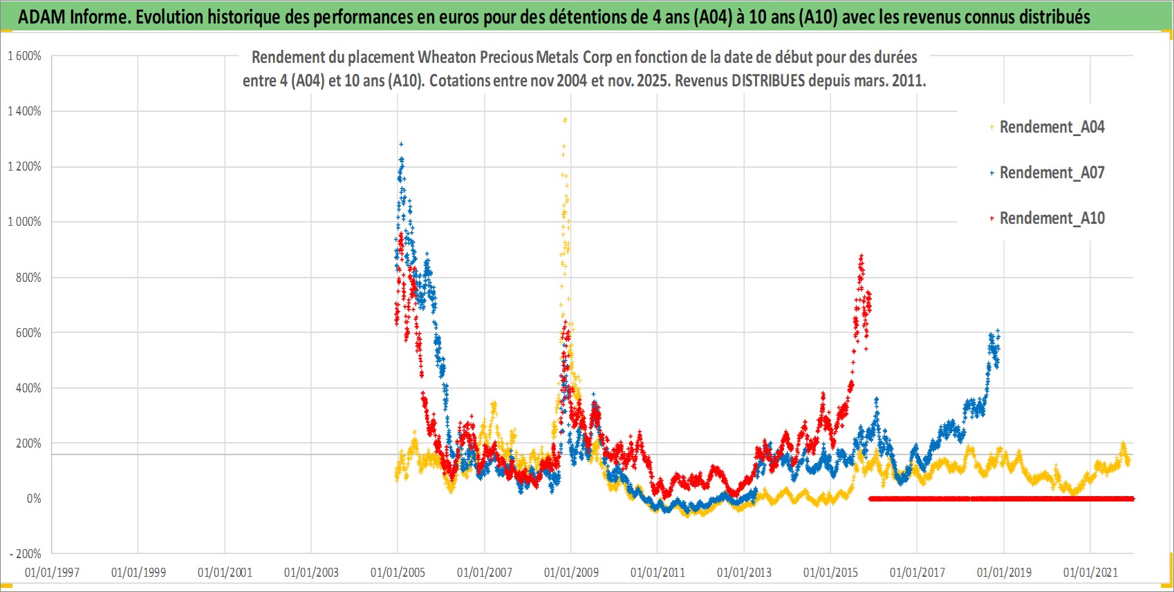 Site dédié aux investisseursPage dédiée sur site financeAnalyse des valorisations hebdomadaires de l'action Wheaton Precious Metals Corp. Cet actif est cote en CAD. Les valorisations sont en contrevaleur EURO et couvrent les semaines 2004W49 a 2025W48. Les revenus de cet actif financier sont pris en compte depuis la semaine 2011W11. La note globale ESG de cet actif est estimee a 19.0 (apres rebasage entre 0 et 20).