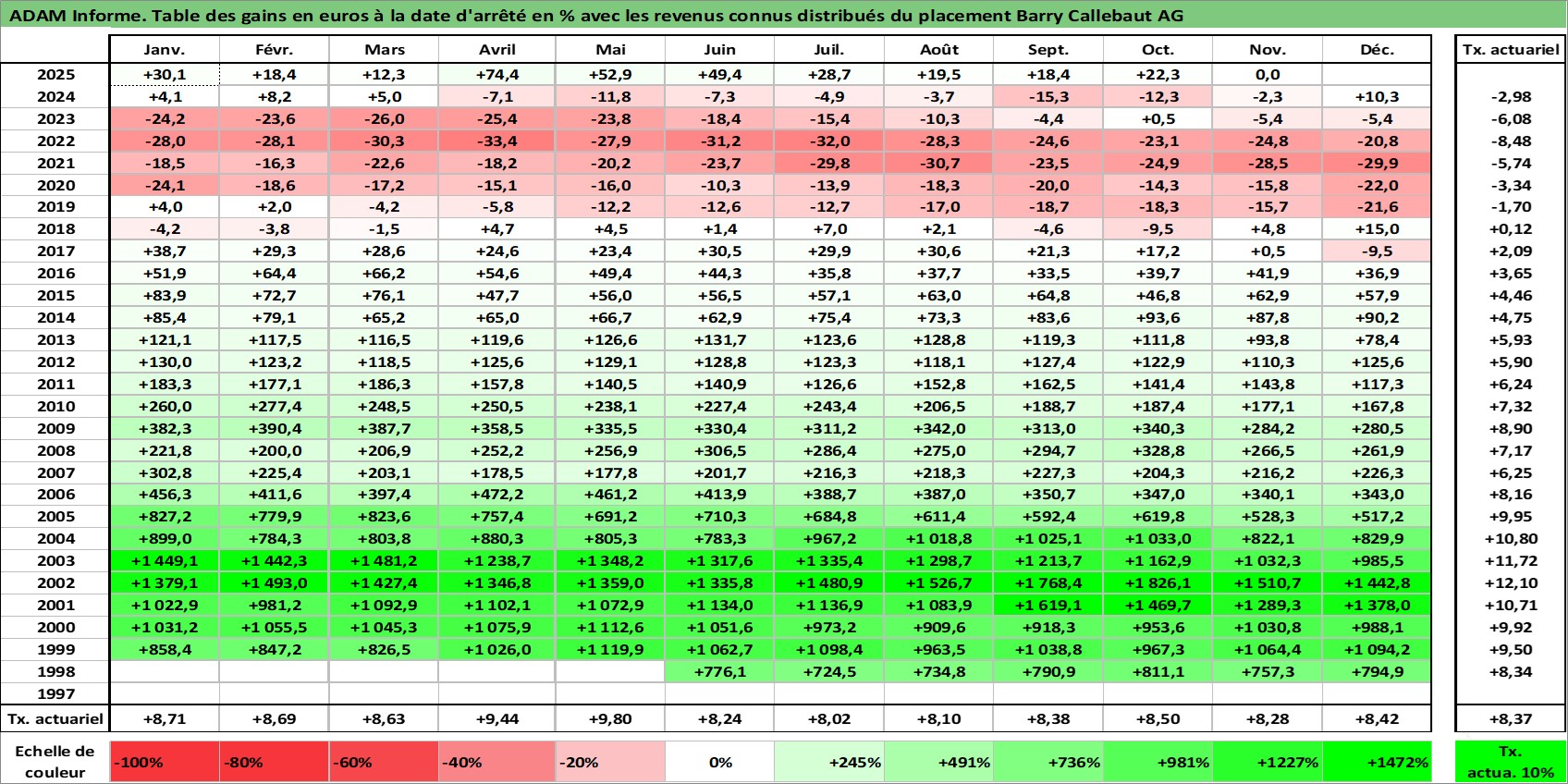 Dernière perfo 1 an en %