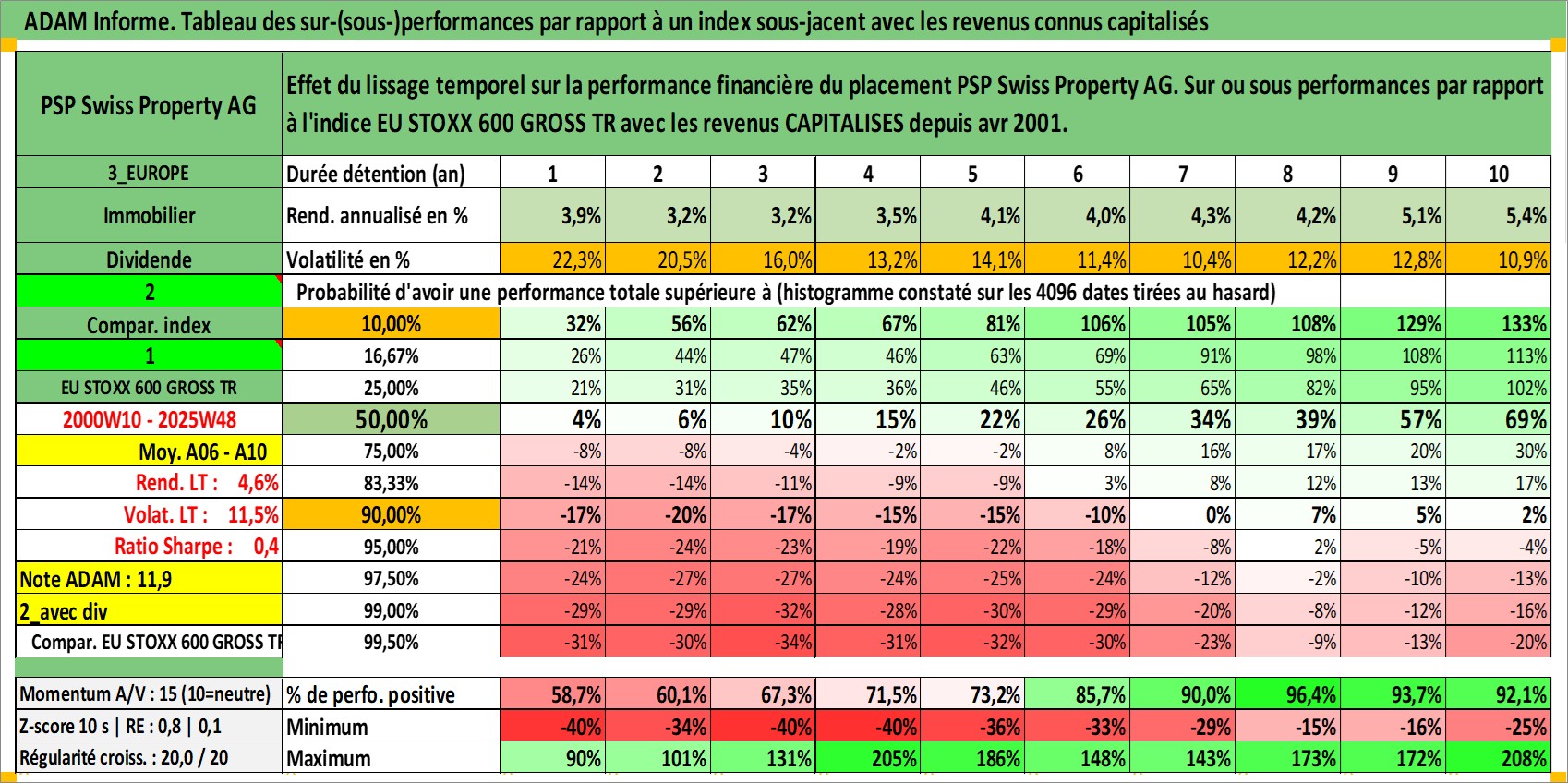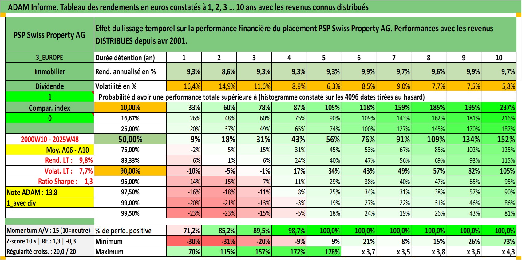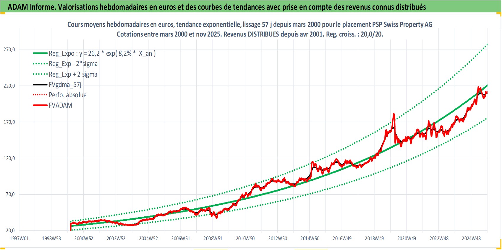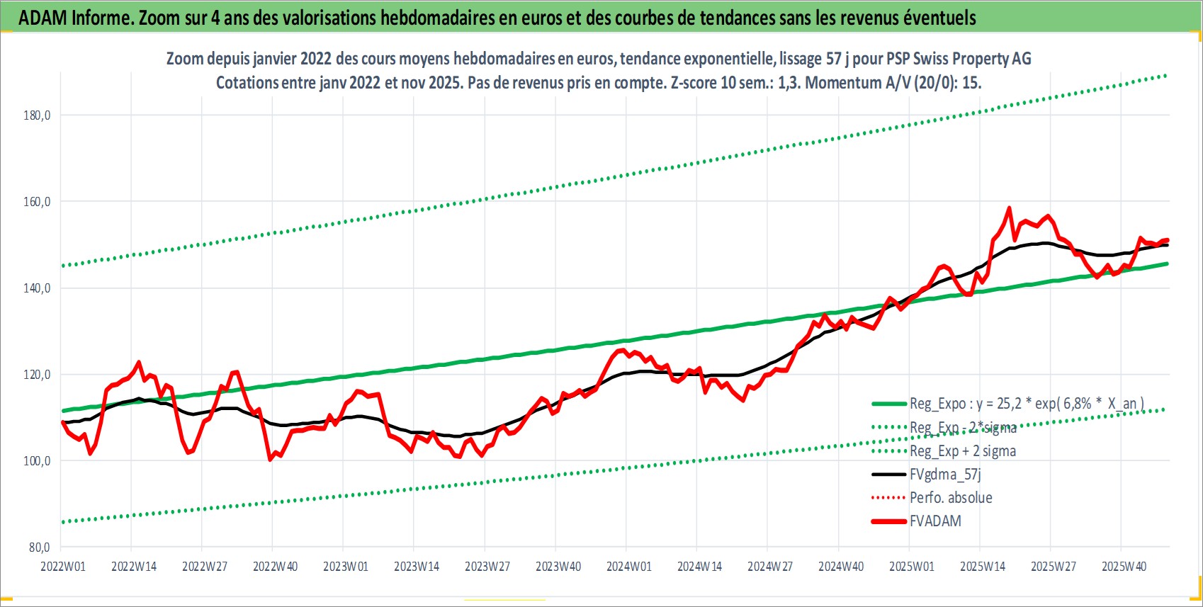 Site dédié aux investisseursPage dédiée sur site financeAnalyse des valorisations hebdomadaires de l'action PSP Swiss Property AG. Cet actif est cote en CHF. Les valorisations sont en contrevaleur EURO et couvrent les semaines 2000W10 a 2025W48. Les revenus de cet actif financier sont pris en compte depuis la semaine 2001W16. La note ESG de cet actif n'est pas connue.
