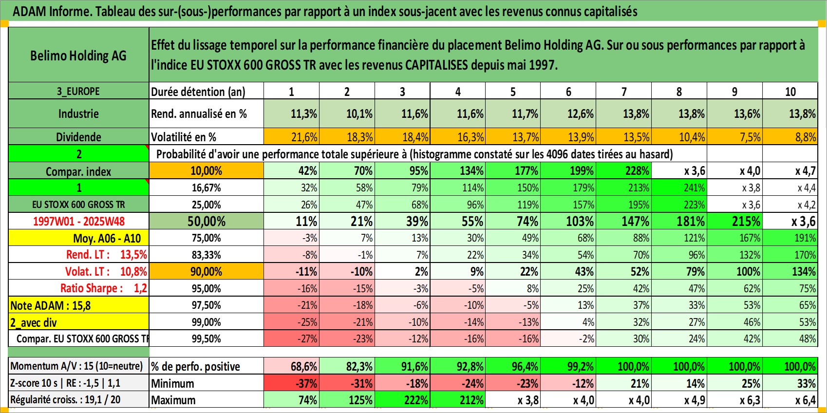Site dédié aux investisseursPage dédiée sur site financeAnalyse des valorisations hebdomadaires de l'action Belimo Holding AG. Cet actif est cote en CHF. Les valorisations sont en contrevaleur EURO et couvrent les semaines 1997W01 a 2025W48. Les revenus de cet actif financier sont pris en compte depuis la semaine 1997W18. La note ESG de cet actif n'est pas connue.