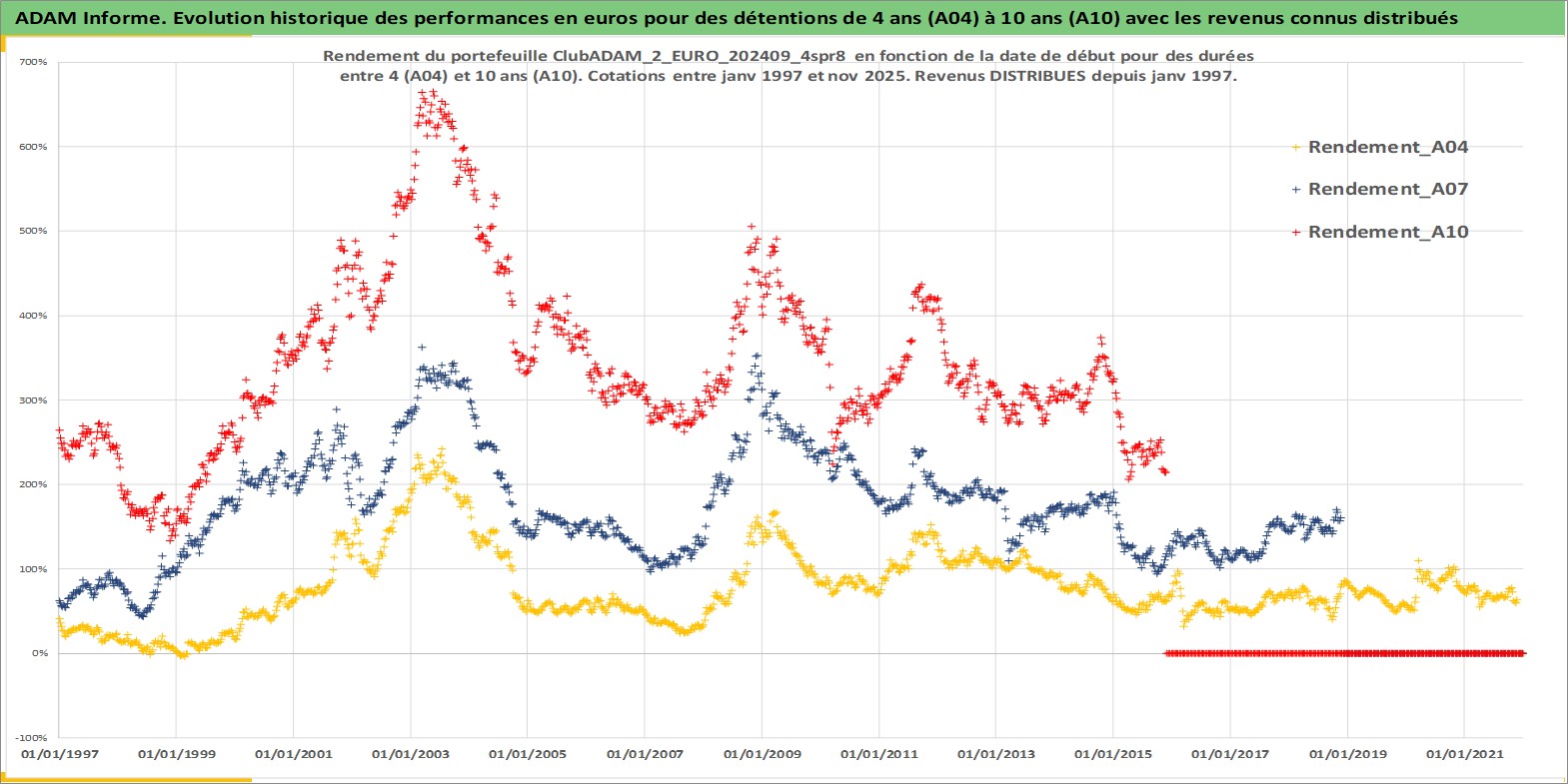 Site dédié aux investisseursPage dédiée sur site financeAnalyse des valorisations hebdomadaires du portefeuille ClubADAM_2_EURO_202409_4spr8_7actifs avec un profil P6_PurActions. Ce portefeuille est cote en EUR. Les valorisations couvrent les semaines 1997W01 a 2025W48. Les revenus de cet actif financier sont pris en compte depuis la semaine 1997W01. La note globale ESG de cet actif est estimee a 11.7 (apres rebasage entre 0 et 20).