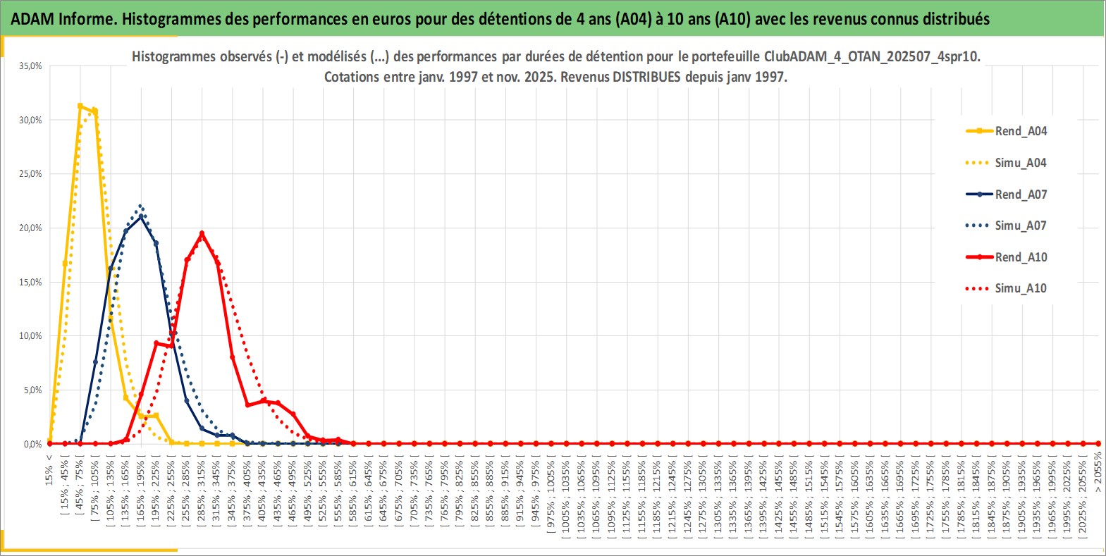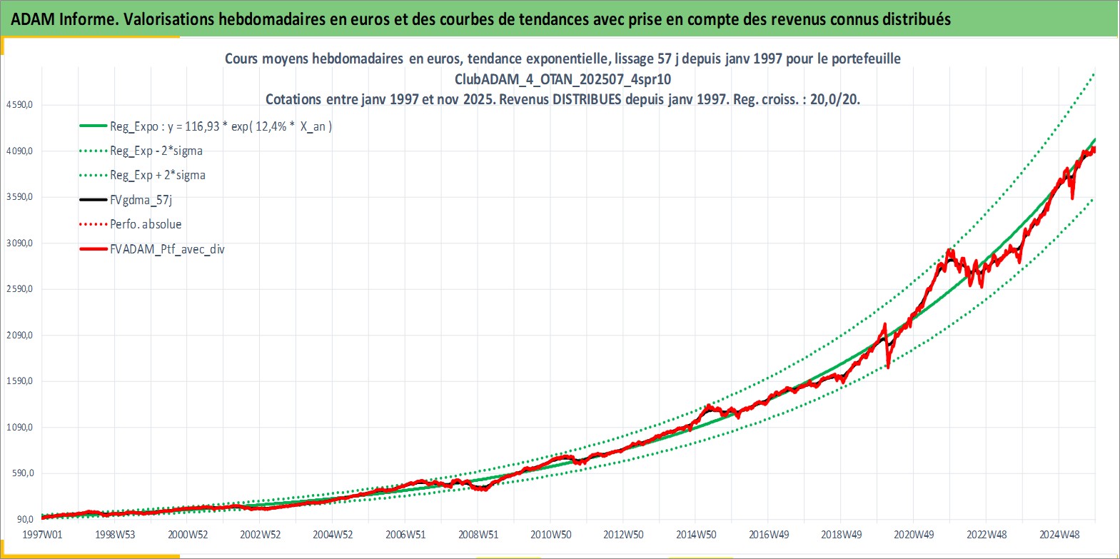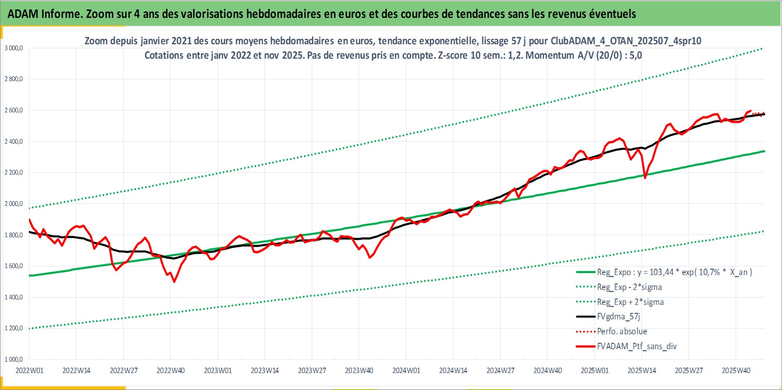 Site dédié aux investisseursPage dédiée sur site financeAnalyse des valorisations hebdomadaires du portefeuille ClubADAM_4_OTAN_202507_4spr10_21actifs avec un profil P6_PurActions. Ce portefeuille est cote en EUR. Les valorisations couvrent les semaines 1997W01 a 2025W48. Les revenus de cet actif financier sont pris en compte depuis la semaine 1997W01. La note globale ESG de cet actif est estimee a 11.3 (apres rebasage entre 0 et 20).