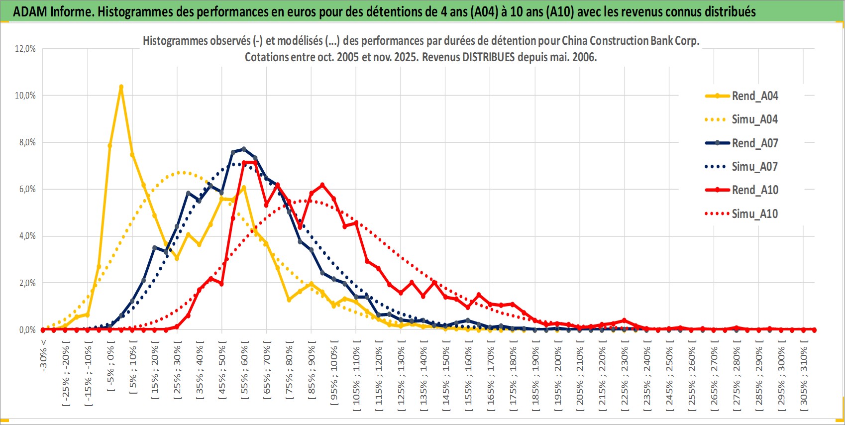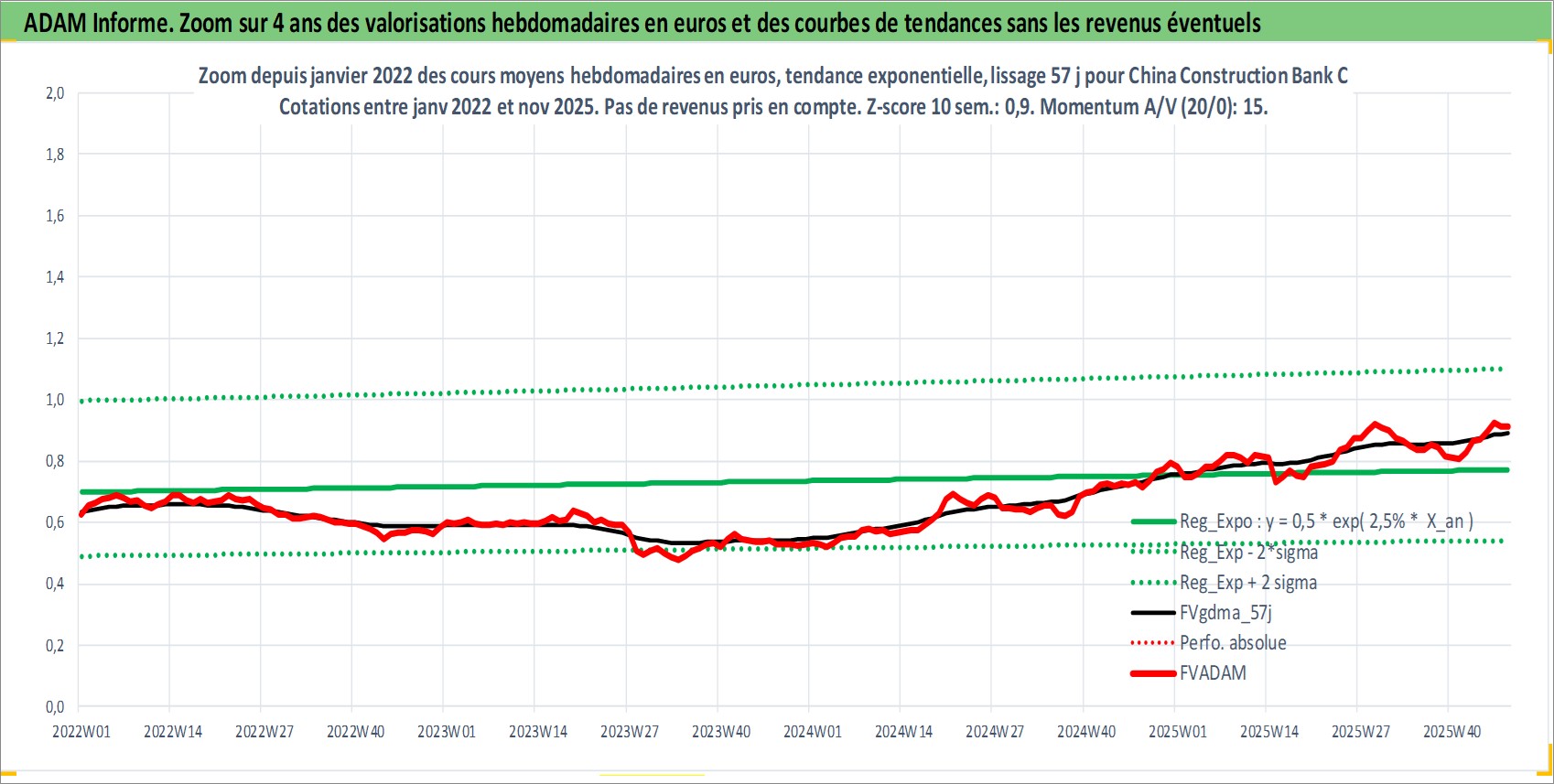 Site dédié aux investisseursPage dédiée sur site financeAnalyse des valorisations hebdomadaires de l'action China Construction Bank Corp. Cet actif est cote en HKD. Les valorisations sont en contrevaleur EURO et couvrent les semaines 2005W43 a 2025W48. Les revenus de cet actif financier sont pris en compte depuis la semaine 2006W19. La note globale ESG de cet actif est estimee a 5.0 (apres rebasage entre 0 et 20).