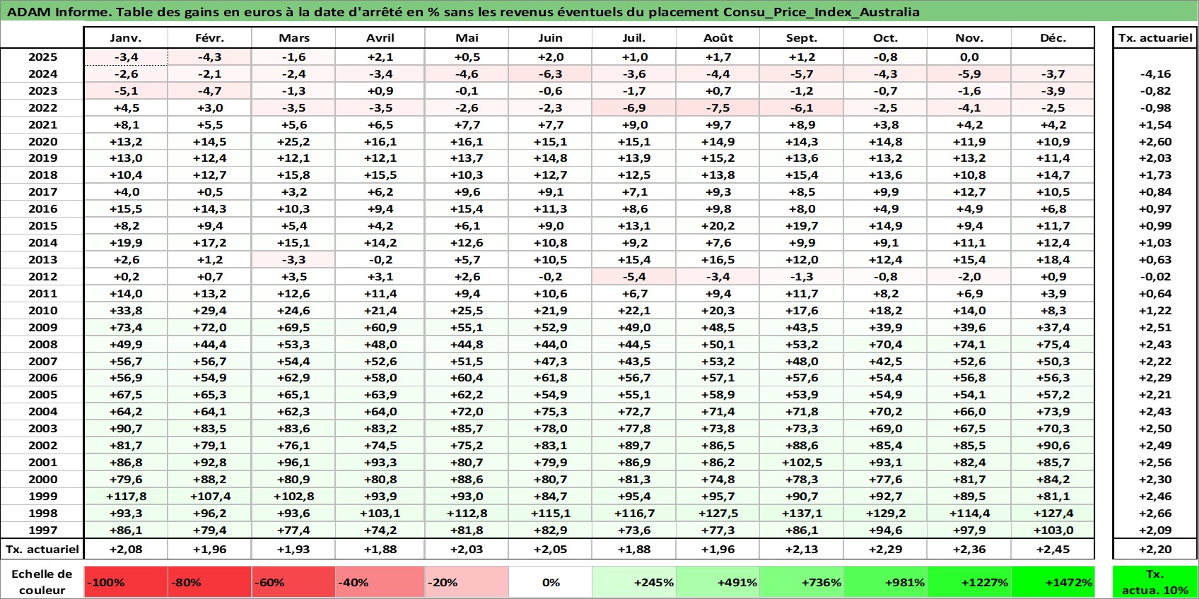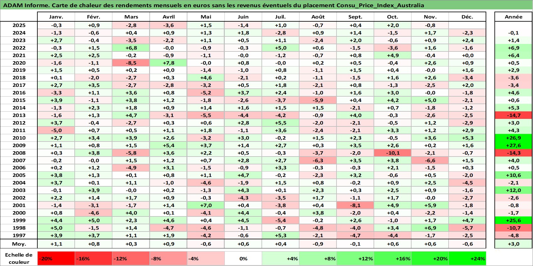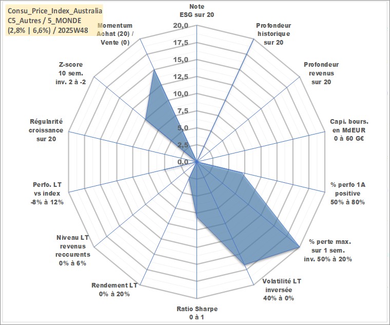 Site dédié aux investisseursPage dédiée sur site financeAnalyse des valorisations hebdomadaires de l'action Consu_Price_Index_Australia. Cet actif est cote en AUD. Les valorisations sont en contrevaleur EURO et couvrent les semaines 1997W01 a 2025W48. Les revenus de cet actif financier ne sont pas connus car non existants ou non disponibles sur le site Yahoo Finance. La note ESG de cet actif n'est pas connue.