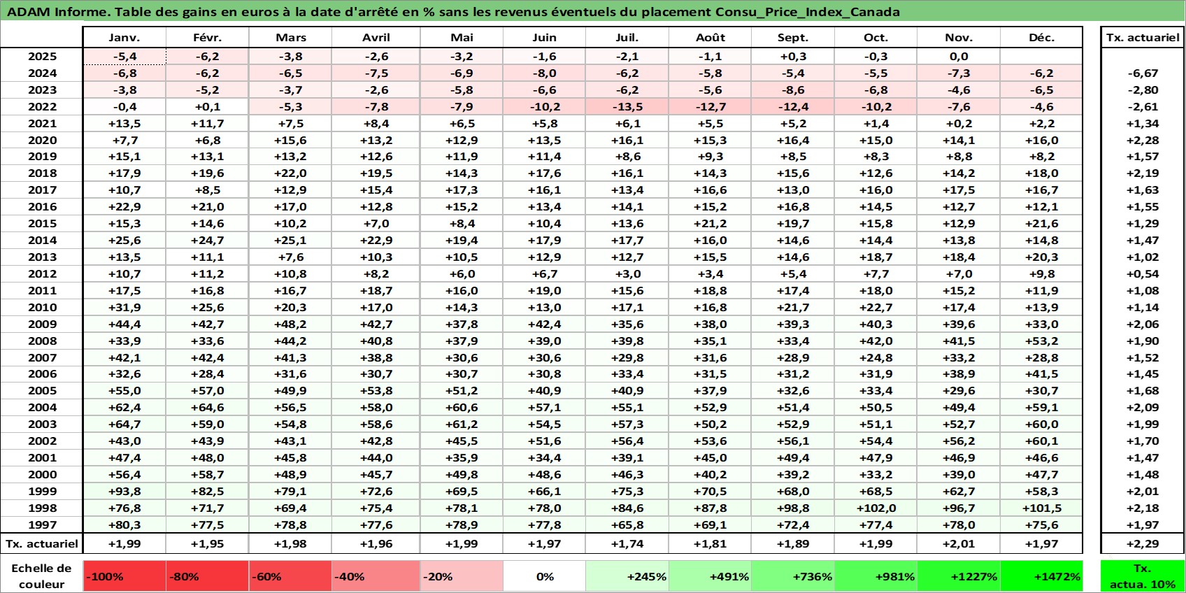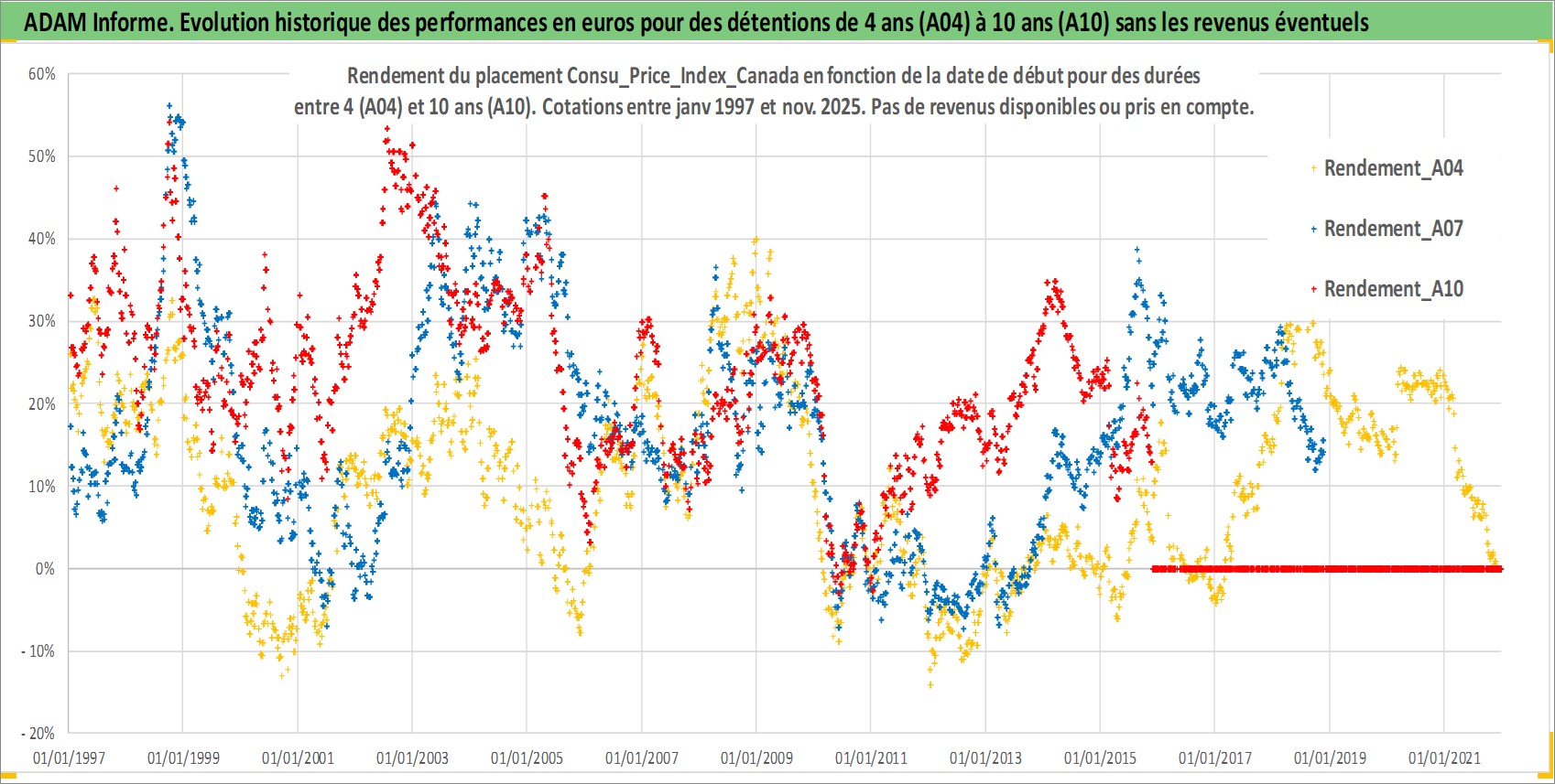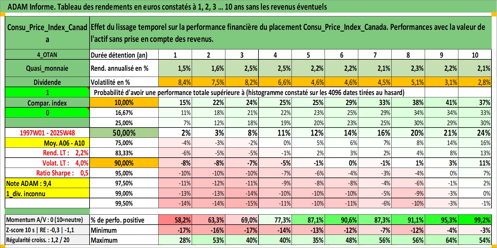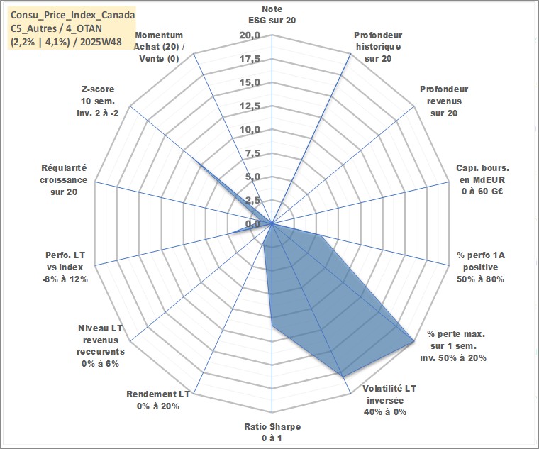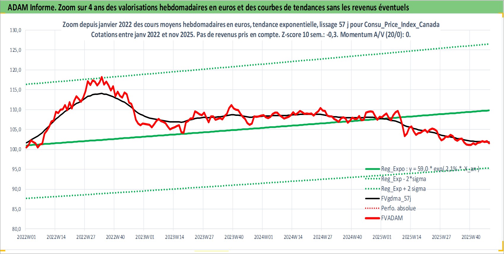 Site dédié aux investisseursPage dédiée sur site financeAnalyse des valorisations hebdomadaires de l'action Consu_Price_Index_Canada. Cet actif est cote en CAD. Les valorisations sont en contrevaleur EURO et couvrent les semaines 1997W01 a 2025W48. Les revenus de cet actif financier ne sont pas connus car non existants ou non disponibles sur le site Yahoo Finance. La note ESG de cet actif n'est pas connue.