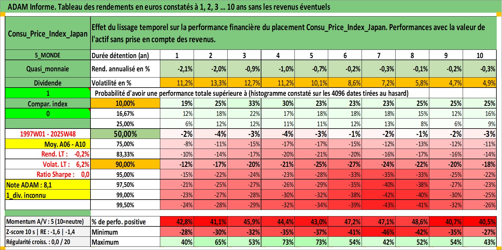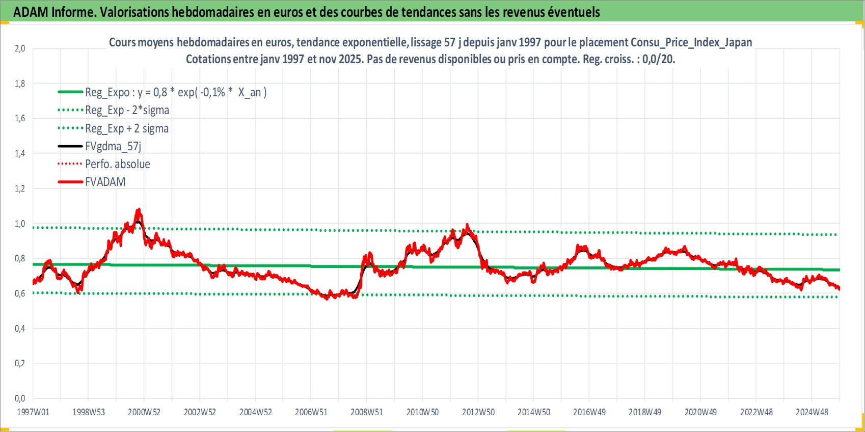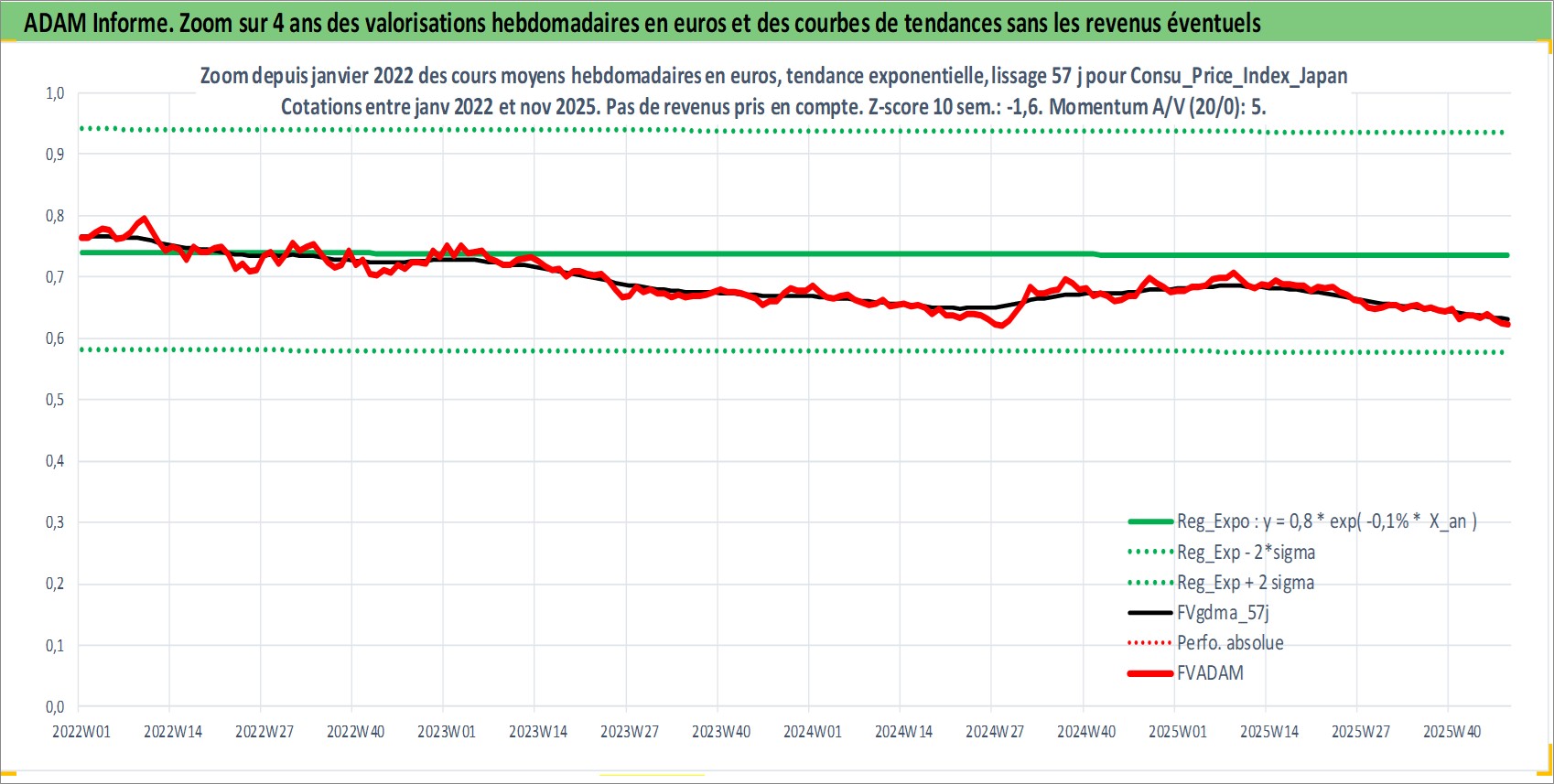 Site dédié aux investisseursPage dédiée sur site financeAnalyse des valorisations hebdomadaires de l'action Consu_Price_Index_Japan. Cet actif est cote en JPY. Les valorisations sont en contrevaleur EURO et couvrent les semaines 1997W01 a 2025W48. Les revenus de cet actif financier ne sont pas connus car non existants ou non disponibles sur le site Yahoo Finance. La note ESG de cet actif n'est pas connue.