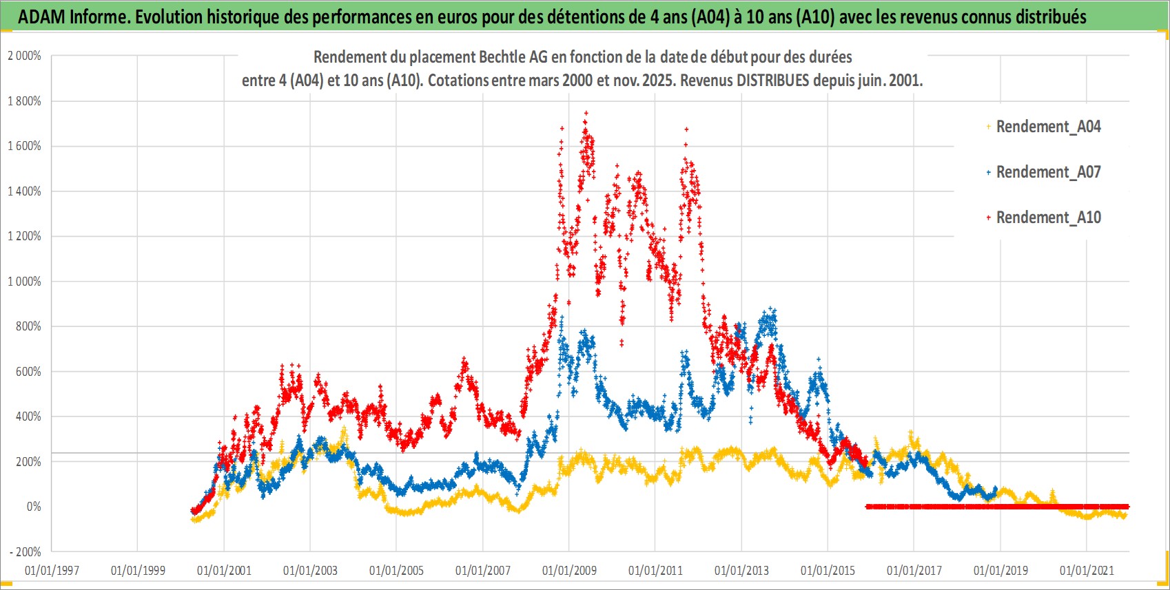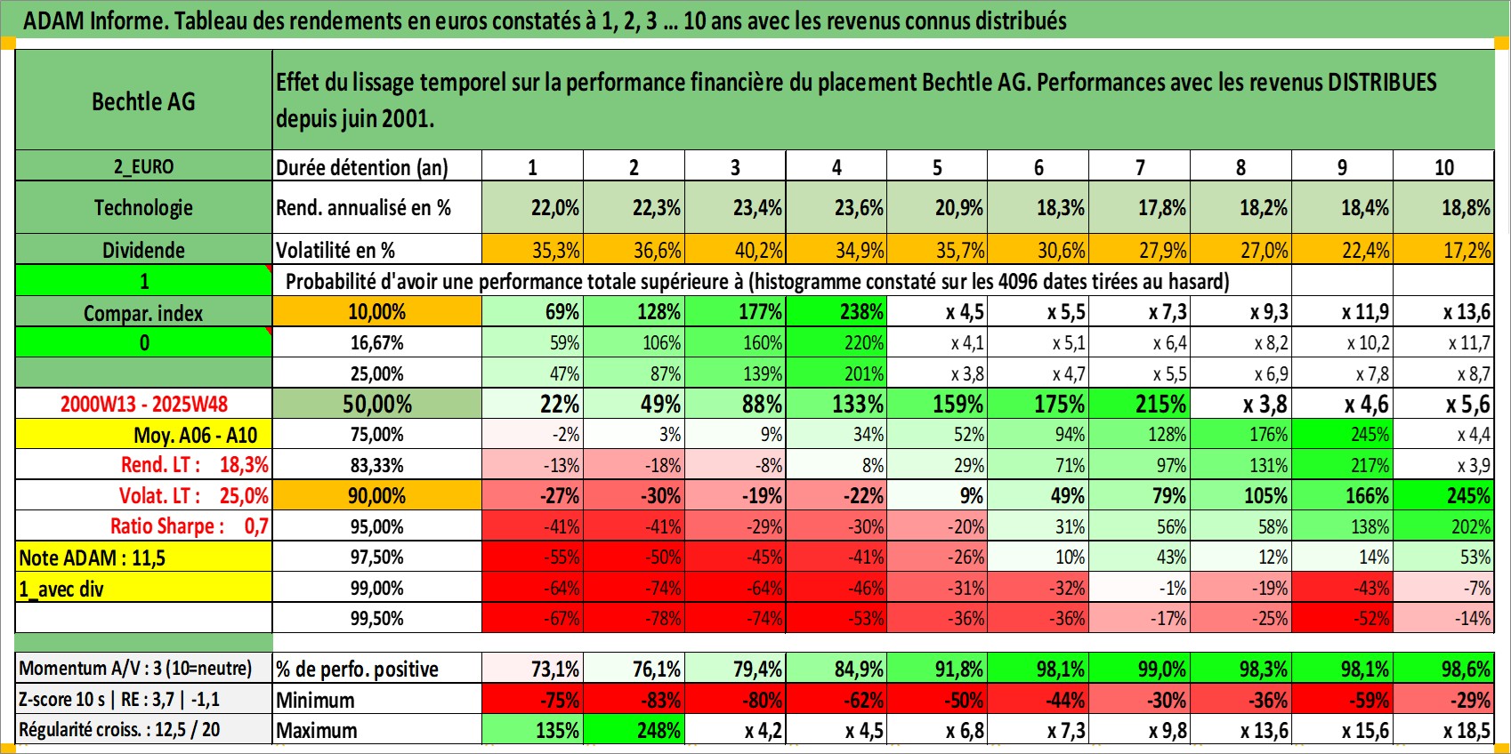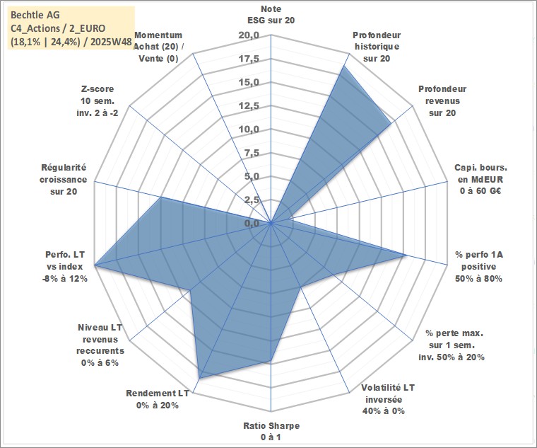 Site dédié aux investisseursPage dédiée sur site financeAnalyse des valorisations hebdomadaires de l'action Bechtle AG. Cet actif est cote en EUR. Les valorisations couvrent les semaines 2000W13 a 2025W48. Les revenus de cet actif financier sont pris en compte depuis la semaine 2001W23. La note ESG de cet actif n'est pas connue.
