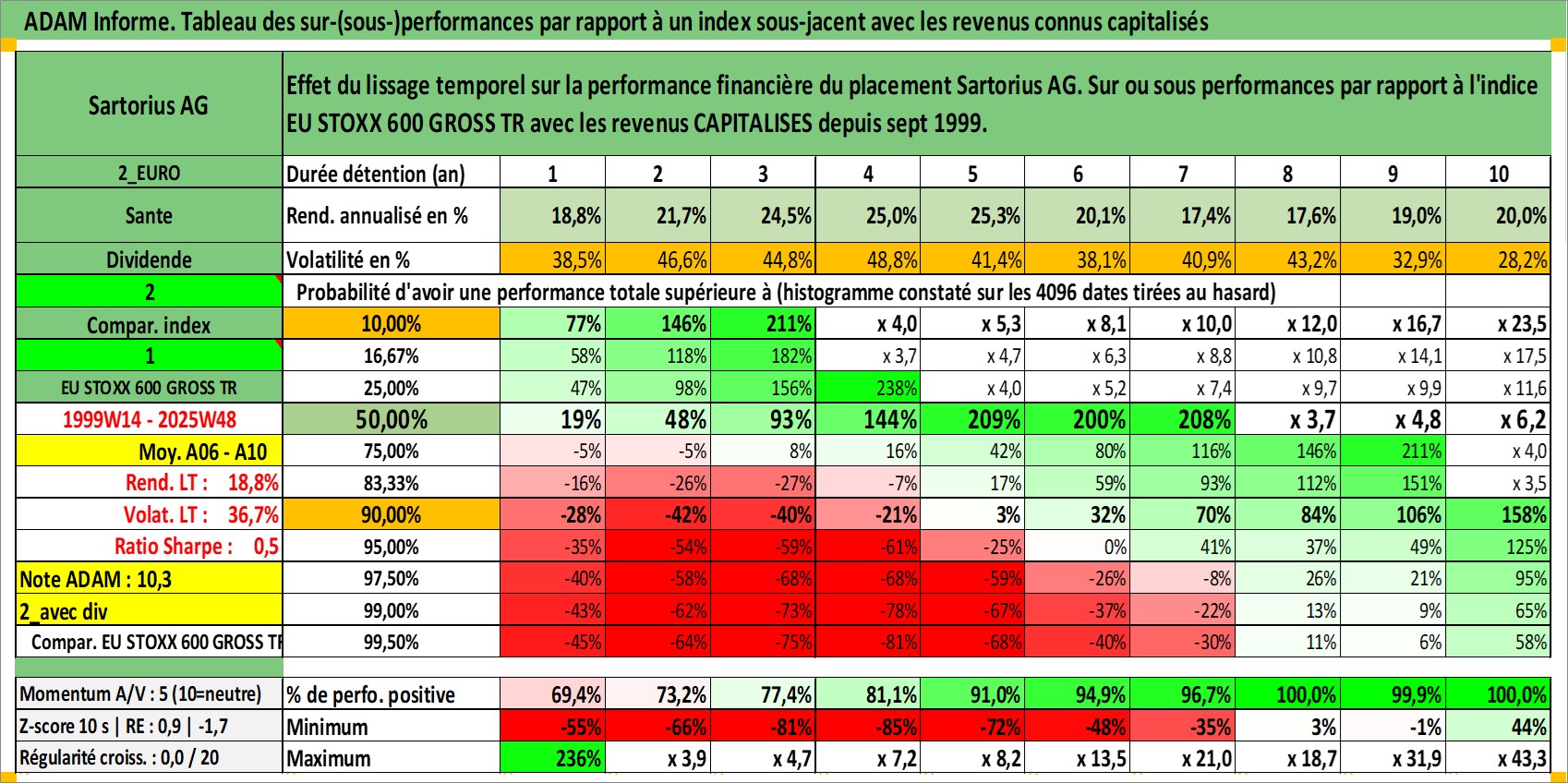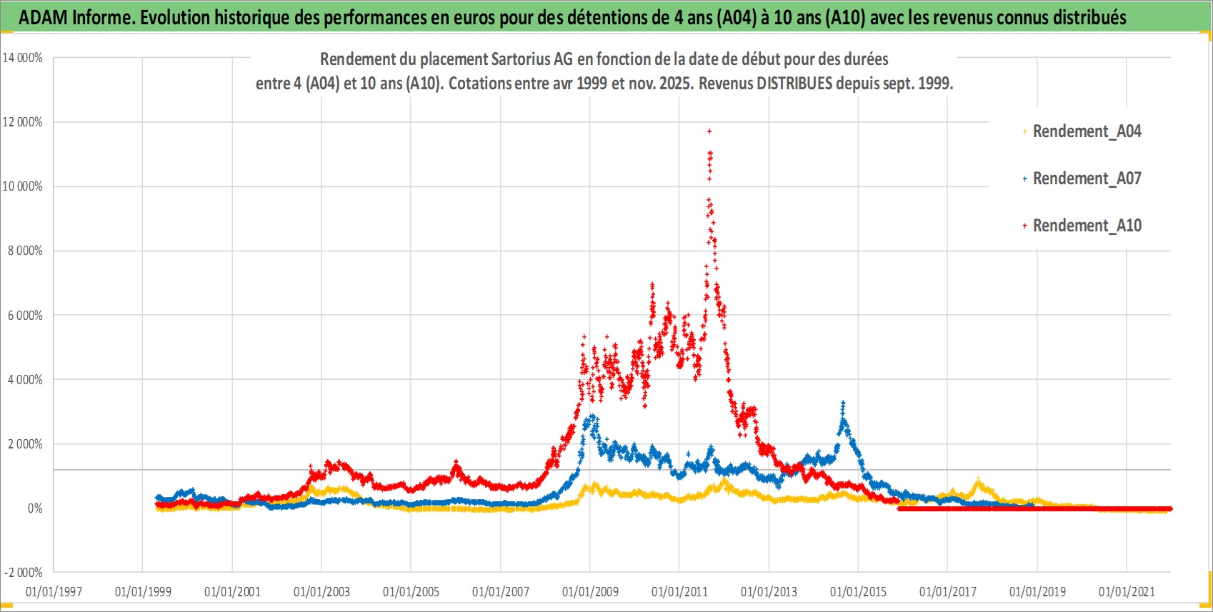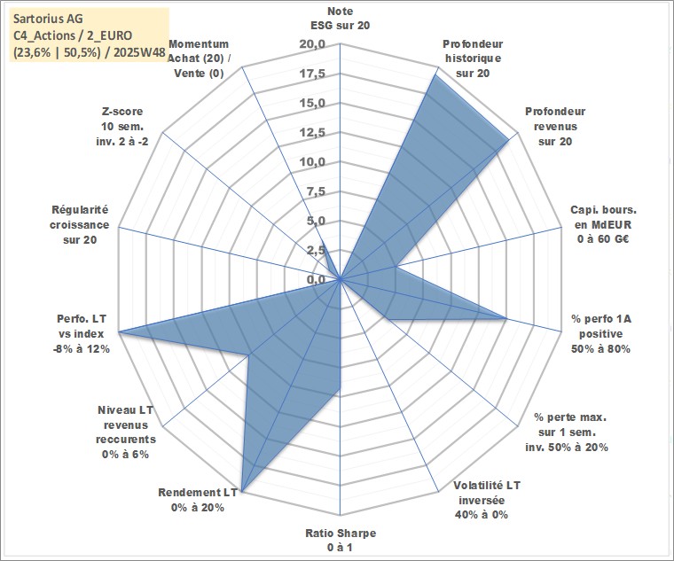 Site dédié aux investisseursPage dédiée sur site financeAnalyse des valorisations hebdomadaires de l'action Sartorius AG. Cet actif est cote en EUR. Les valorisations couvrent les semaines 1999W14 a 2025W48. Les revenus de cet actif financier sont pris en compte depuis la semaine 1999W35. La note ESG de cet actif n'est pas connue.