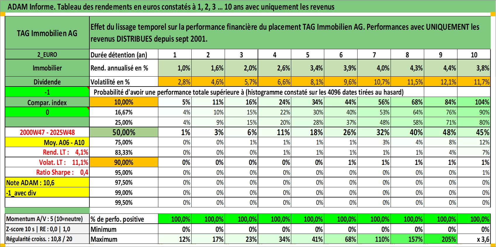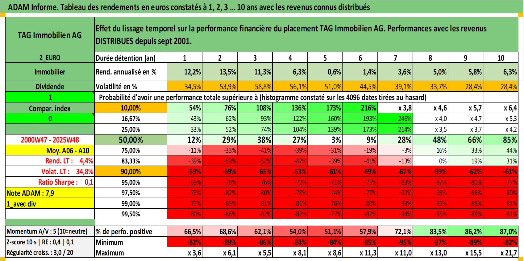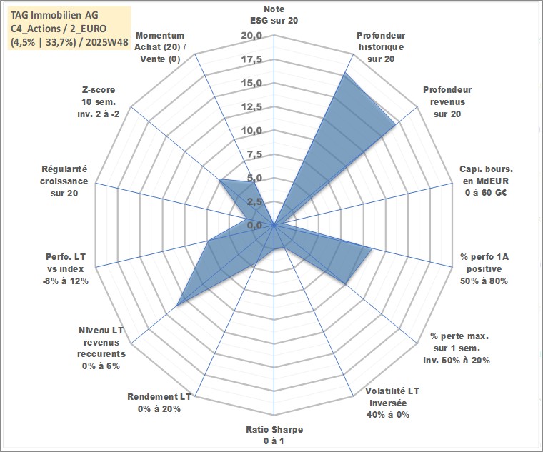 Site dédié aux investisseursPage dédiée sur site financeAnalyse des valorisations hebdomadaires de l'action TAG Immobilien AG. Cet actif est cote en EUR. Les valorisations couvrent les semaines 2000W47 a 2025W48. Les revenus de cet actif financier sont pris en compte depuis la semaine 2001W36. La note ESG de cet actif n'est pas connue.