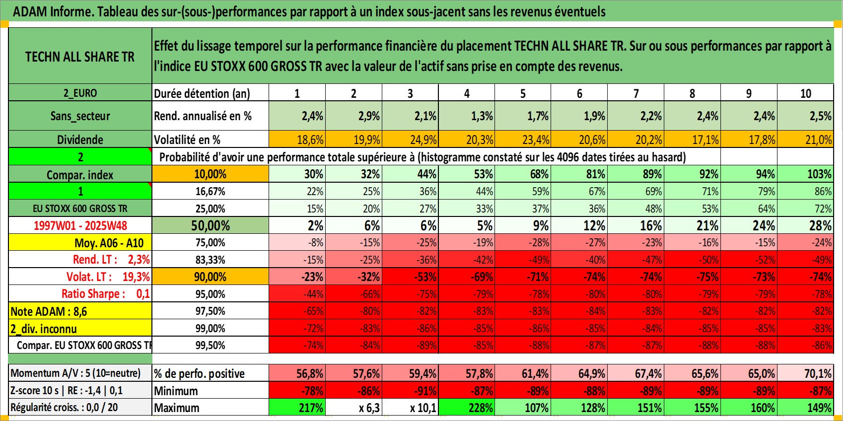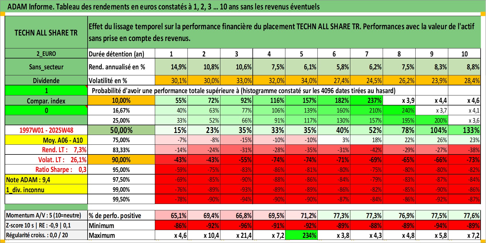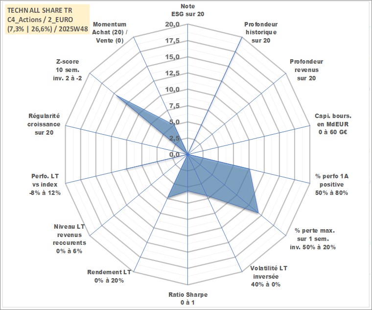 Site dédié aux investisseursPage dédiée sur site financeAnalyse des valorisations hebdomadaires de l'actif TECHN ALL SHARE TR. Cet actif est cote en EUR. Les valorisations couvrent les semaines 1997W01 a 2025W48. Les revenus de cet actif financier ne sont pas connus car non existants ou non disponibles sur le site Yahoo Finance. La note ESG de cet actif n'est pas connue.