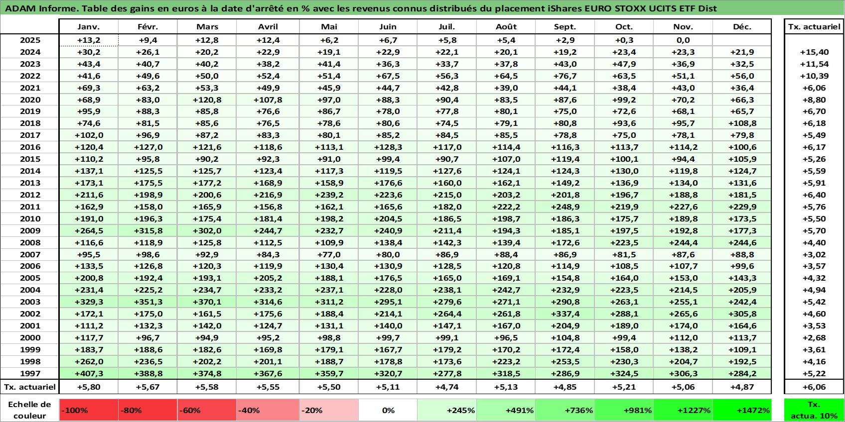 Site dédié aux investisseursPage dédiée sur site financeAnalyse des valorisations hebdomadaires du fonds iShares EURO STOXX UCITS ETF Dist. Cet actif est cote en EUR. Les valorisations couvrent les semaines 1997W01 a 2025W48. Les revenus de cet actif financier sont pris en compte depuis la semaine 1997W24. La note ESG de cet actif n'est pas connue.